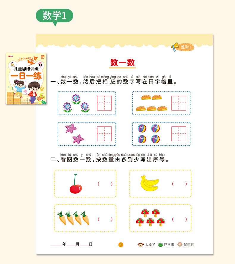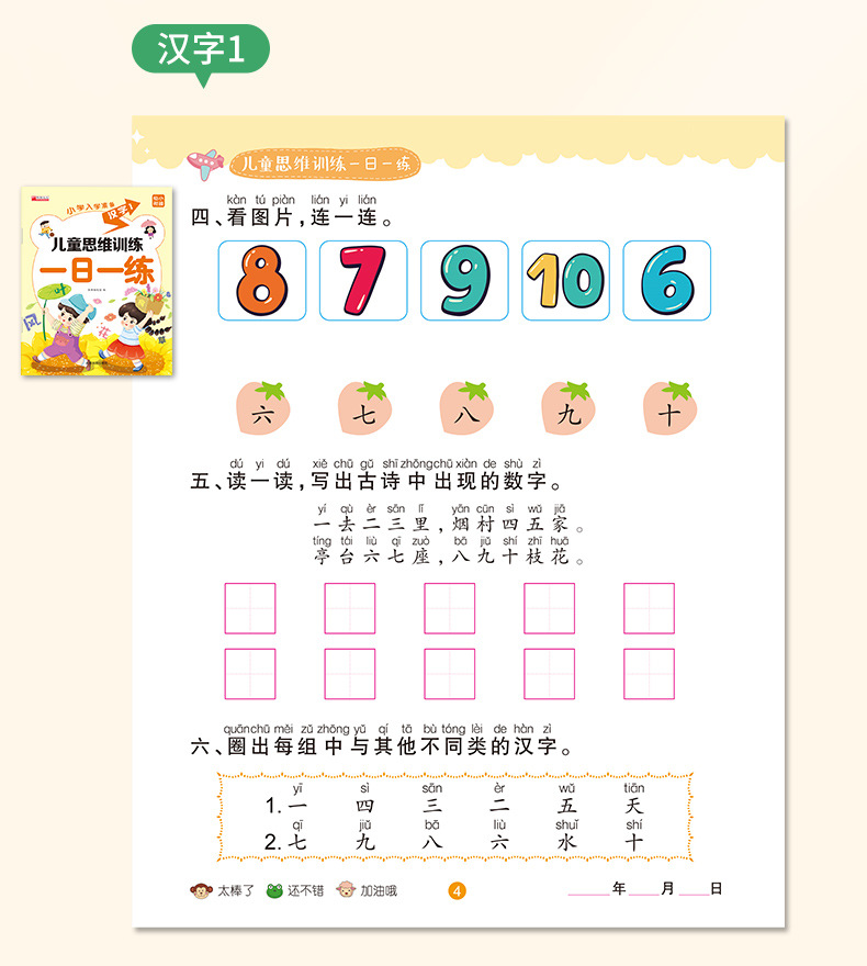 어린 아이들을위한 교재, 유치원에서의 대규모 수업, 초등학교의 병음 수학 및 한자 특별 운동 서적의 1 일 연습스토어 가기