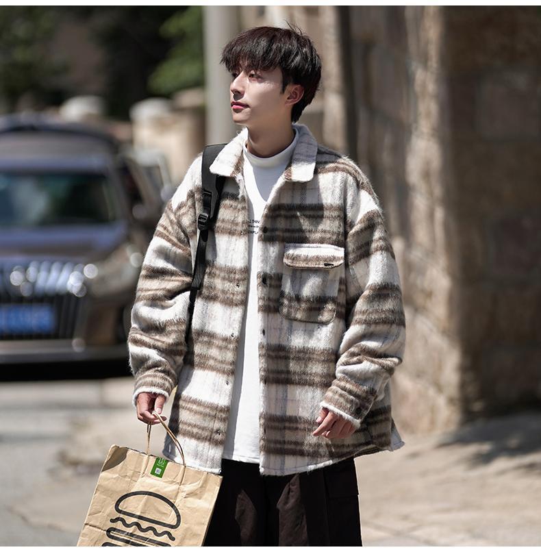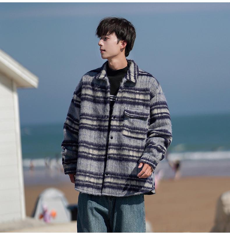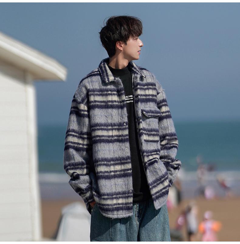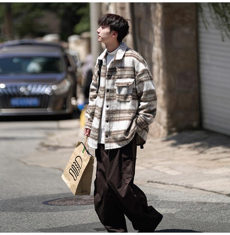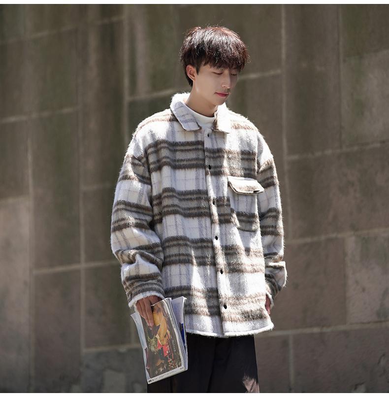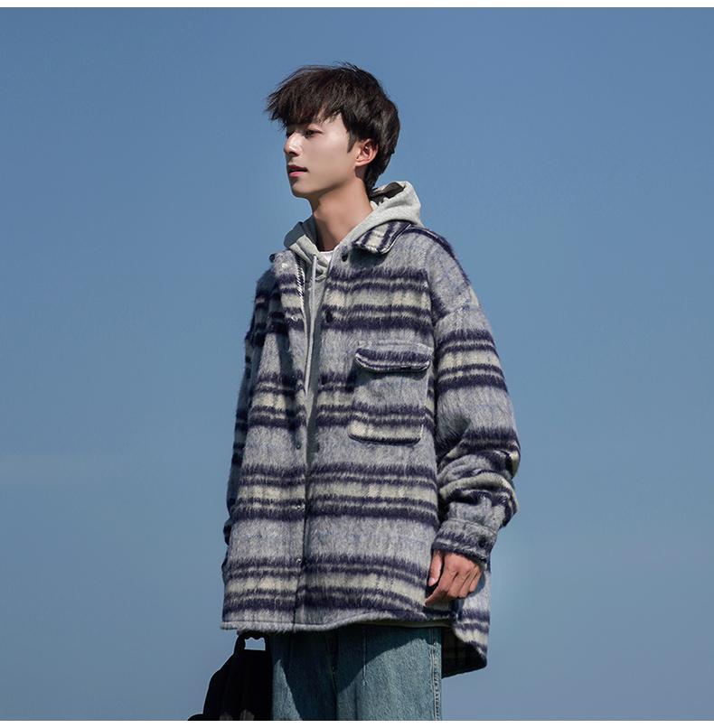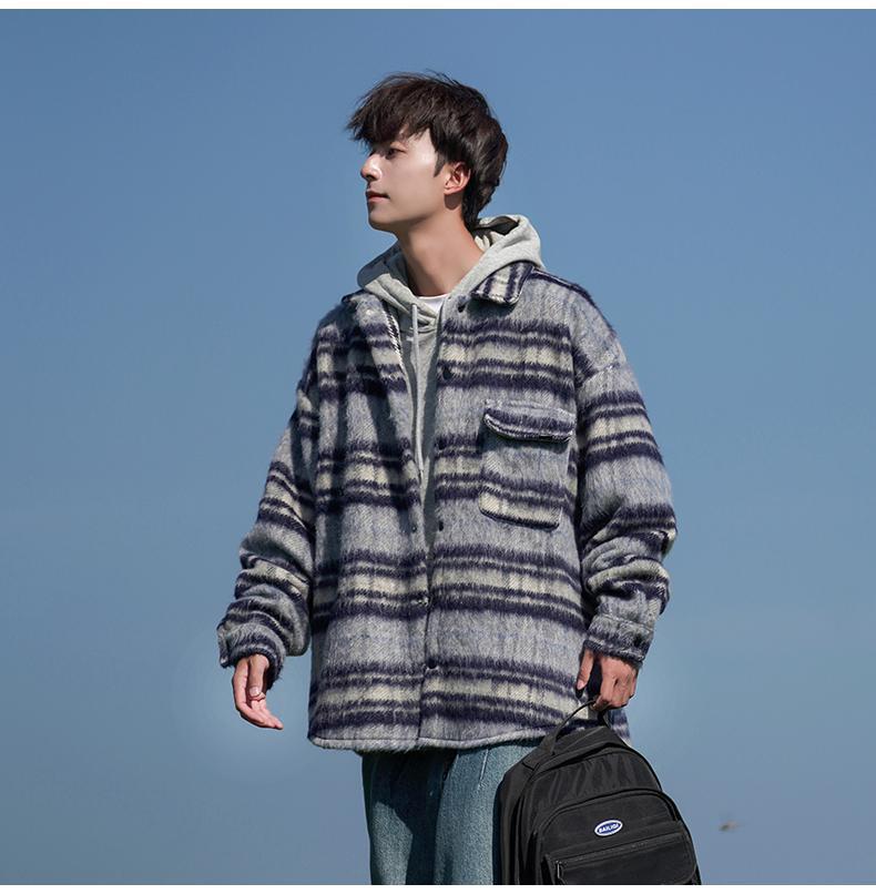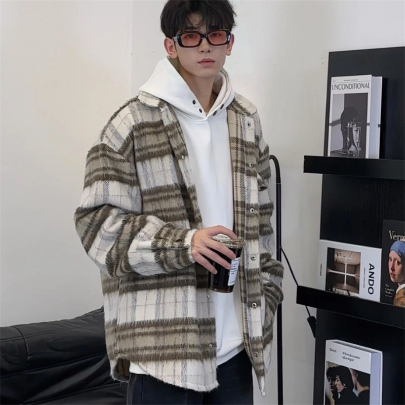 봄과 가을 새로운 격자 무늬 모직 재킷 코트 남자 긴팔 캐주얼 루즈 한국 패셔너블 올 매치 홍콩 스타일 옷깃스토어 가기