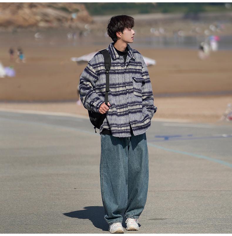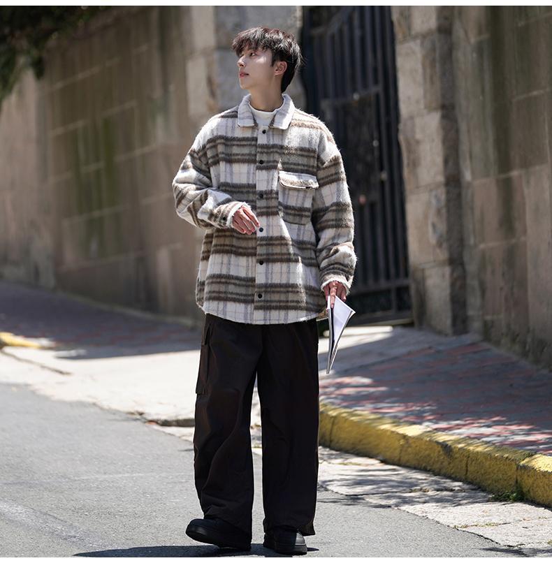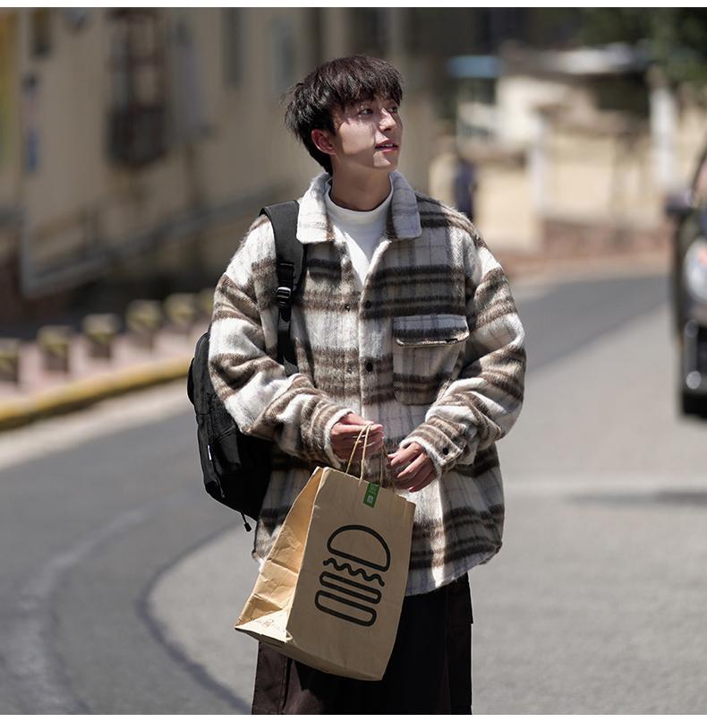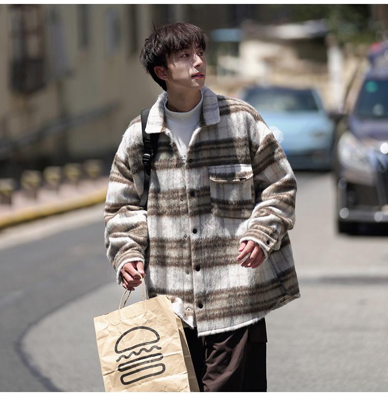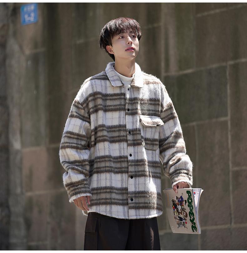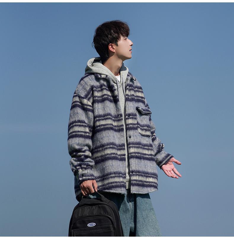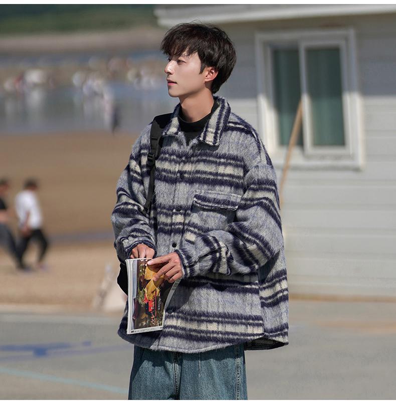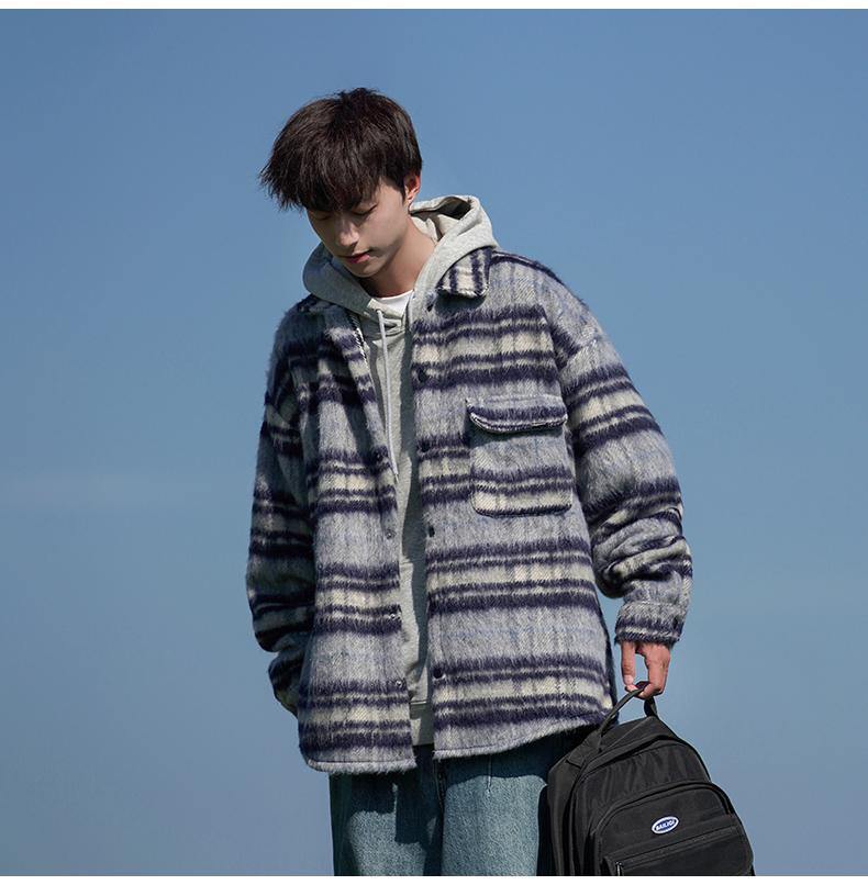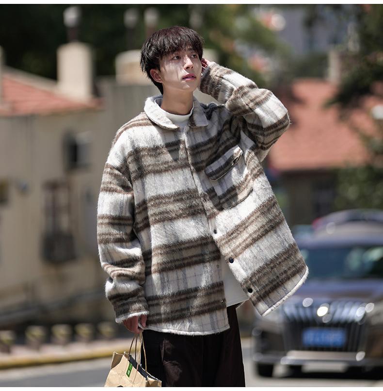 봄과 가을 새로운 격자 무늬 모직 재킷 코트 남자 긴팔 캐주얼 루즈 한국 패셔너블 올 매치 홍콩 스타일 옷깃스토어 가기