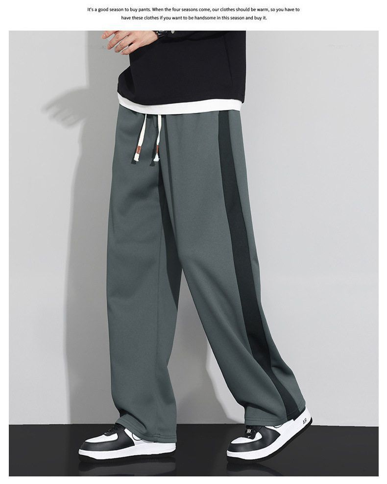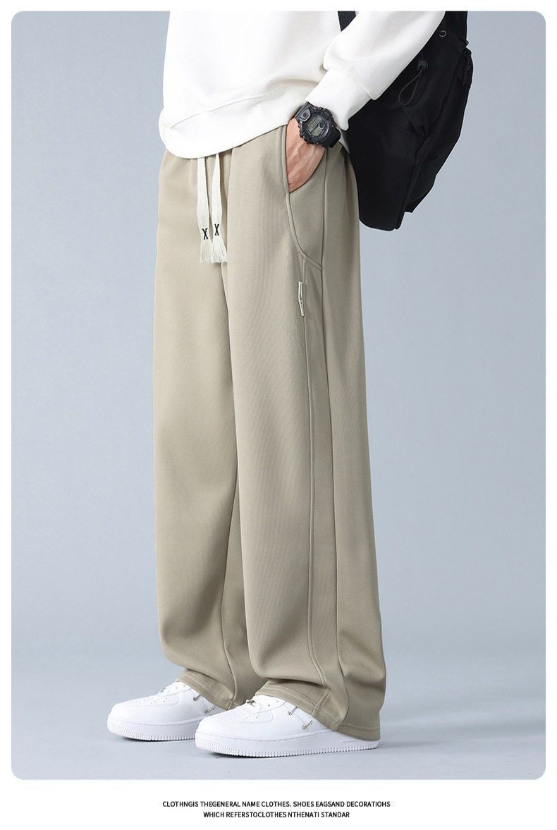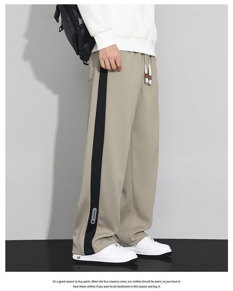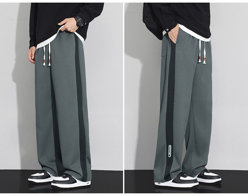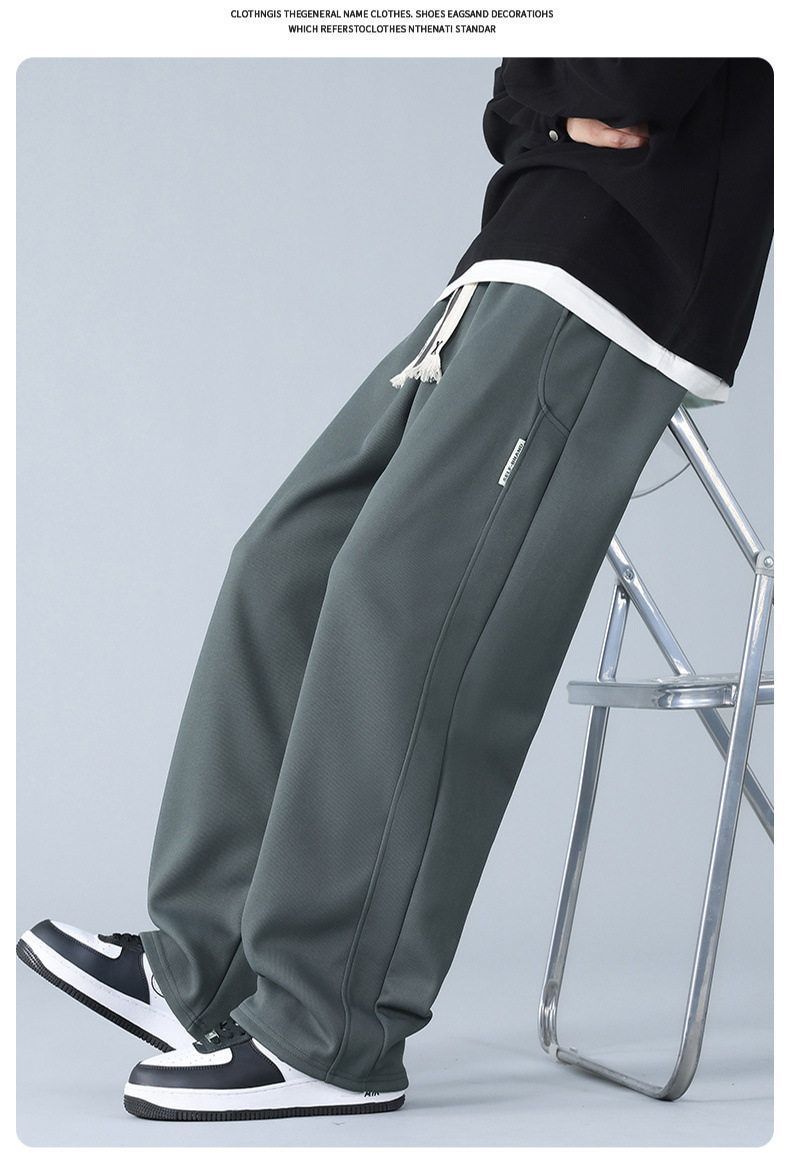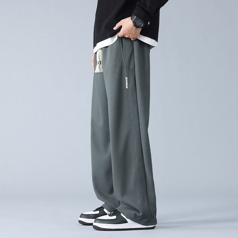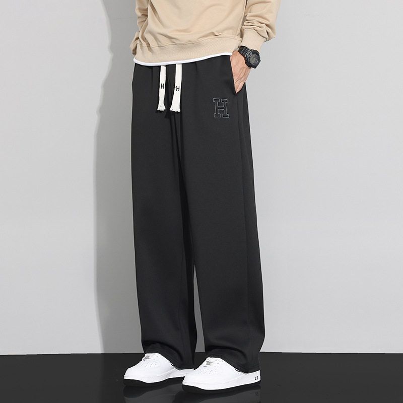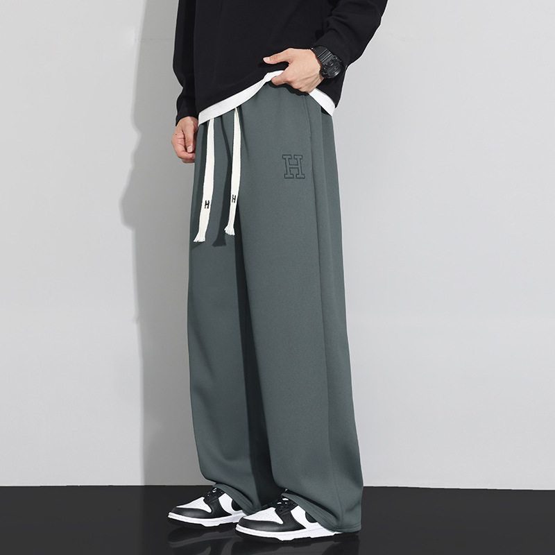 봄과 가을 느슨한 스트레이트 와이드 레그 Dagging 미국 캐주얼 바지 자수 니트 바지 남성 스포츠 바지