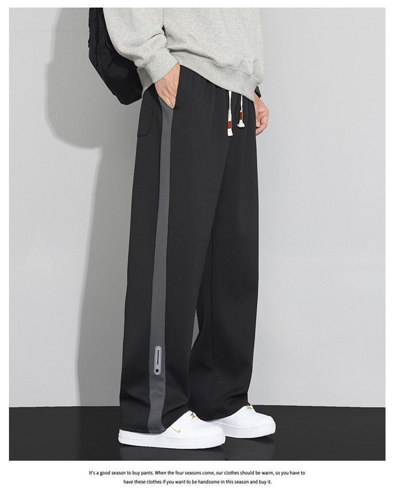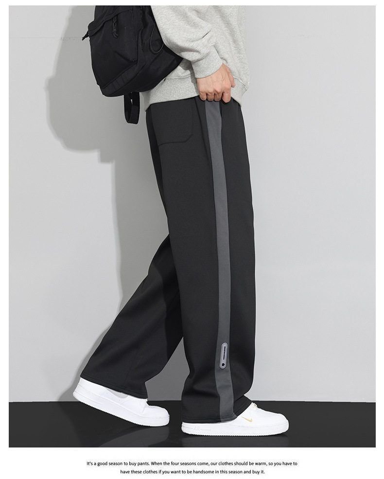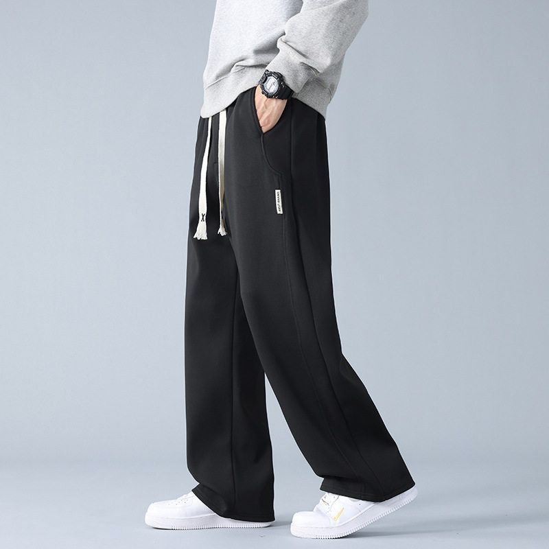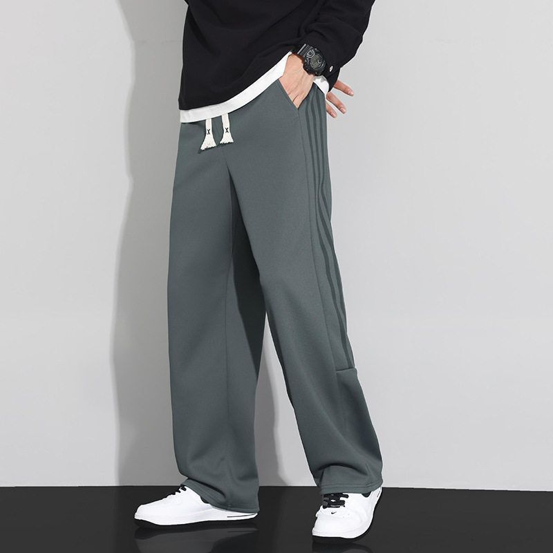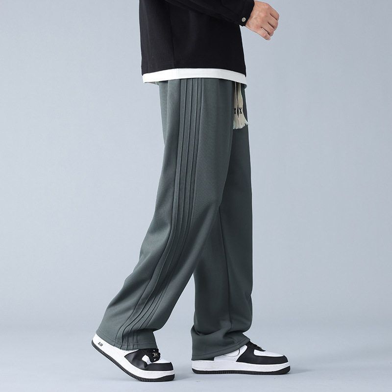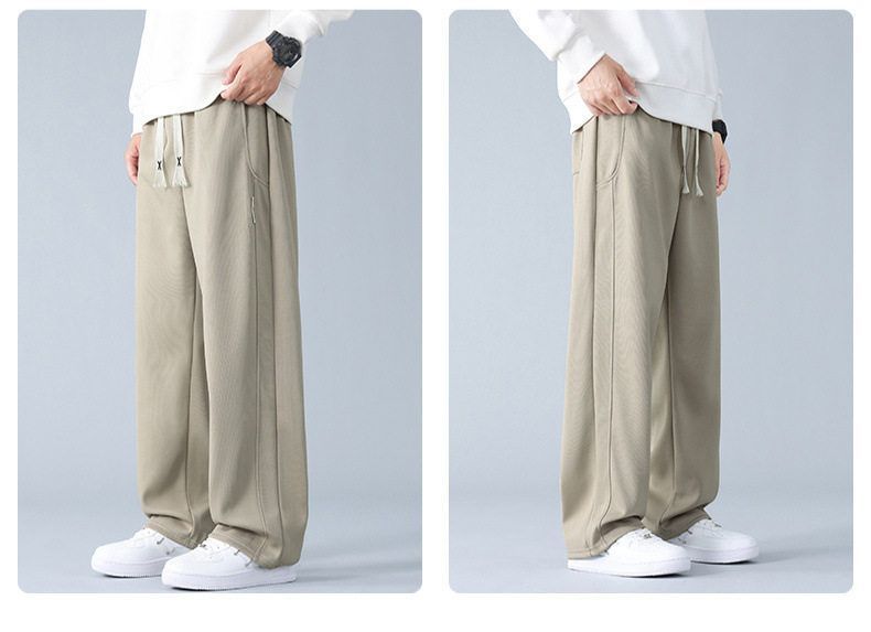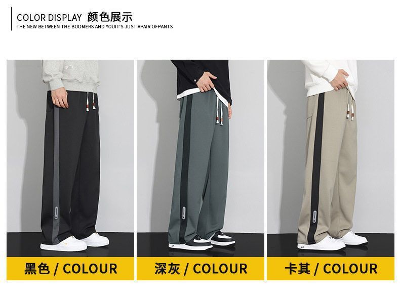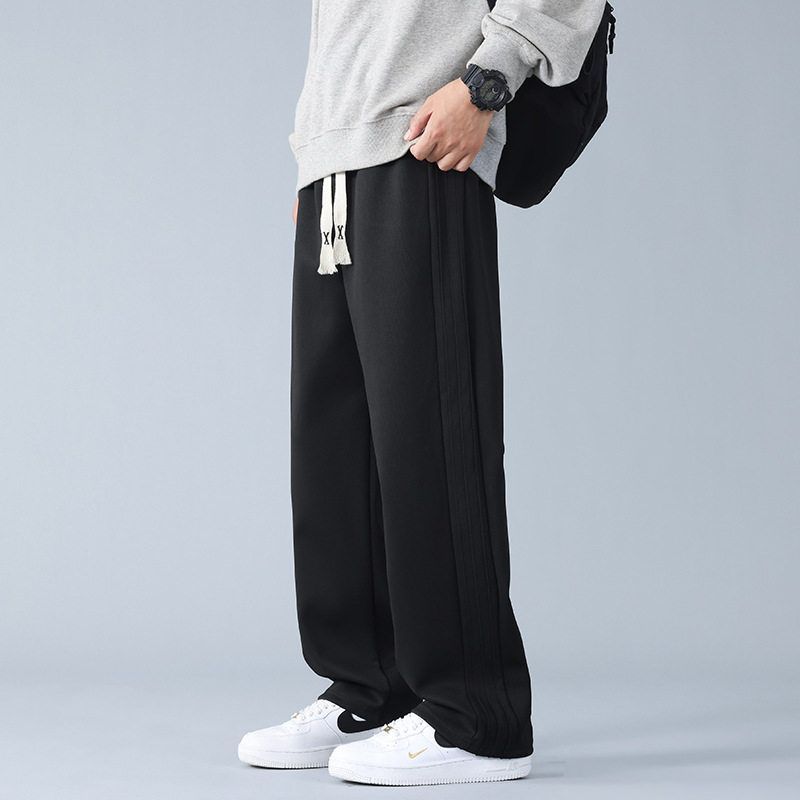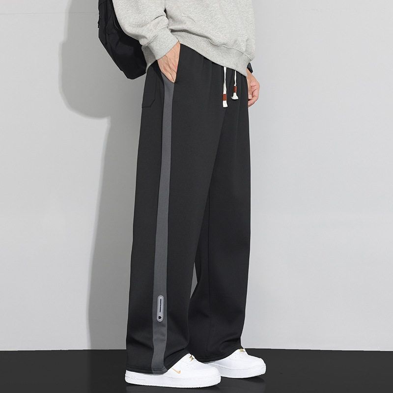 봄과 가을 느슨한 스트레이트 와이드 레그 Dagging 미국 캐주얼 바지 자수 니트 바지 남성 스포츠 바지
