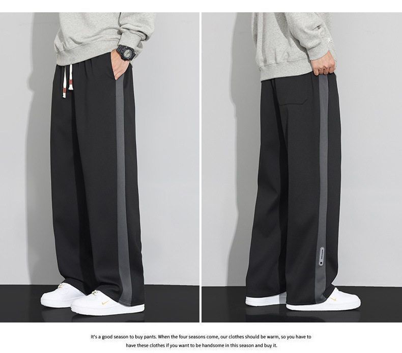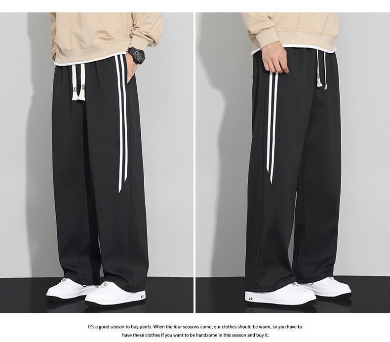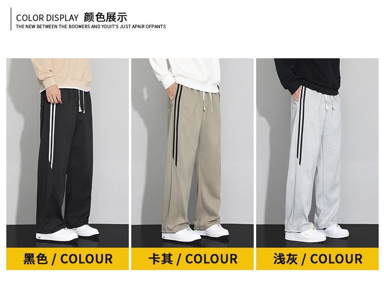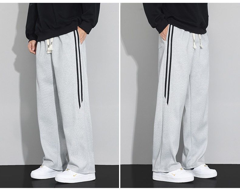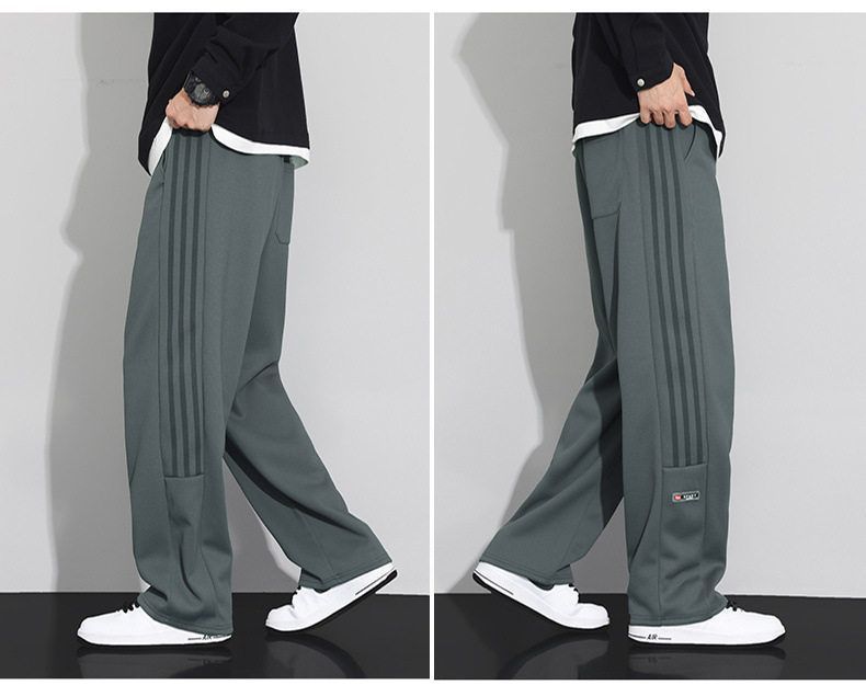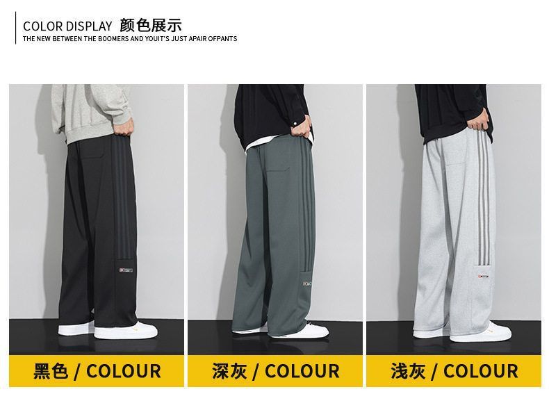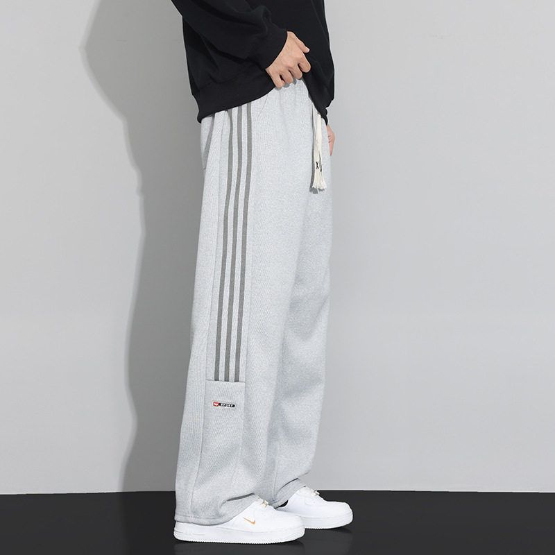 봄과 가을 느슨한 스트레이트 와이드 레그 Dagging 미국 캐주얼 바지 자수 니트 바지 남성 스포츠 바지스토어 가기