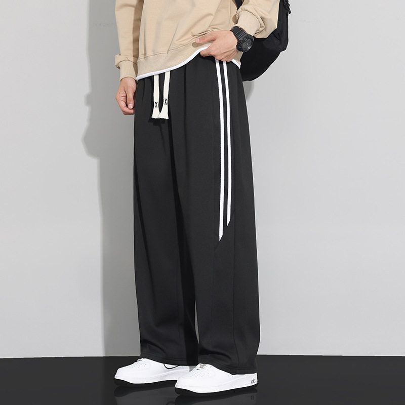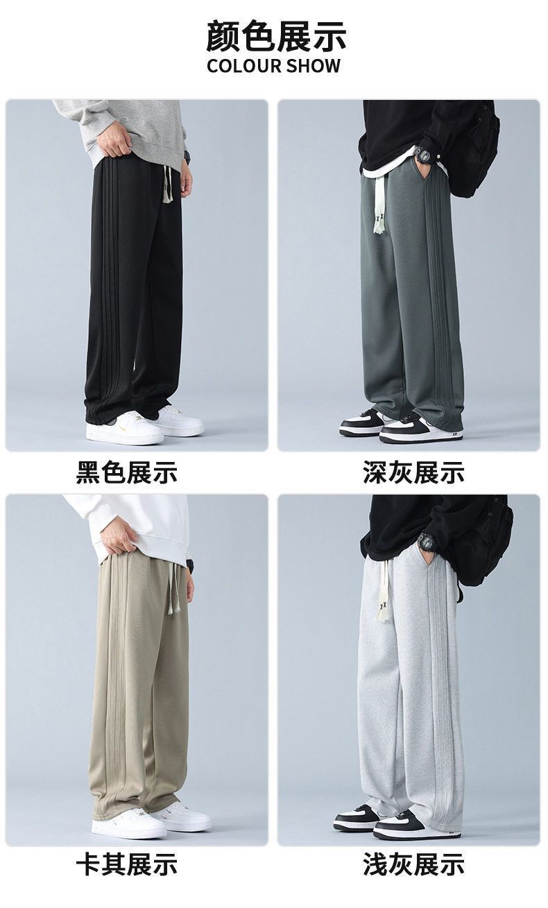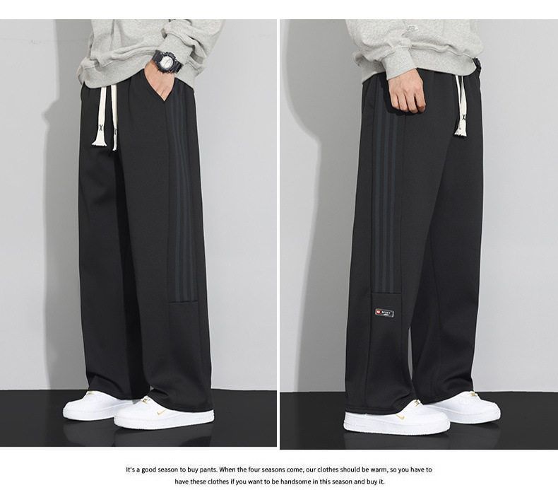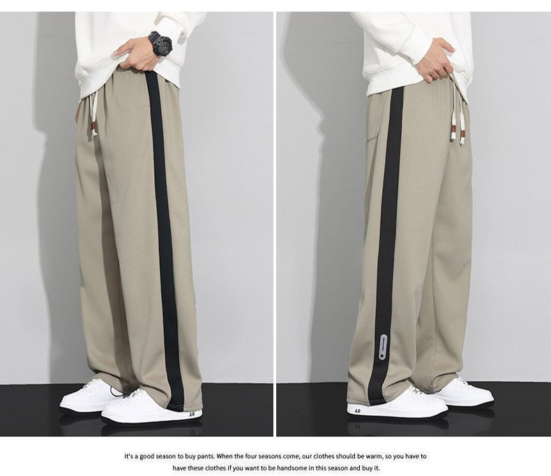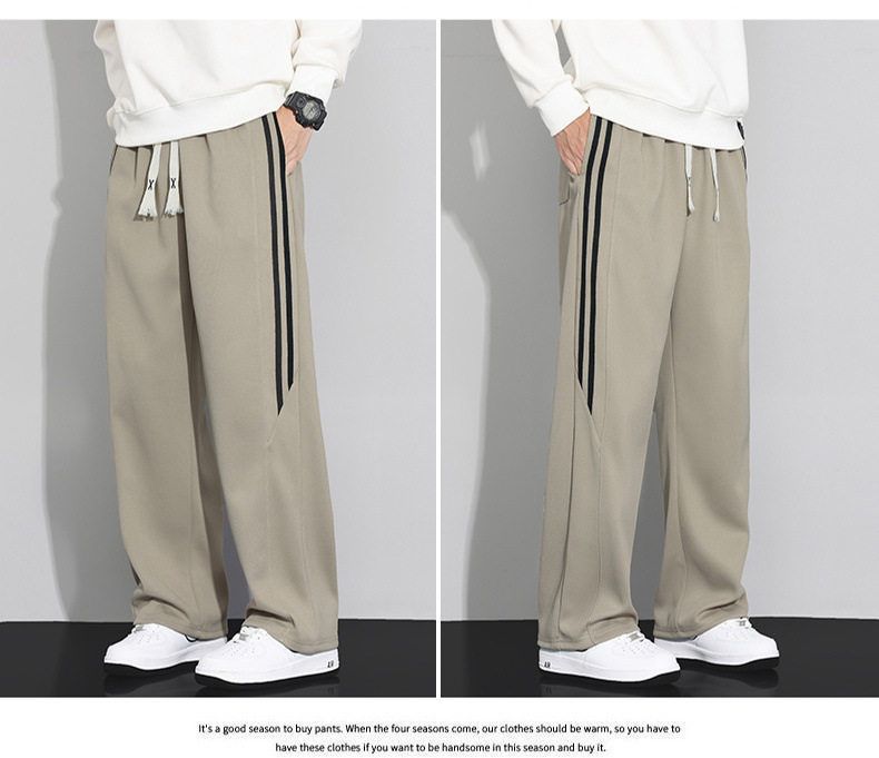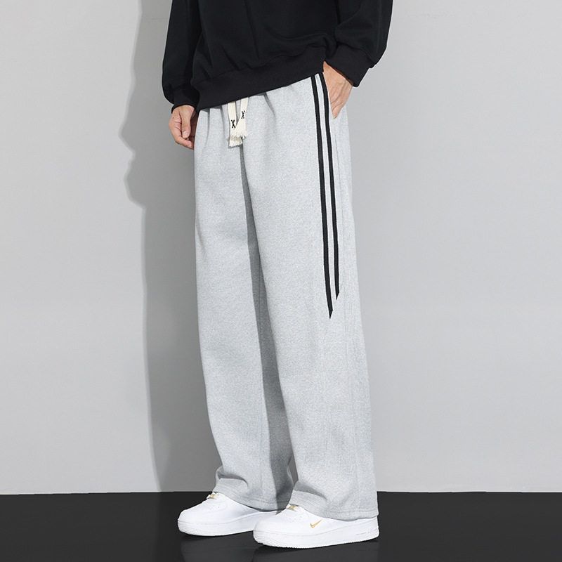 봄과 가을 느슨한 스트레이트 와이드 레그 Dagging 미국 캐주얼 바지 자수 니트 바지 남성 스포츠 바지스토어 가기