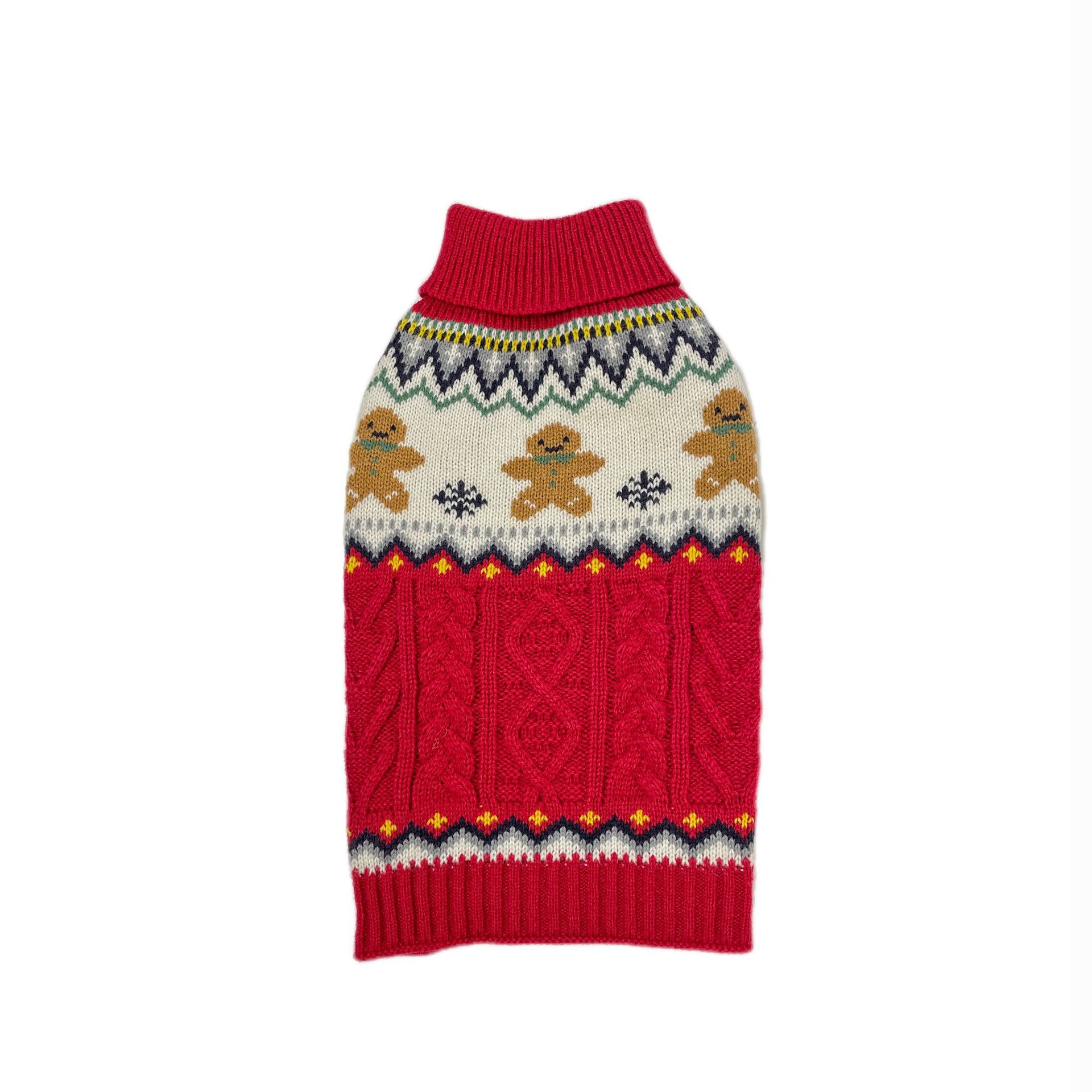 붉은 색과 녹색 진저 브레드 맨 엘크 크리스마스 애완 동물 스웨터 강아지 옷 작은 개 고양이 따뜻한 겨울스토어 가기