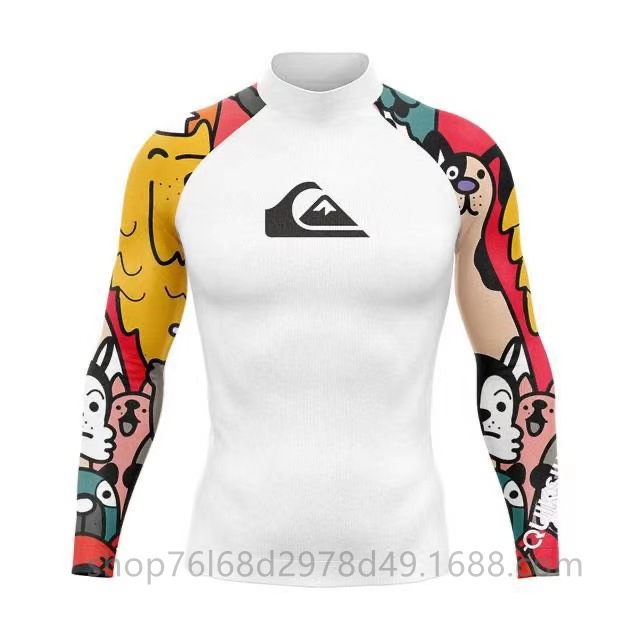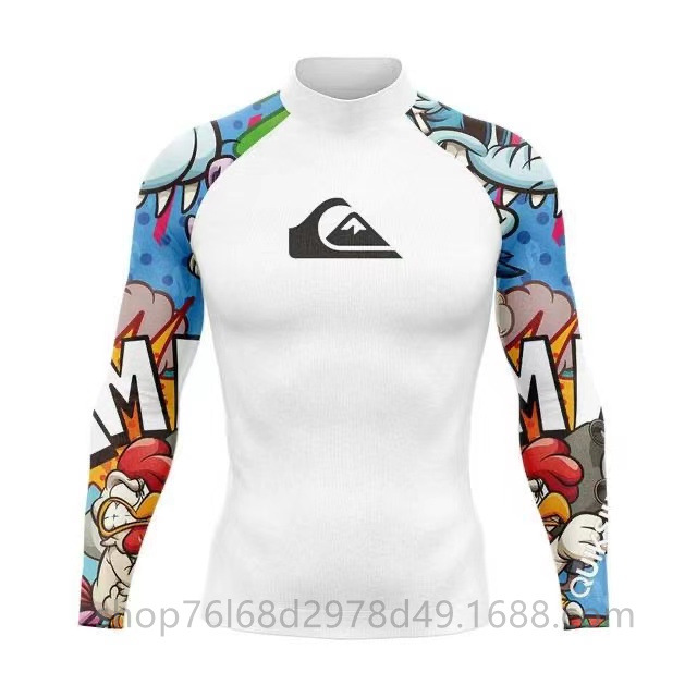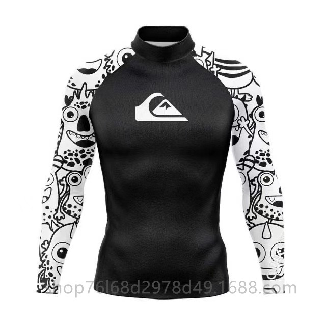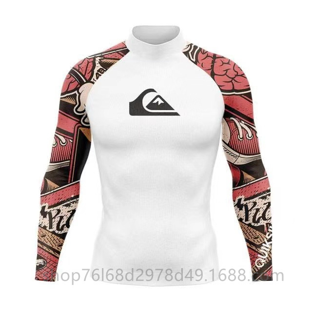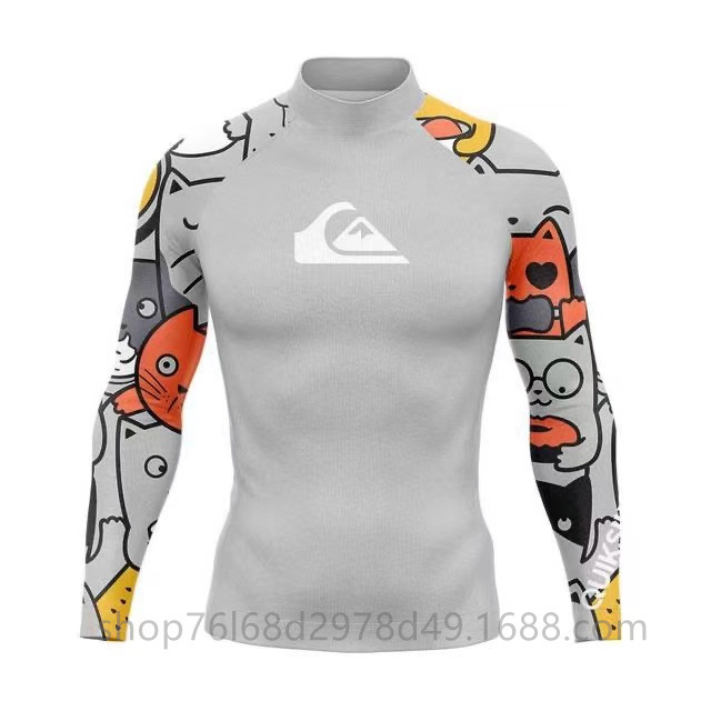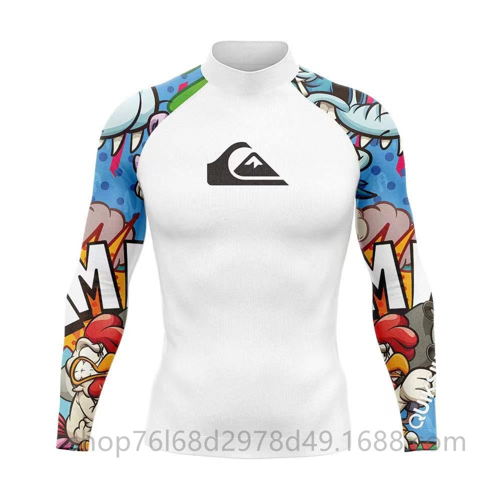 QUIKSILVER 긴팔 수영복 스쿠버 서핑 스플릿 탑 퀵 건조 해파리 탑 칼라 스트레치 태양 보호 의류 남성용