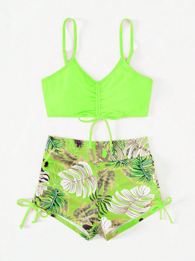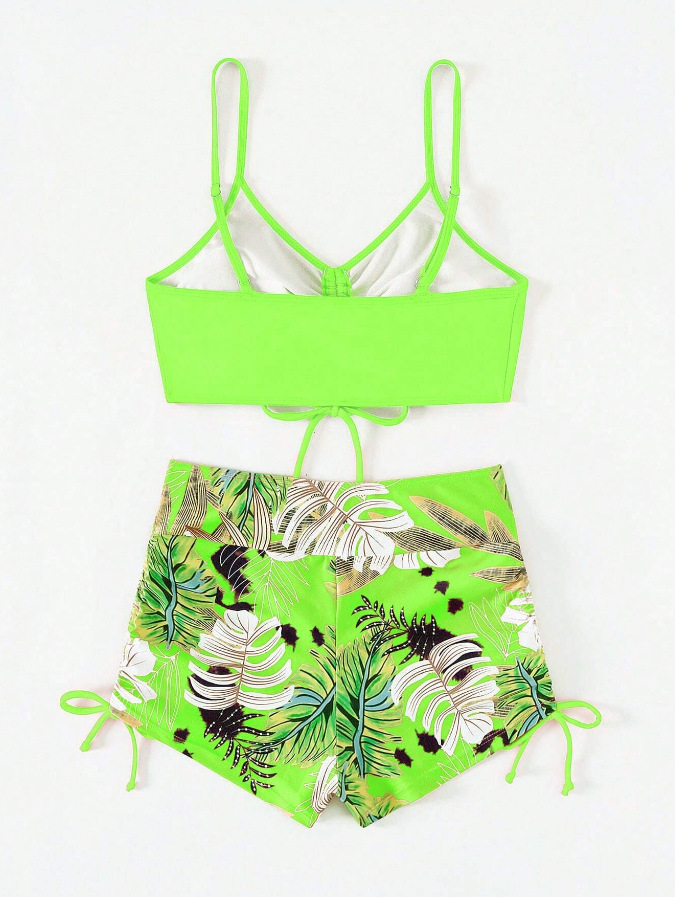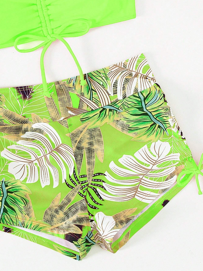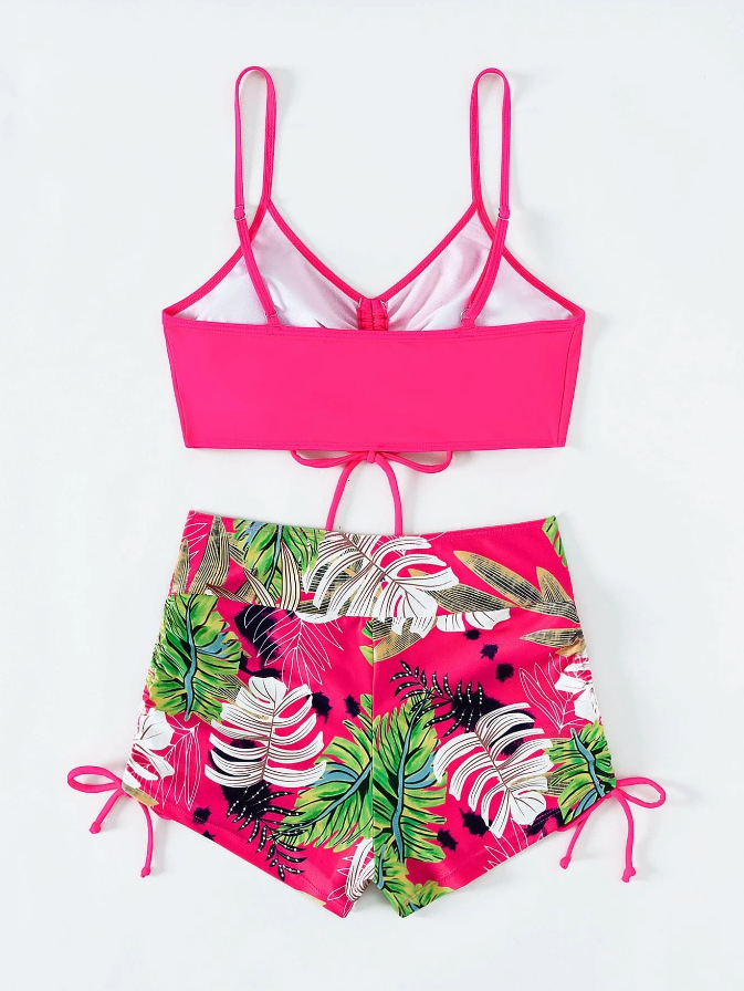2025 유럽 및 미국 수영복 복서 분할 수영복 인쇄 스트랩리스 스트랩 높은 허리 보수 수영복 스트랩