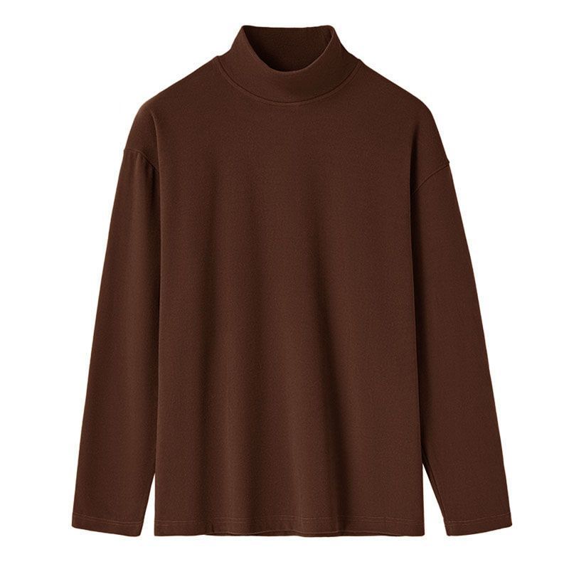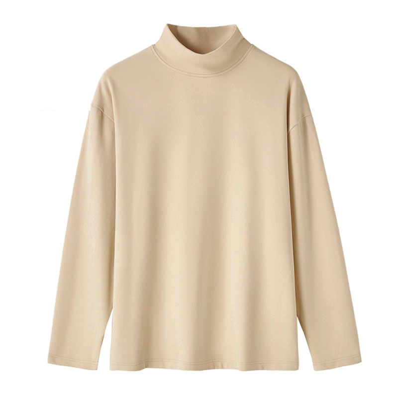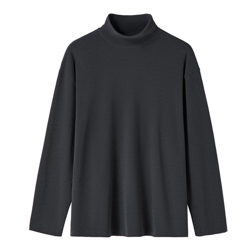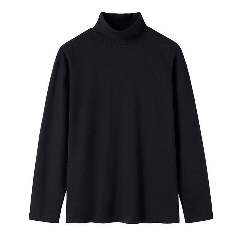 남자 벨벳 2024 가을과 겨울 새 긴팔 솔리드 컬러 양면 벨벳 올 매치 Ins 트렌디 하프 하이 칼라베이스 티셔츠스토어 가기
