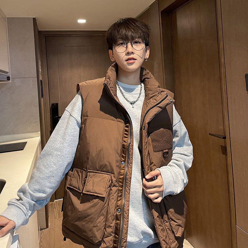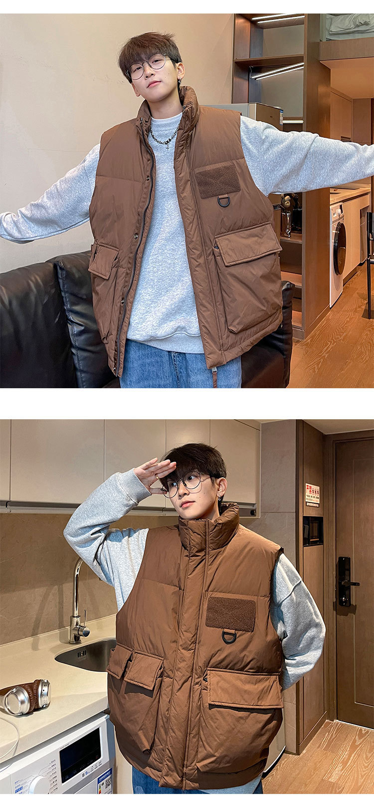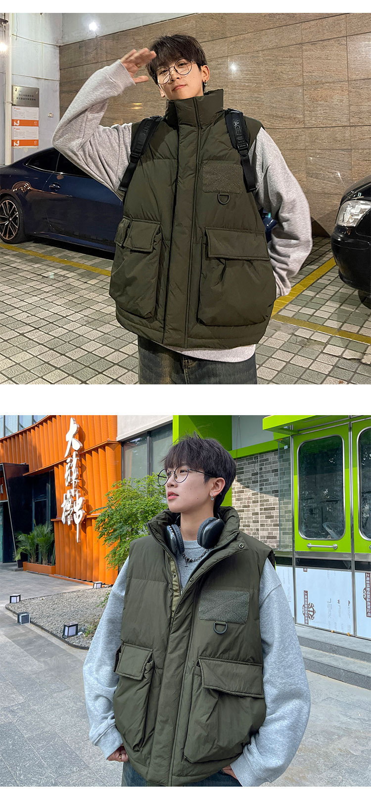 작업복 조끼 면 패딩 재킷 소년 2023 겨울 새로운 민소매 양복 조끼 미국 복고풍 느슨한 스탠드 칼라 코트