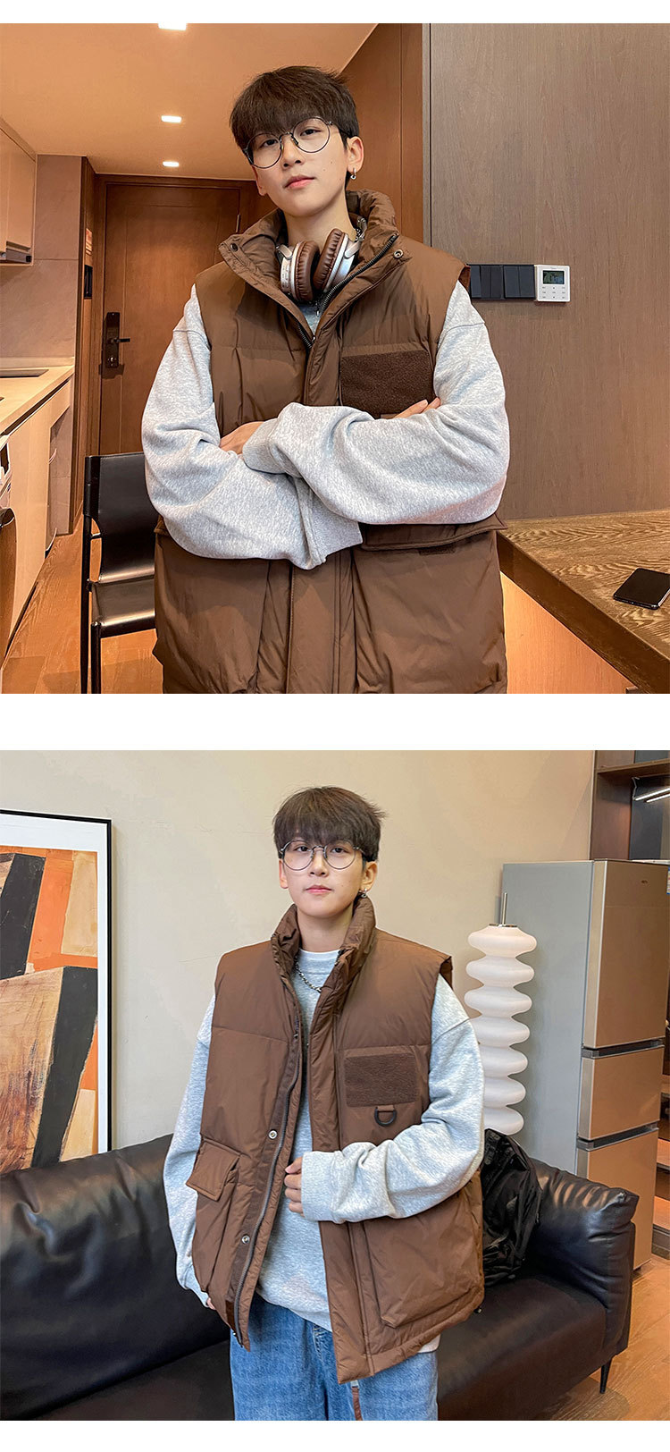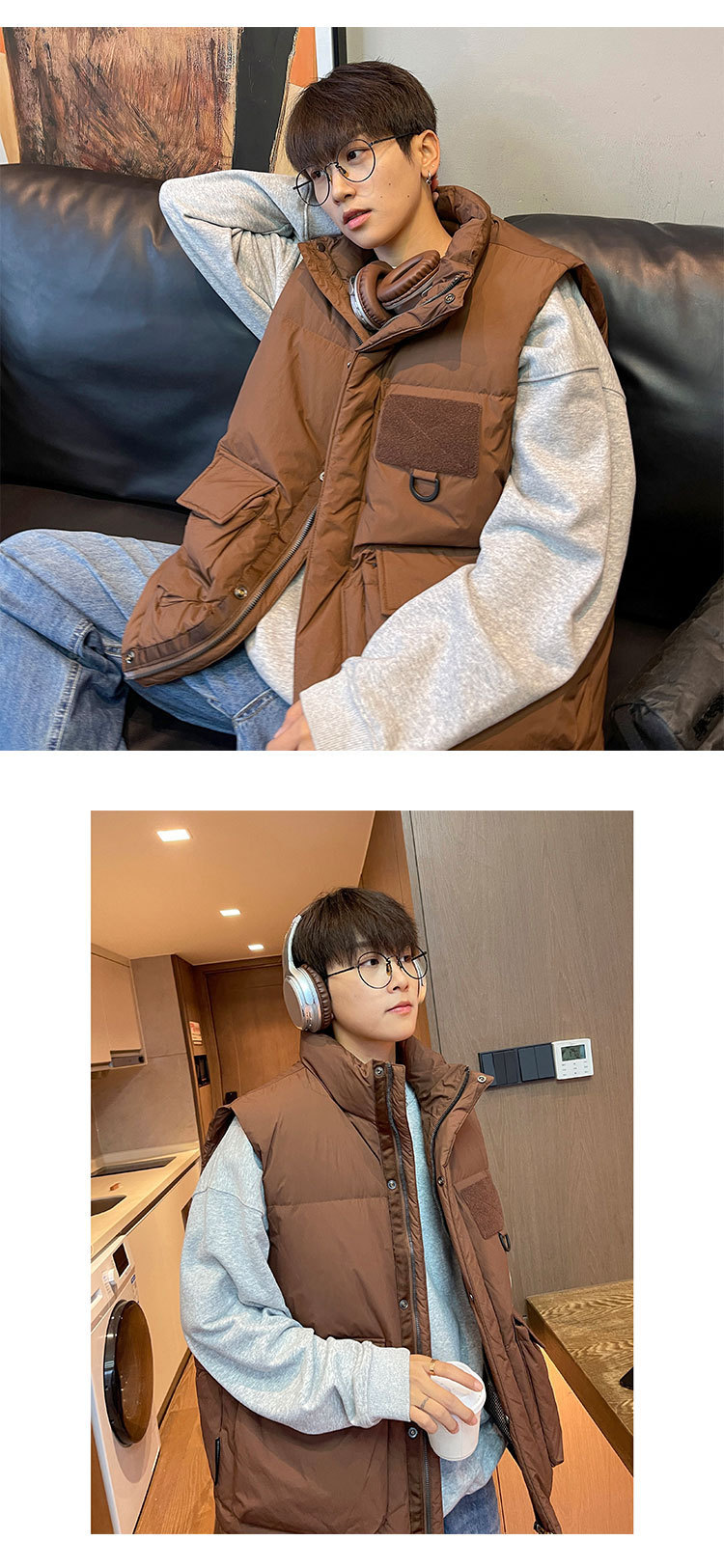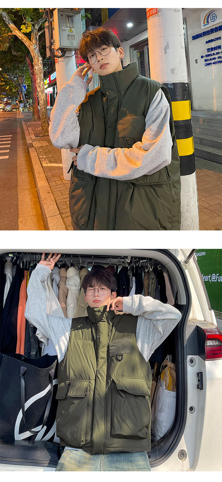 작업복 조끼 면 패딩 재킷 소년 2023 겨울 새로운 민소매 양복 조끼 미국 복고풍 느슨한 스탠드 칼라 코트
