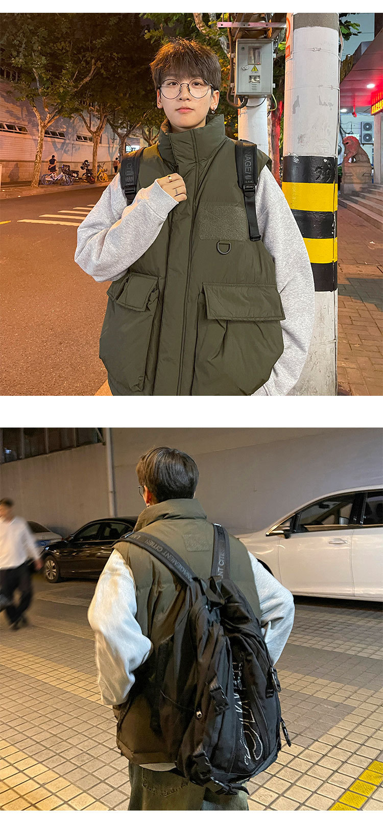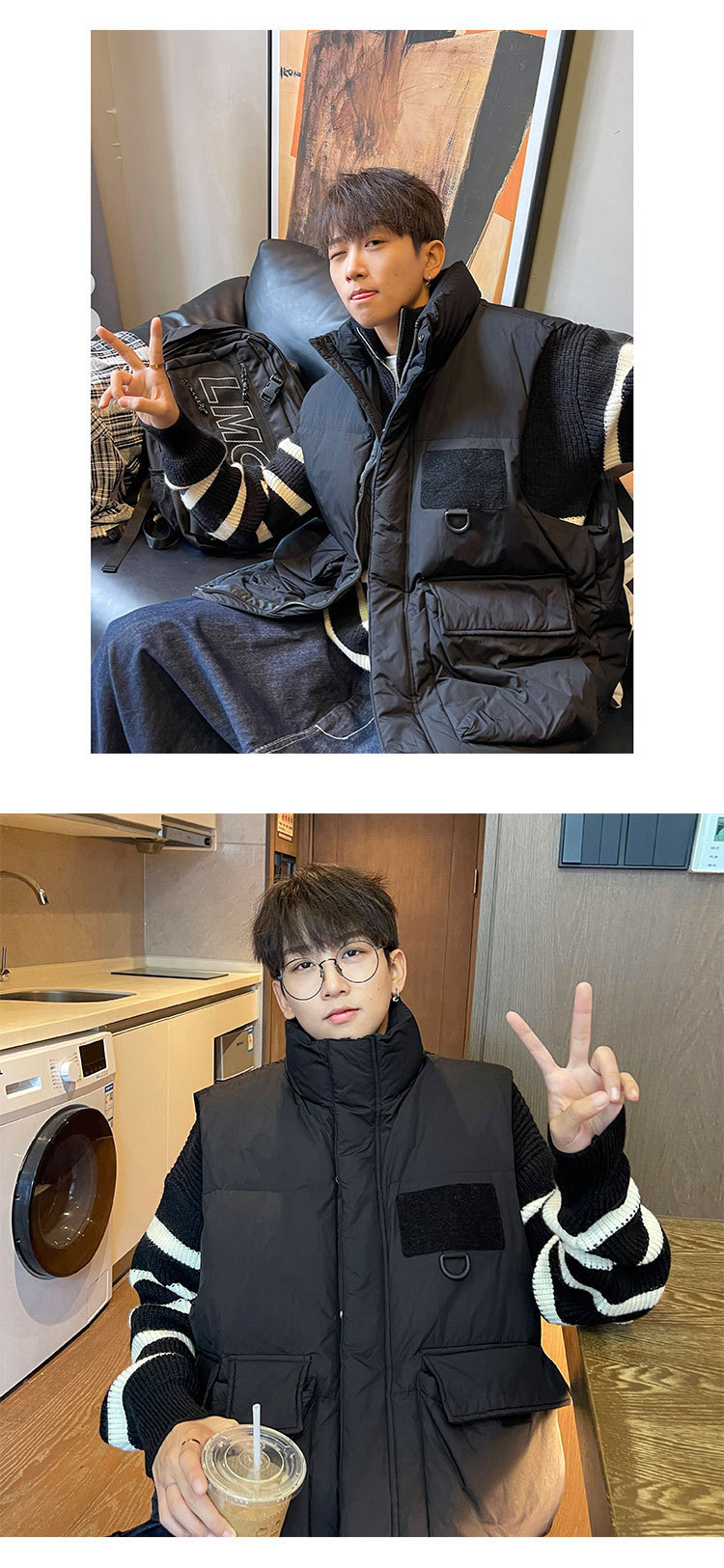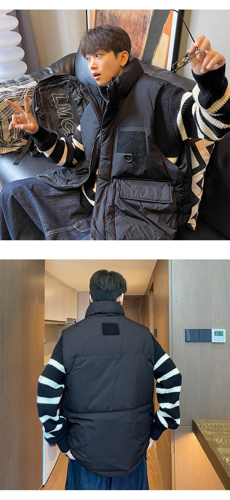 작업복 조끼 면 패딩 재킷 소년 2023 겨울 새로운 민소매 양복 조끼 미국 복고풍 느슨한 스탠드 칼라 코트스토어 가기