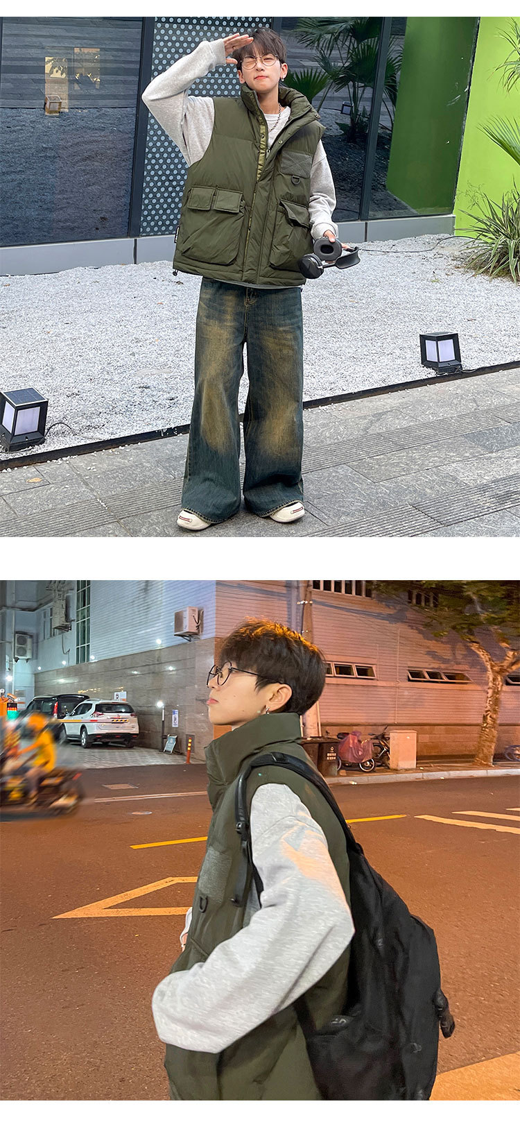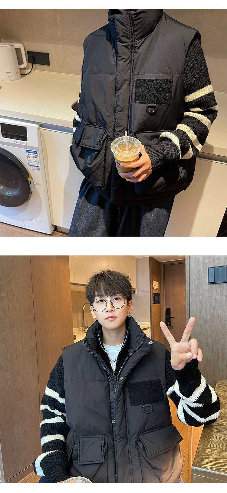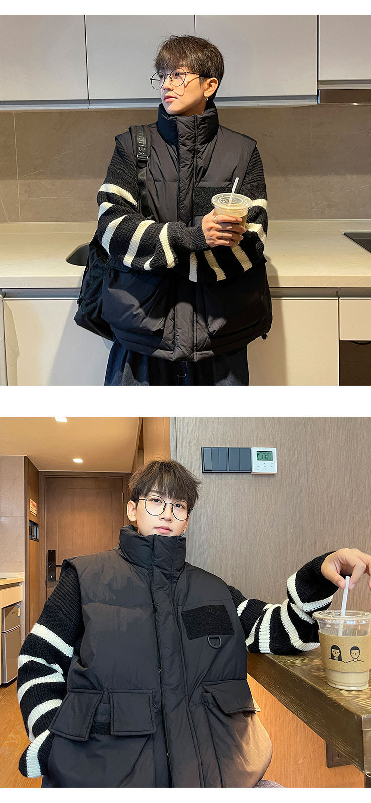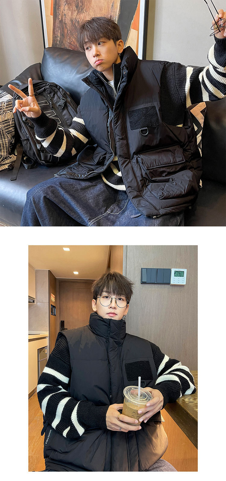 작업복 조끼 면 패딩 재킷 소년 2023 겨울 새로운 민소매 양복 조끼 미국 복고풍 느슨한 스탠드 칼라 코트스토어 가기