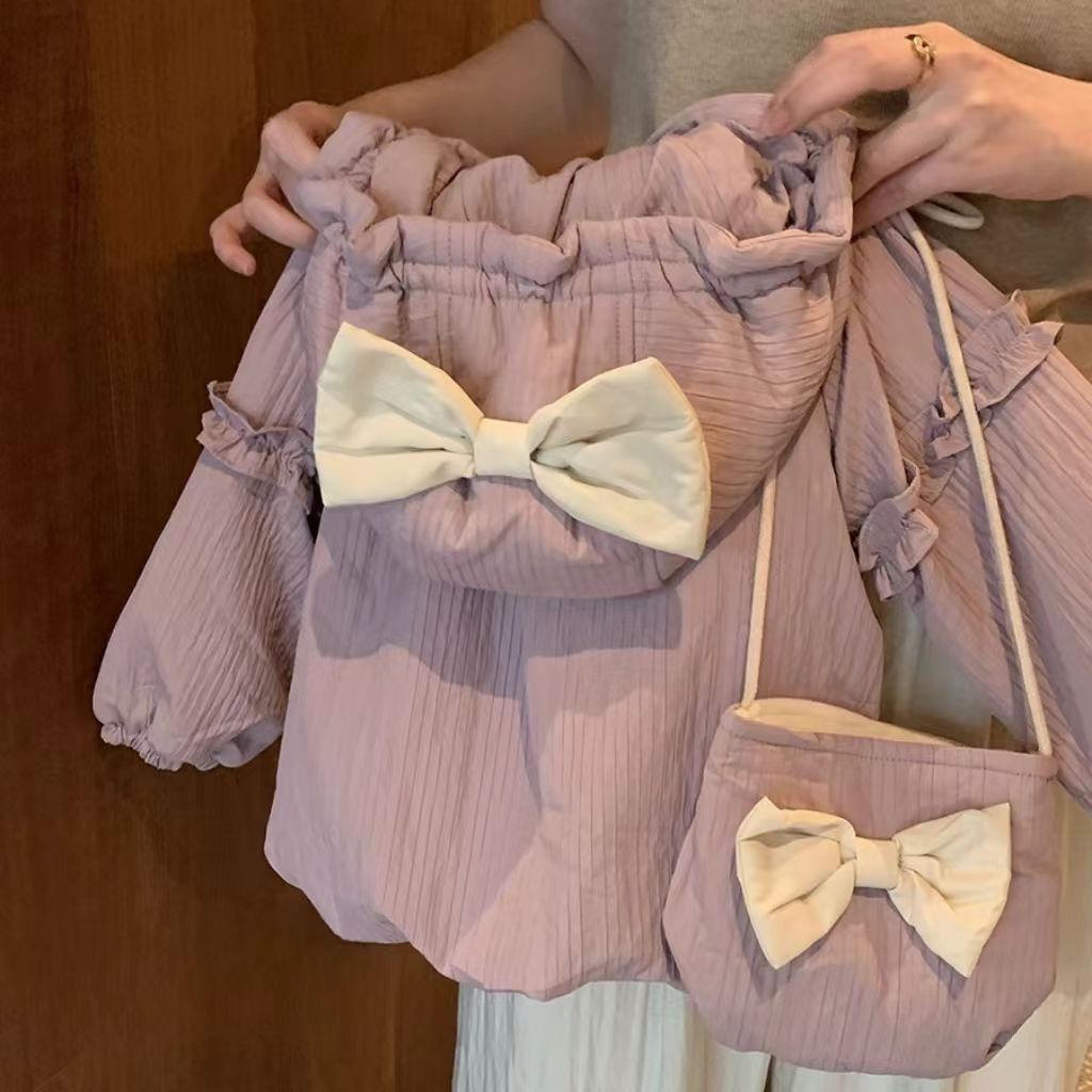 • 보라색 리본 코트 (기모 안감, 두툼한 두께) + 가방 증정