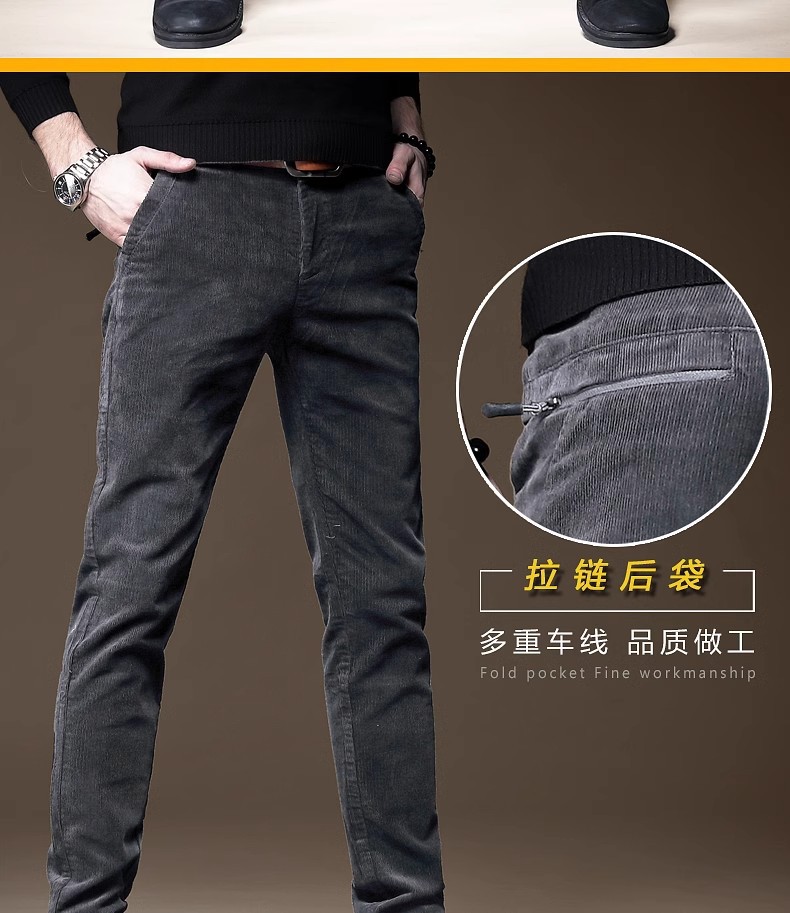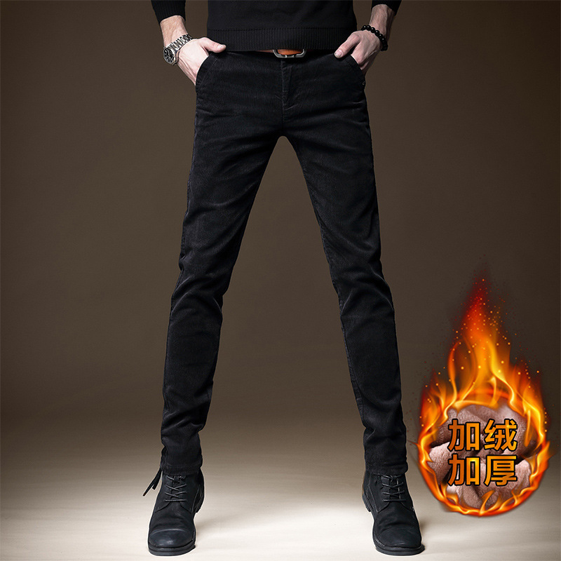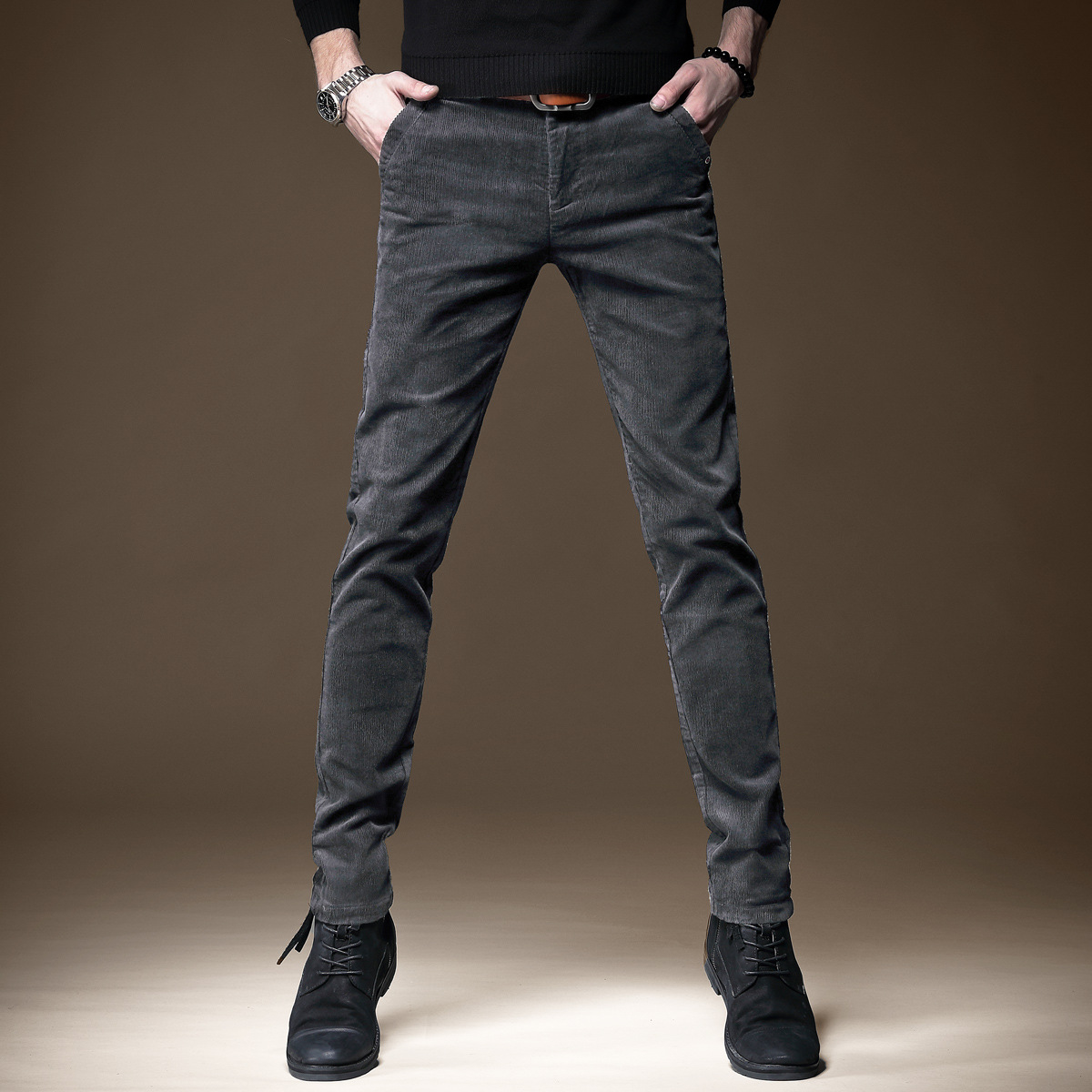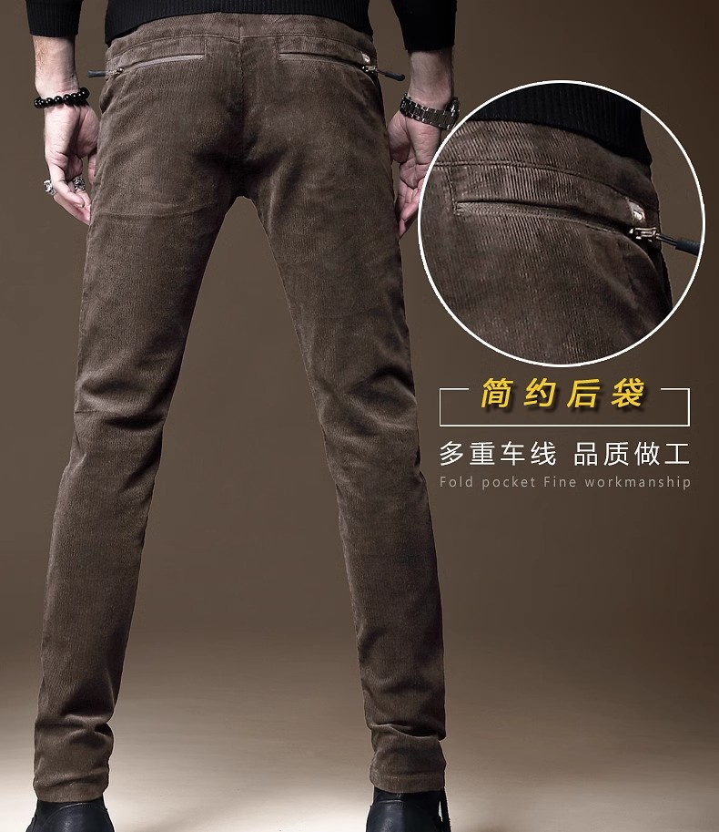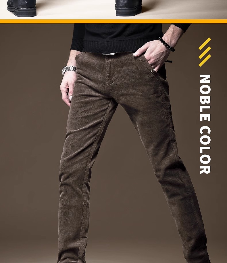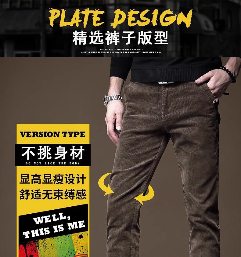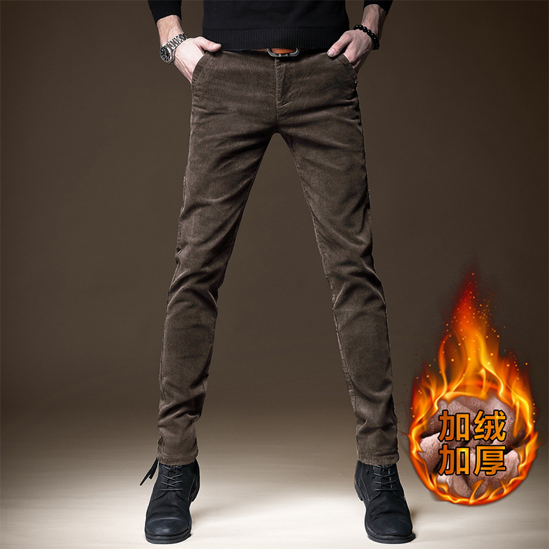 2023 겨울 새 기모 코듀로이 캐주얼 바지 남성용 슬림 핏 작은 발 탄성 벨벳 바지 도매스토어 가기