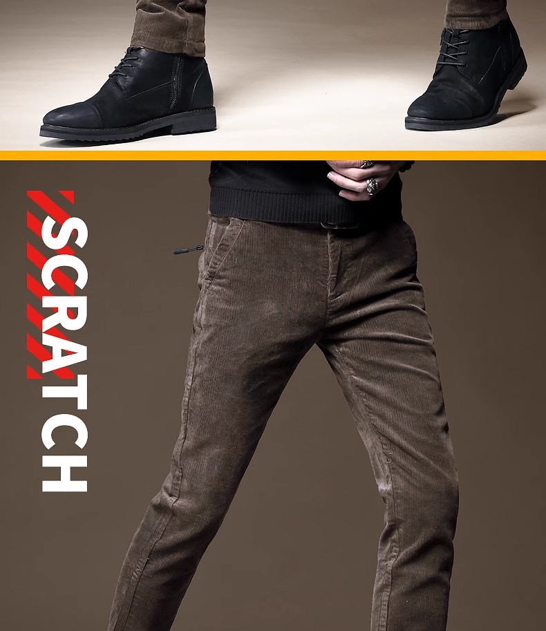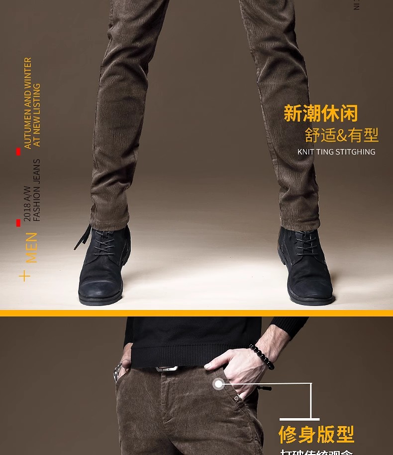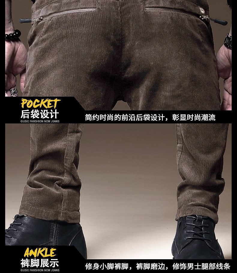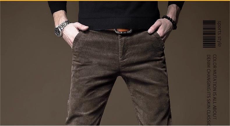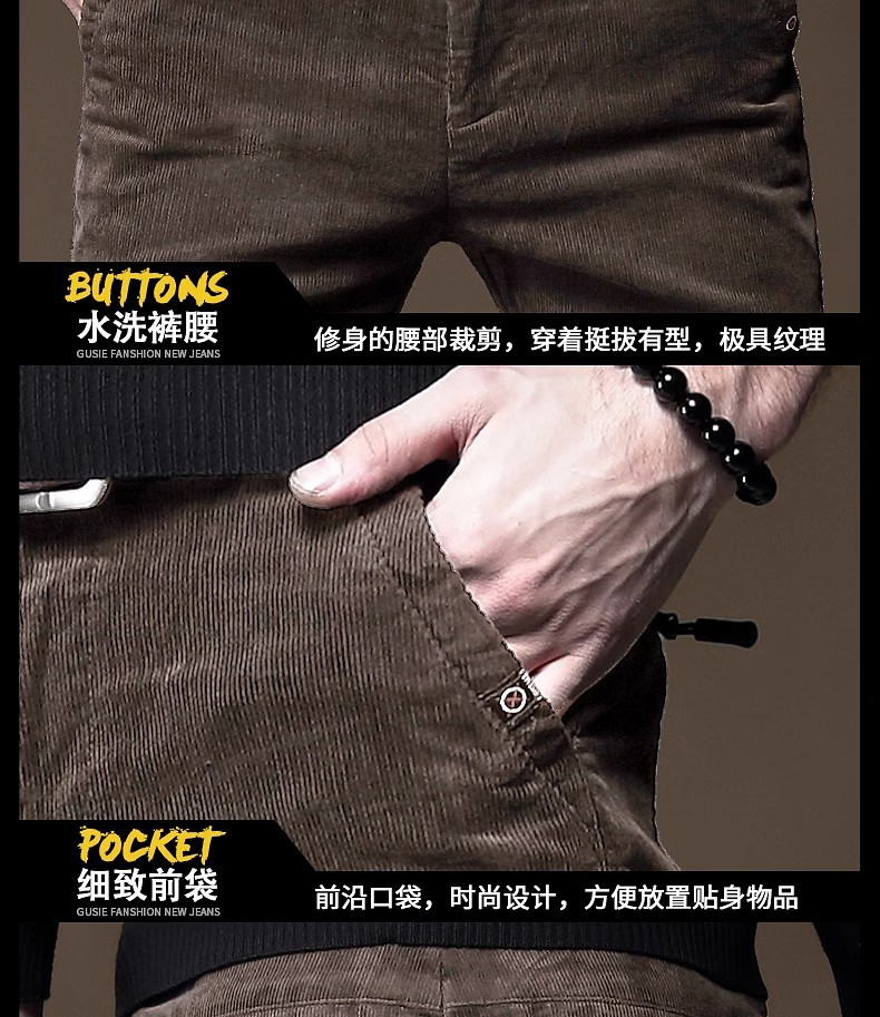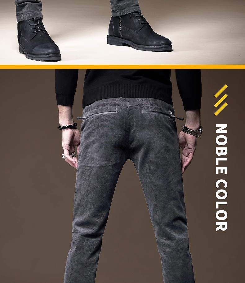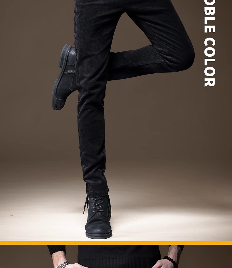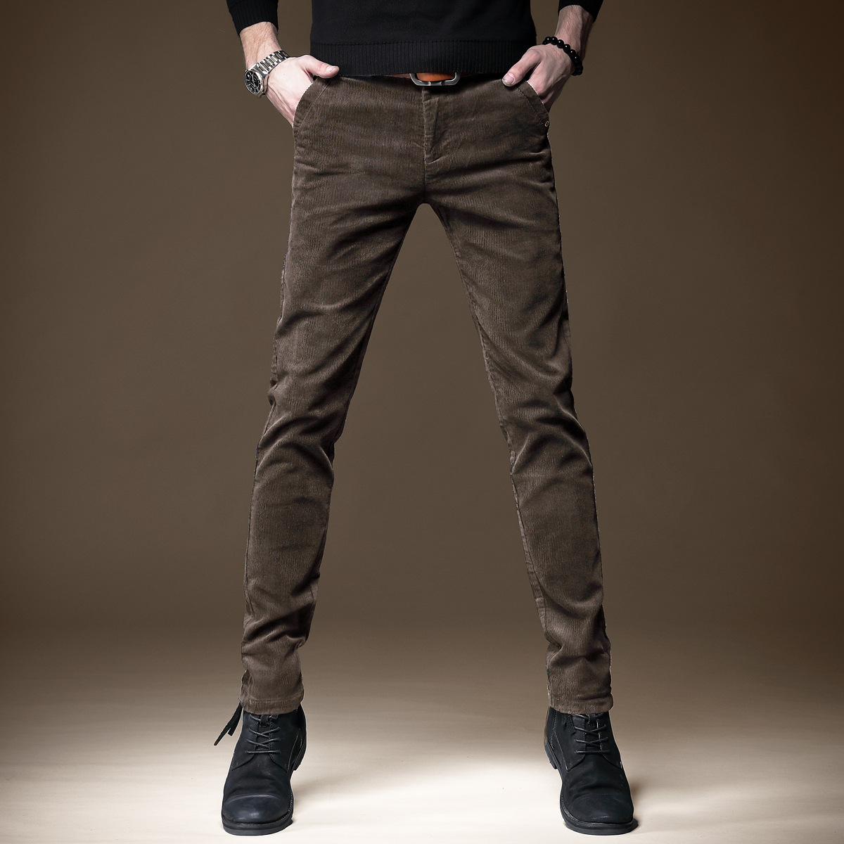 2023 겨울 새 기모 코듀로이 캐주얼 바지 남성용 슬림 핏 작은 발 탄성 벨벳 바지 도매스토어 가기