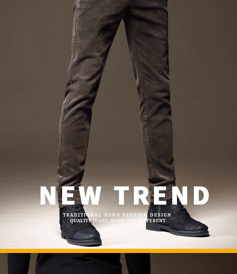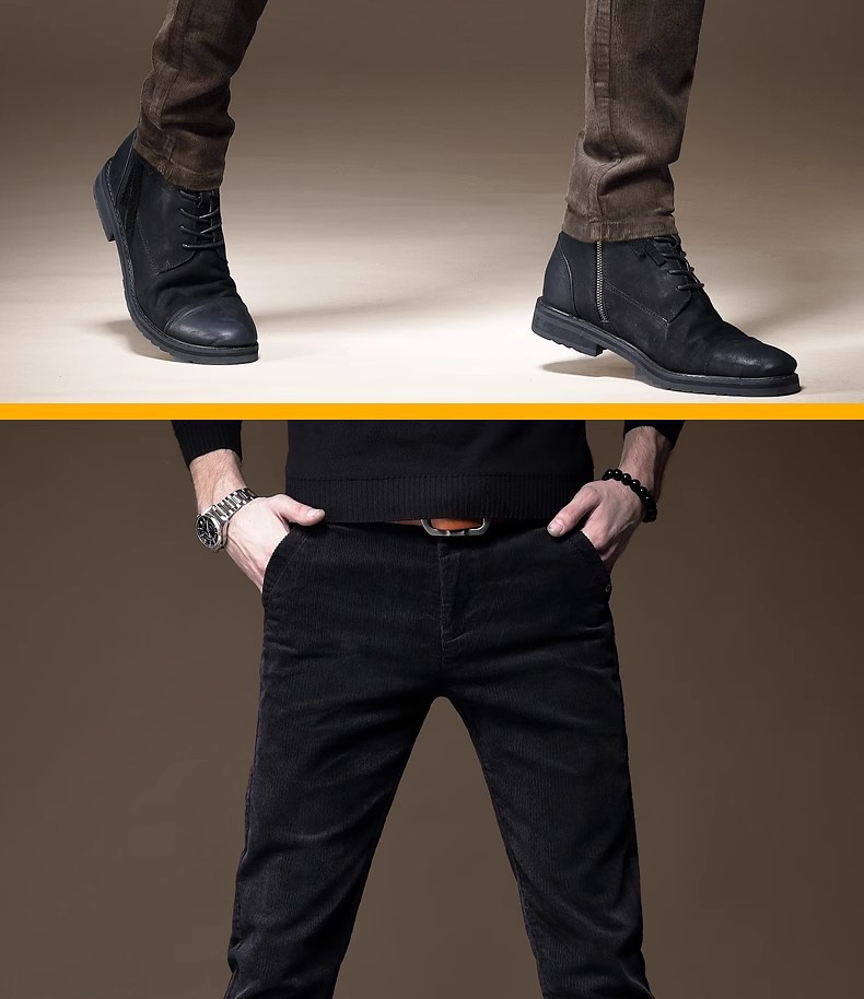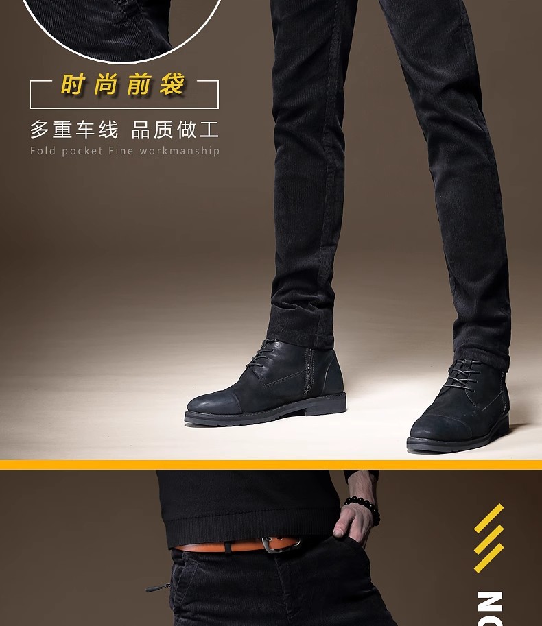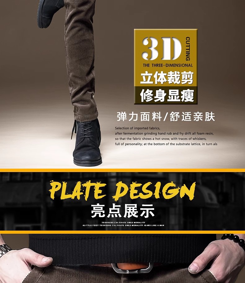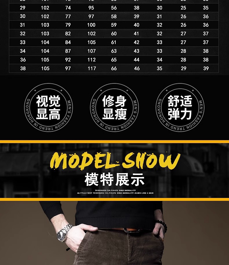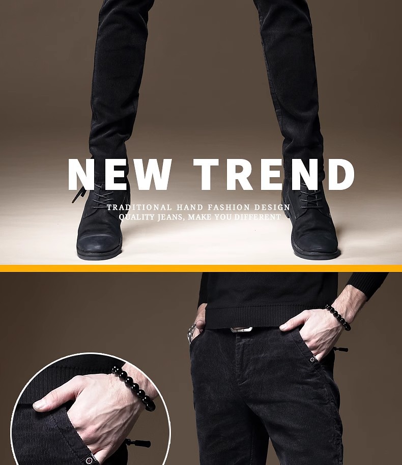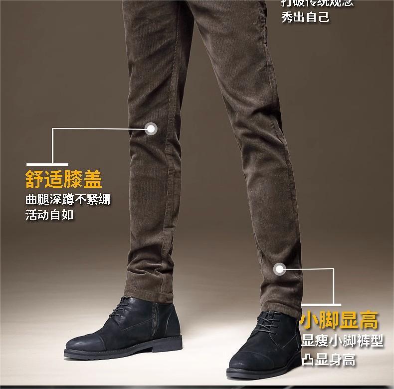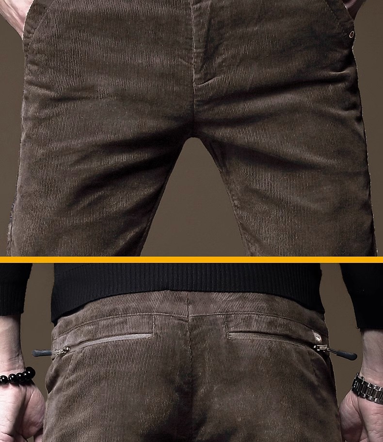 2023 겨울 새 기모 코듀로이 캐주얼 바지 남성용 슬림 핏 작은 발 탄성 벨벳 바지 도매스토어 가기