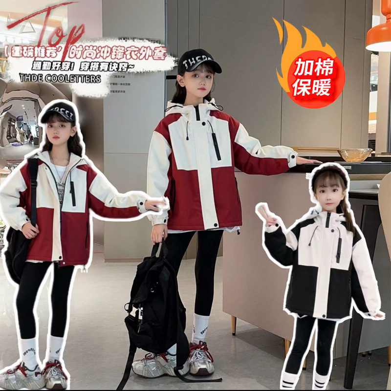소녀 가을 겨울 퀼트 재킷 2024 새로운 스타일 중대형 어린이 두꺼운 충전 옷 소녀 한국 스타일 서양식 후드 코트스토어 가기