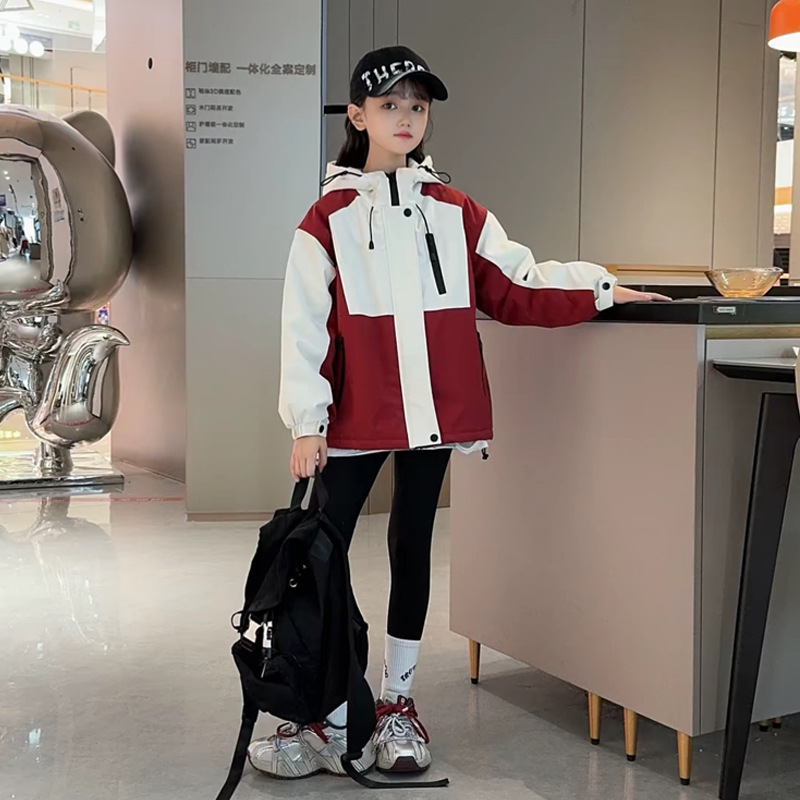 소녀 가을 겨울 퀼트 재킷 2024 새로운 스타일 중대형 어린이 두꺼운 충전 옷 소녀 한국 스타일 서양식 후드 코트
