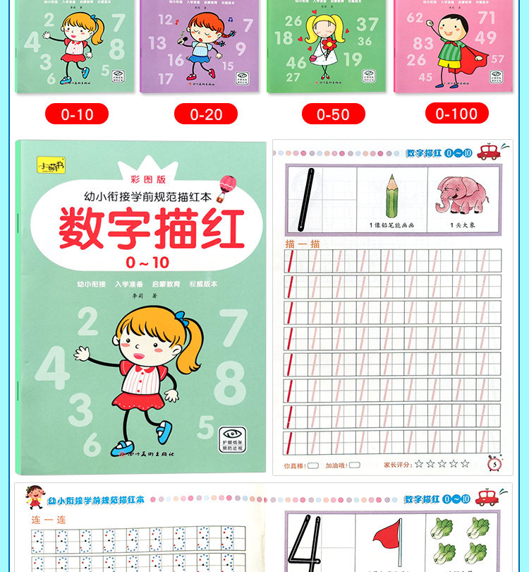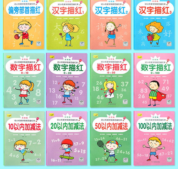 어린 아이들은이 작은 학교 유치원 운동 책 뇌졸중 순서 급진적 인 중국어 번호 추가 및 뺄셈 병음 영어로 추적 빨간색과 연결됩니다.스토어 가기