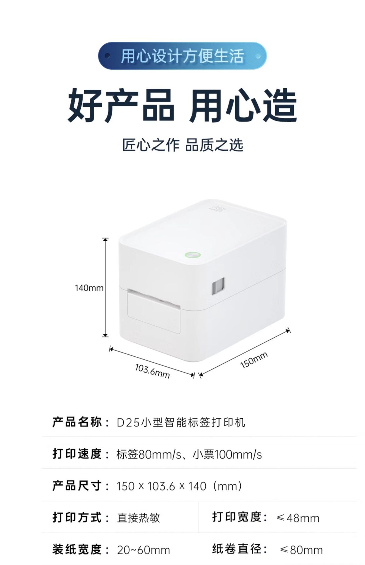 한인 D25/D35 열전사 라벨 프린터, 접착식 스티커 바코드 기계, 의류 태그, 밀크티 라벨 용지