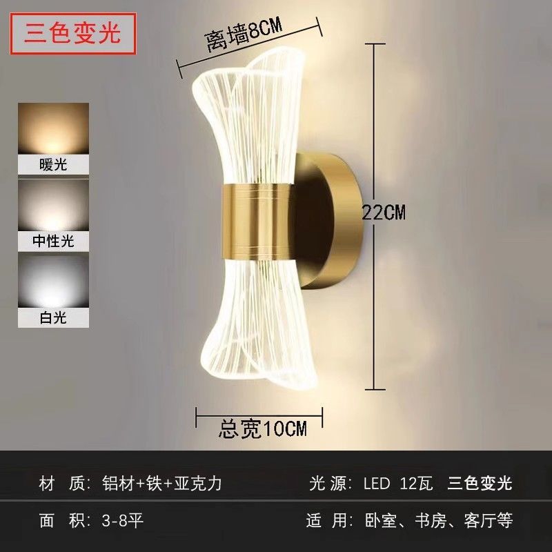 간단한 침대 옆 램프 창조적 인 침실 거실 침대 옆 노르딕 LED 아크릴 통로 배경 벽 후면 현대 벽 램프