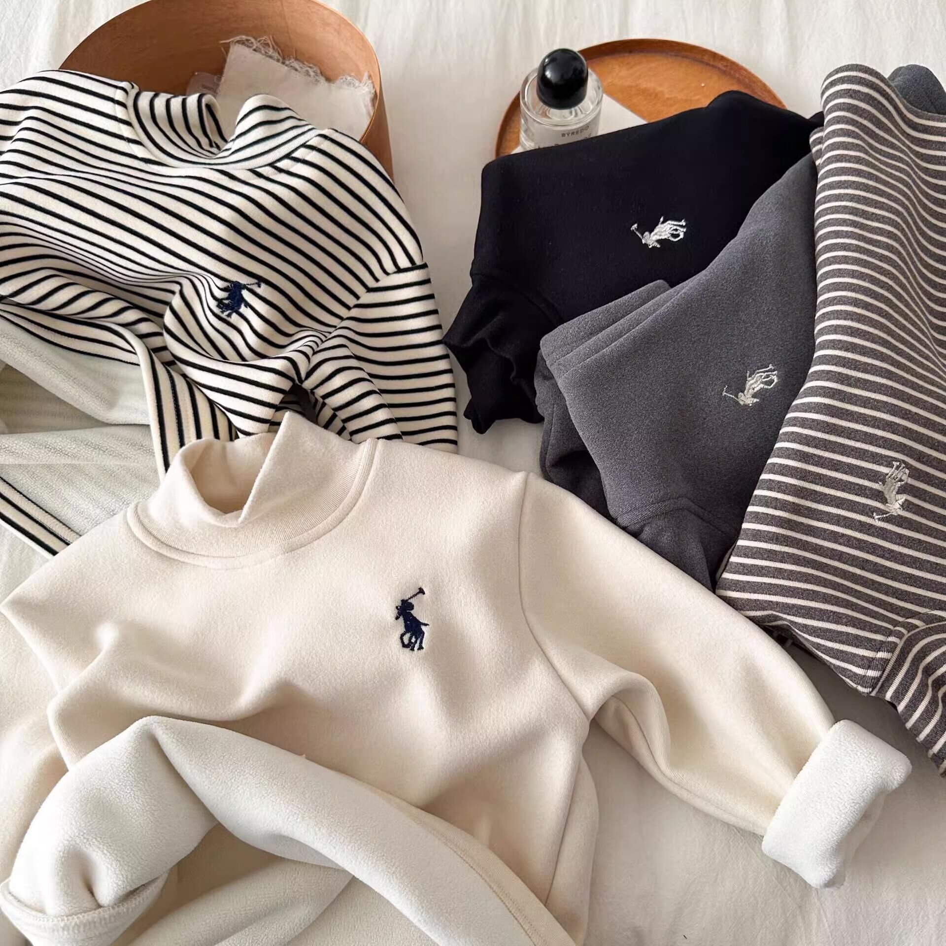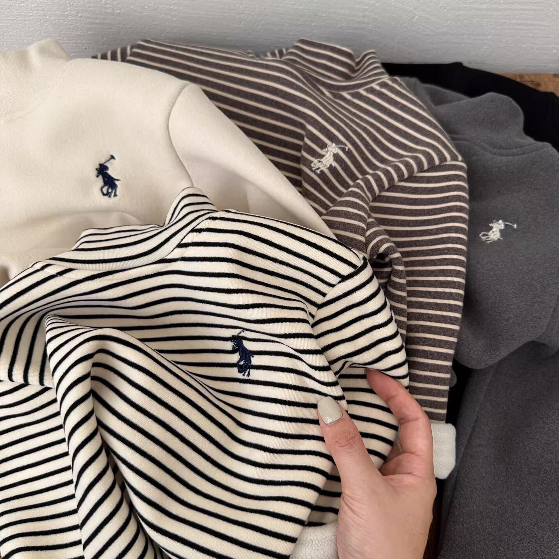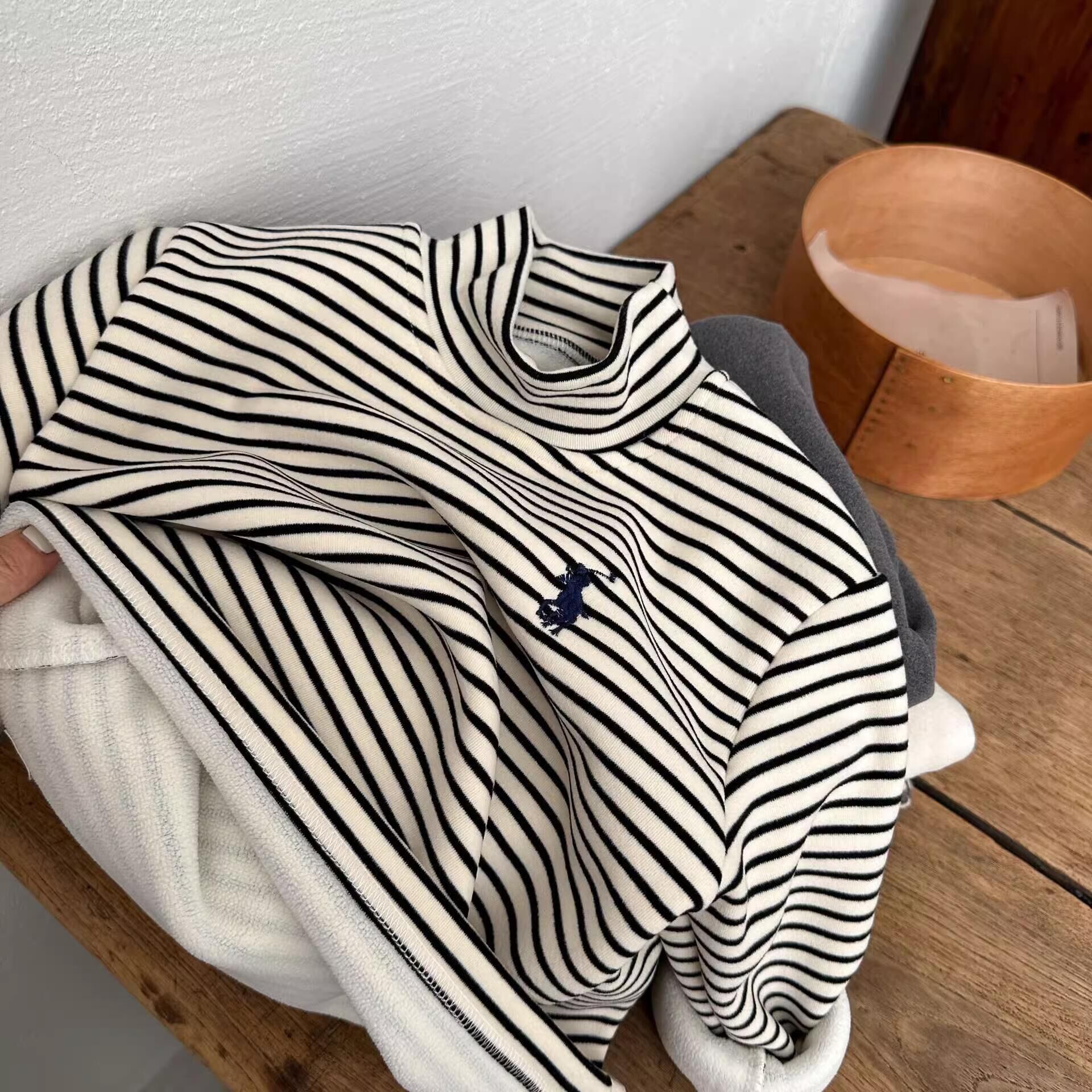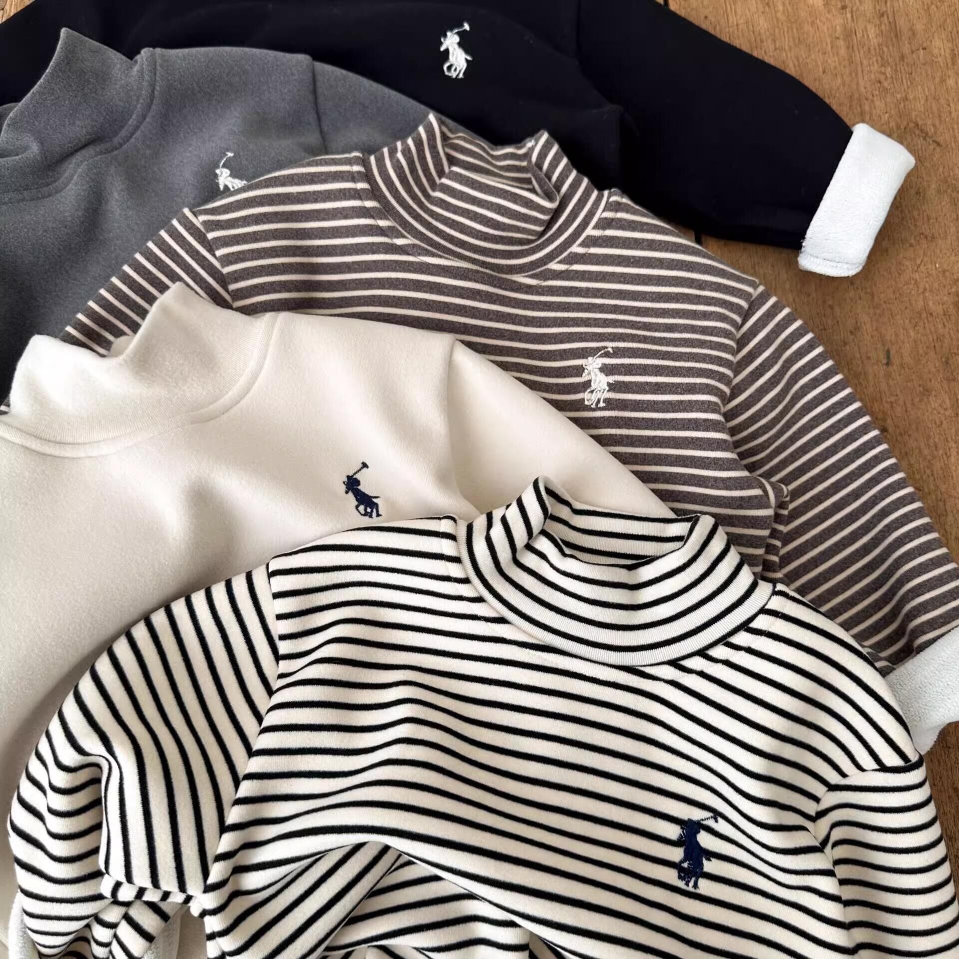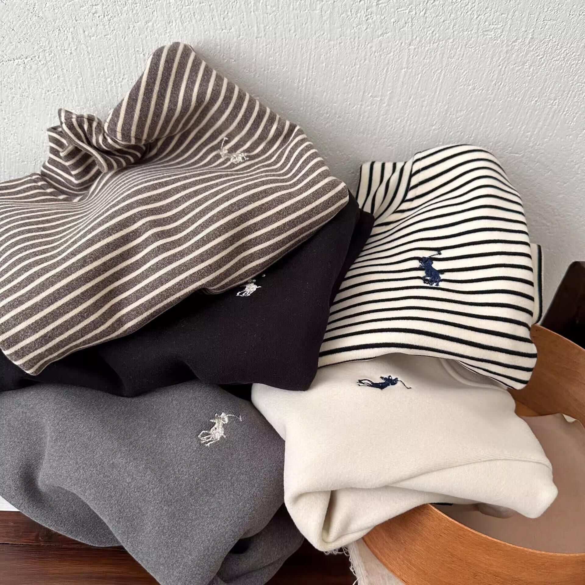라임 어린이 바닥 셔츠 가을과 겨울 새 소년 세미 하이 칼라 긴 소매 T 아기 자수 스트라이프 탑 올 매치스토어 가기
