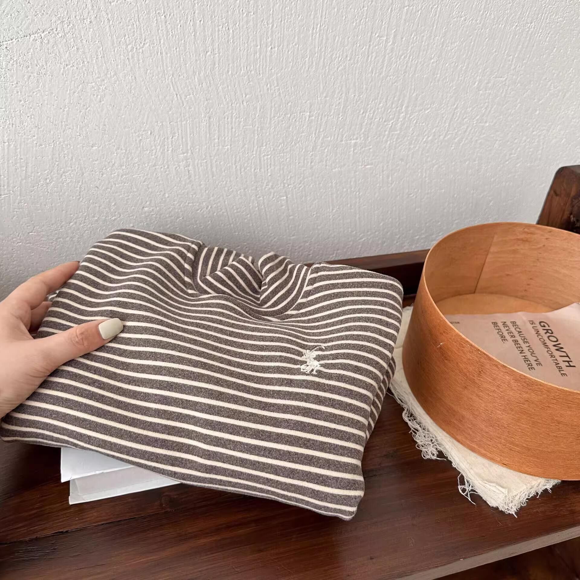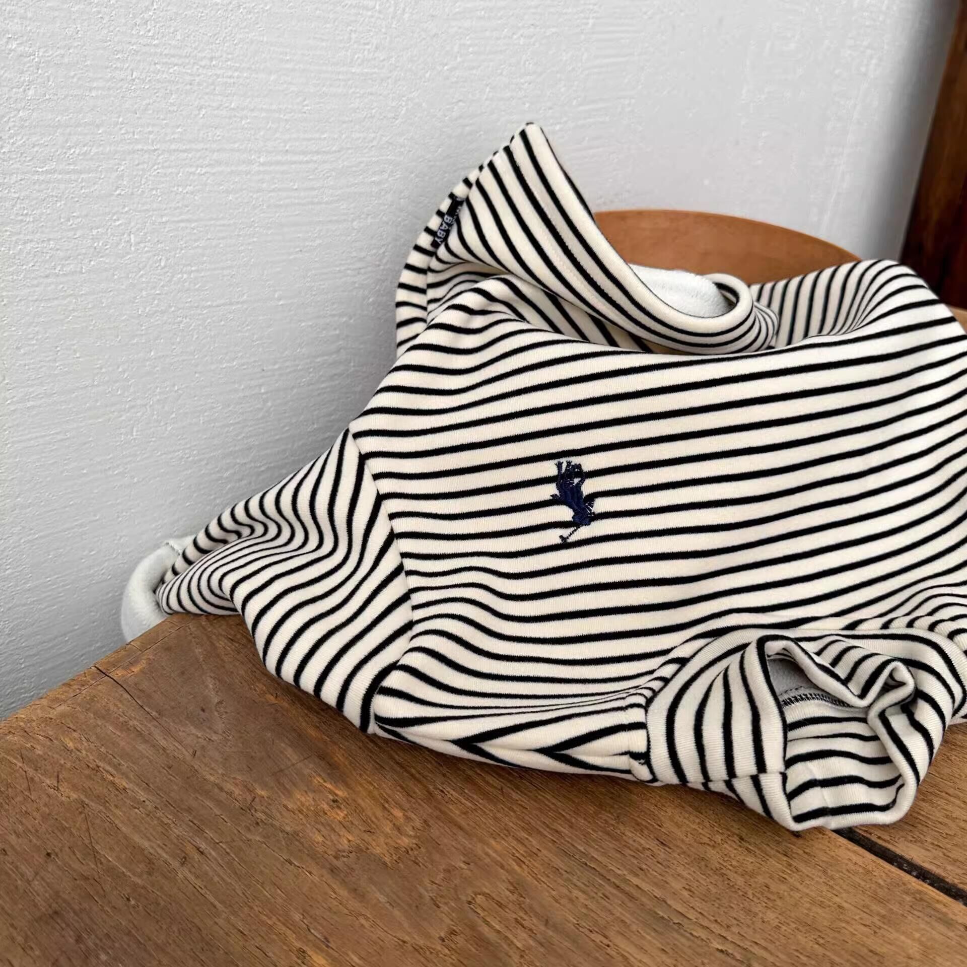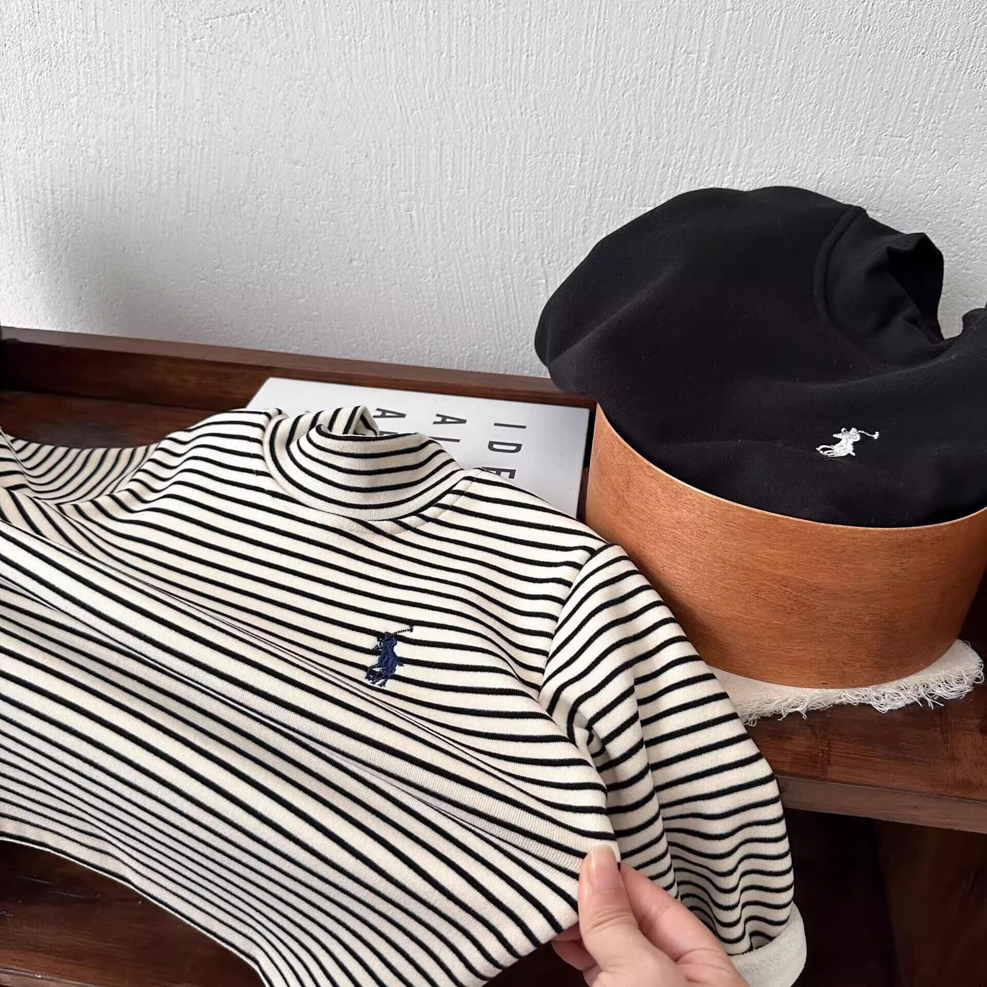 라임 어린이 바닥 셔츠 가을과 겨울 새 소년 세미 하이 칼라 긴 소매 T 아기 자수 스트라이프 탑 올 매치