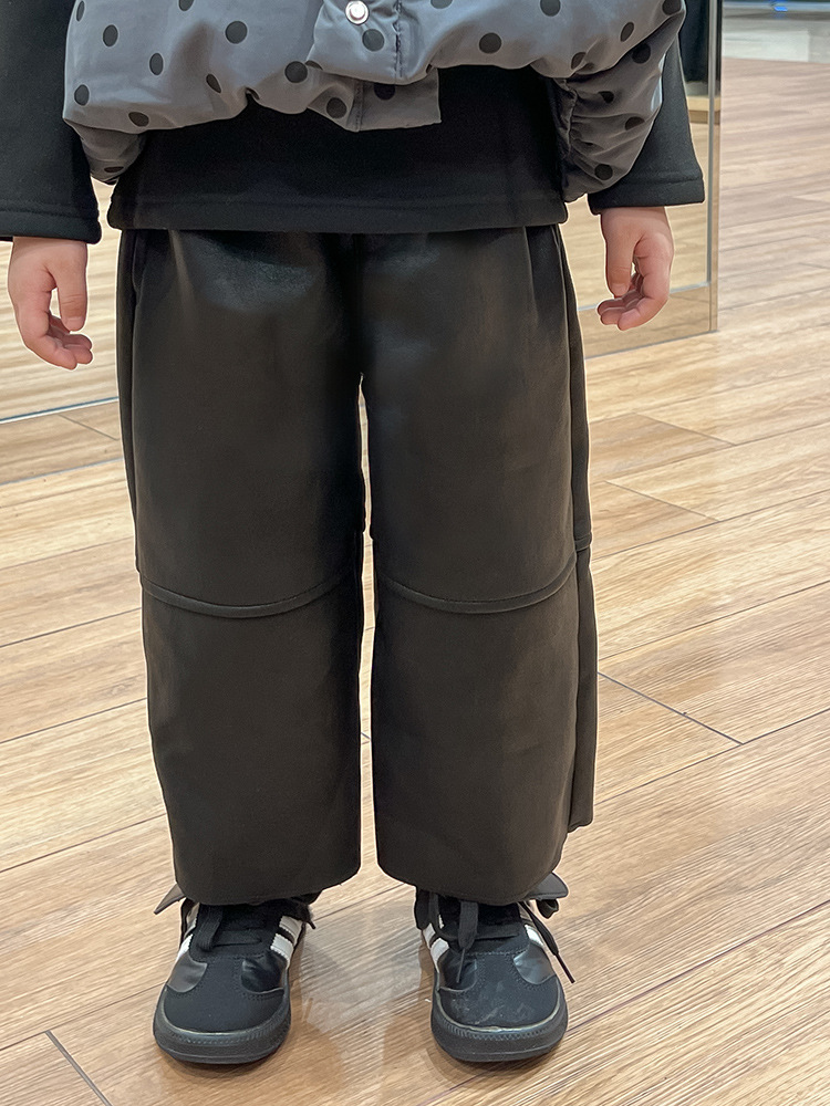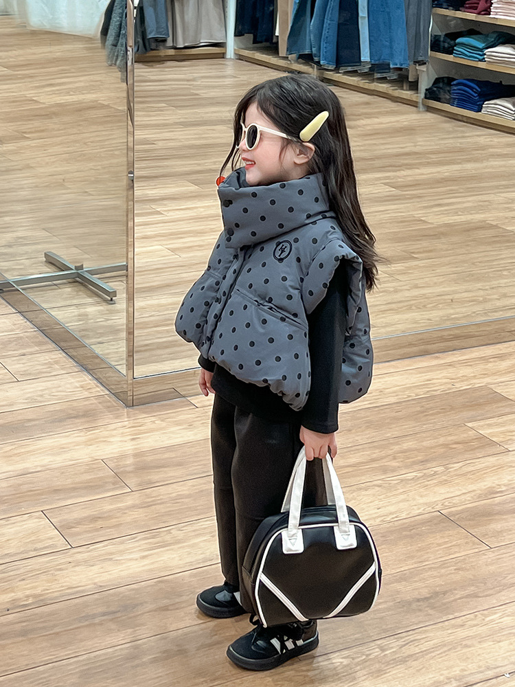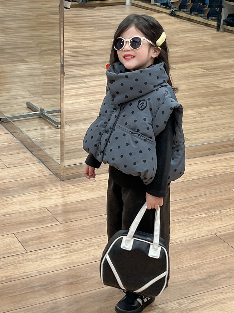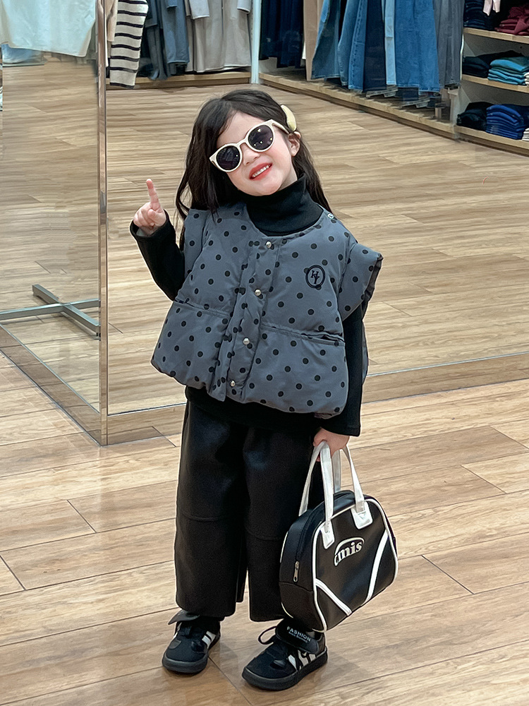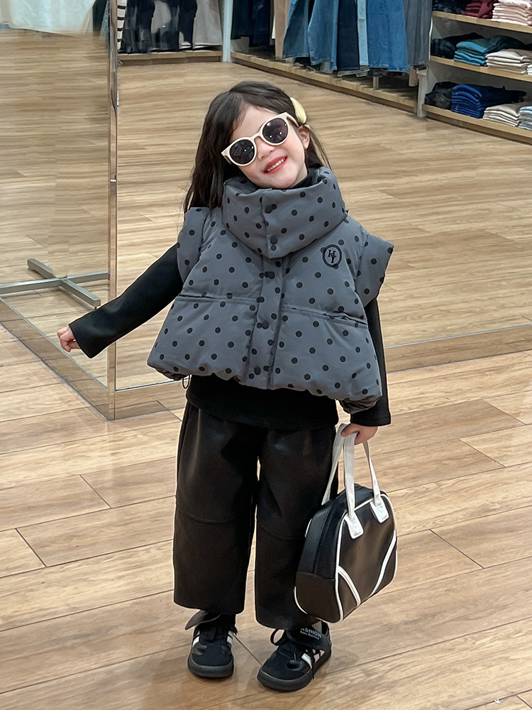 한국 스타일 가을과 겨울 새로운 도착 세트 기모 가죽 바지 분리 가능한 칼라 폴로 도트 패딩 재킷 조끼 기모 기본 셔츠 아동복스토어 가기