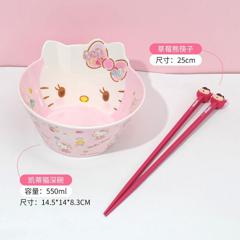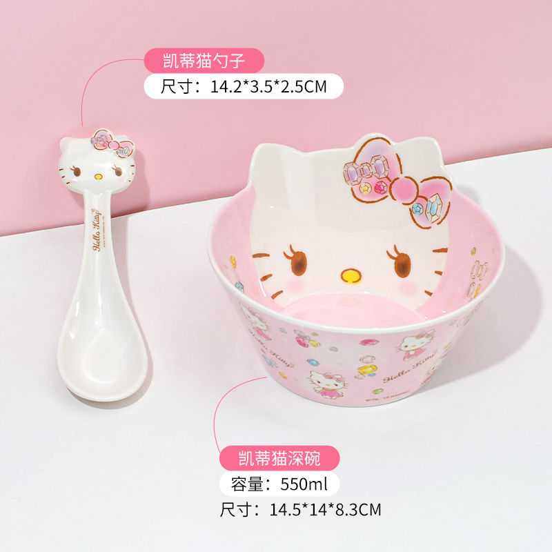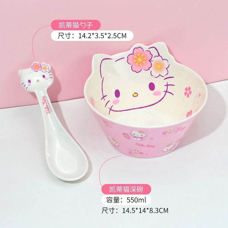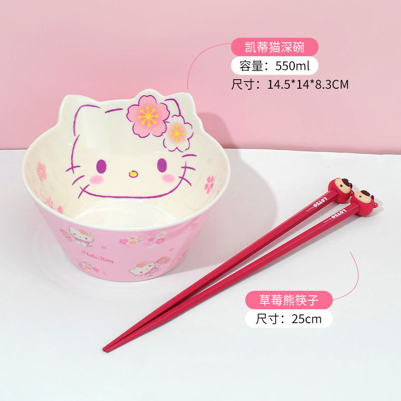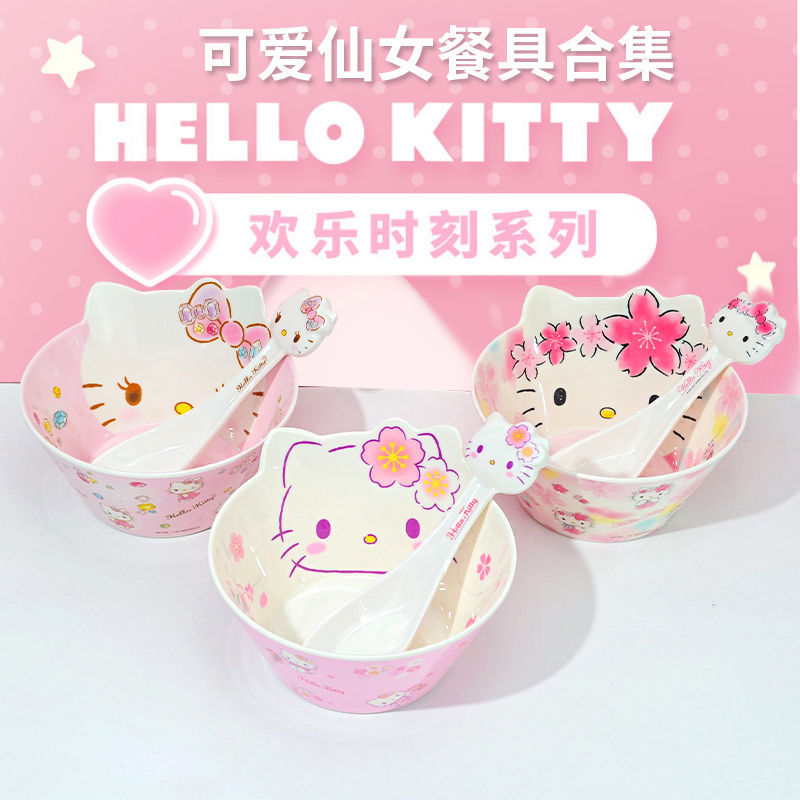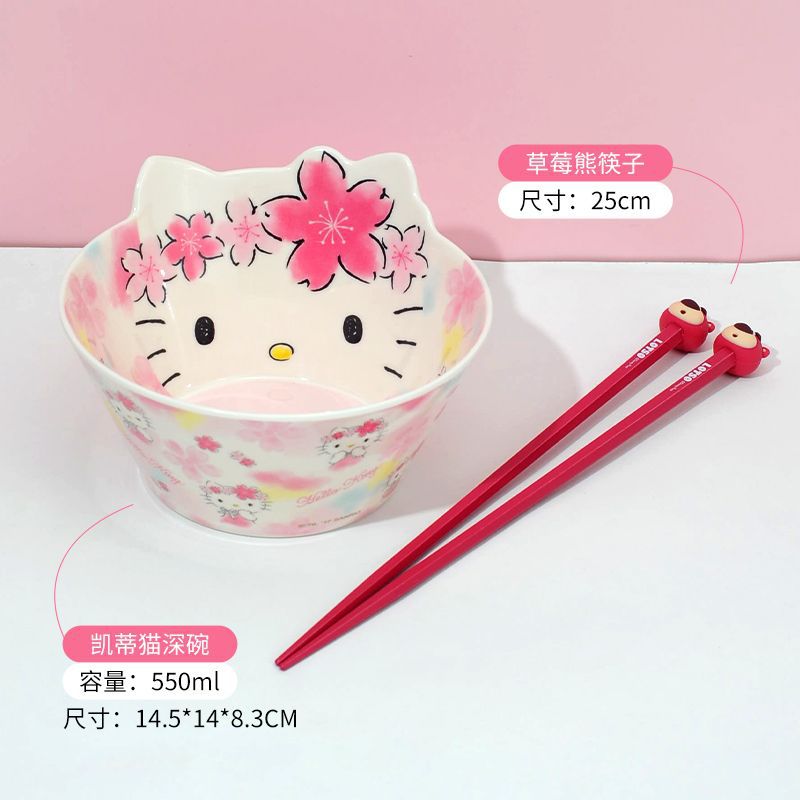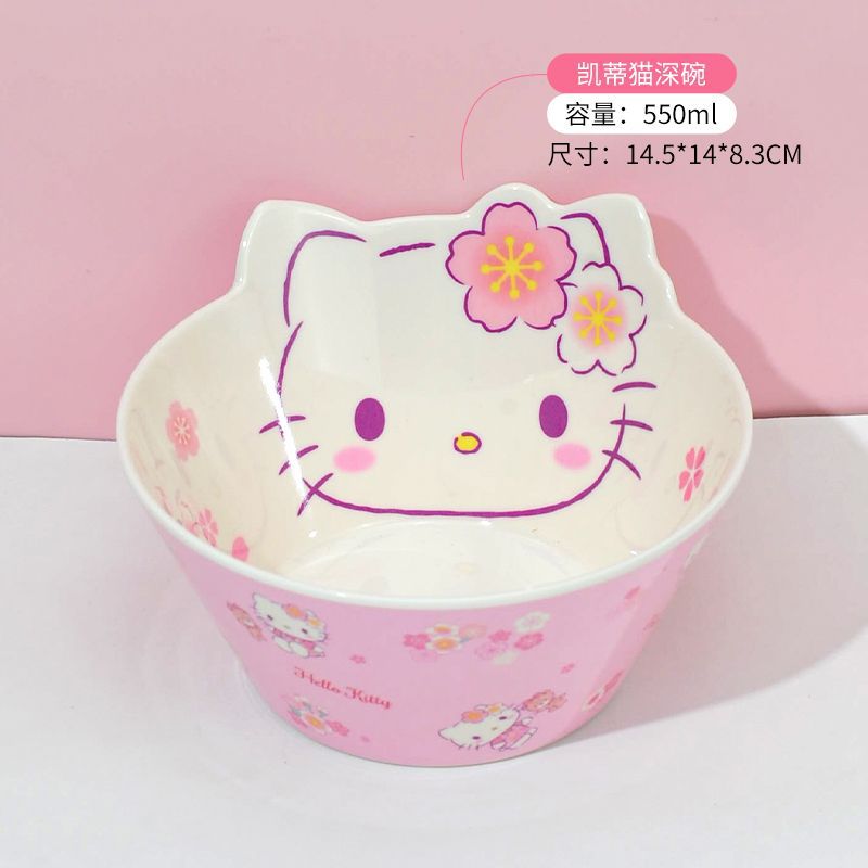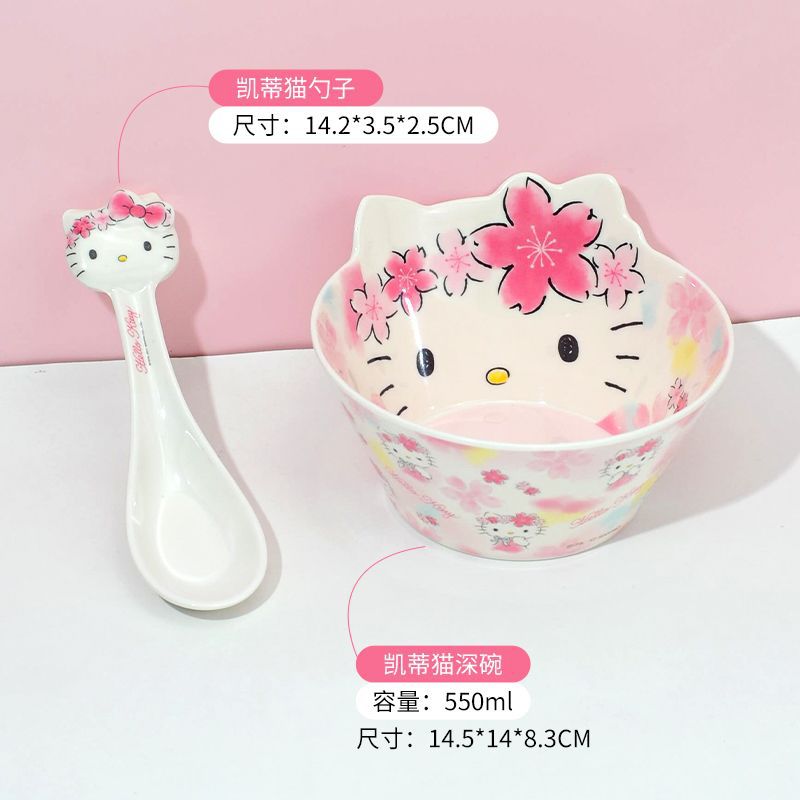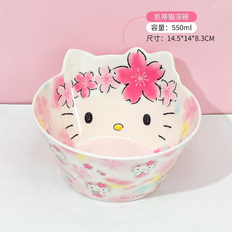 산리오 쌀 그릇 벚꽃 헬로 키티 식기 요정 카토 그릇 귀여운 핑크 큰 수프 그릇 국수 그릇