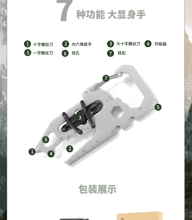 창조적 인 다기능 EDC 키 체인 홈 유지 보수 조합 16 기능 휴대용 미세 블랭킹 스테인레스 스틸 도구 카드
