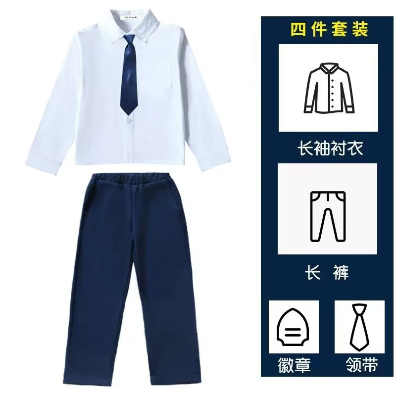• 흰색 긴팔, 남색 바지, 남색 넥타이와 배지가 함께 제공됩니다.