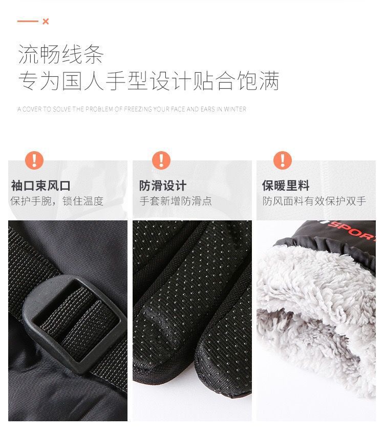 남성과 여성의 겨울 따뜻한 장갑 두꺼운 기모 오토바이 전기 자동차 냉간 면화 장갑 야외 방풍 스키 장갑