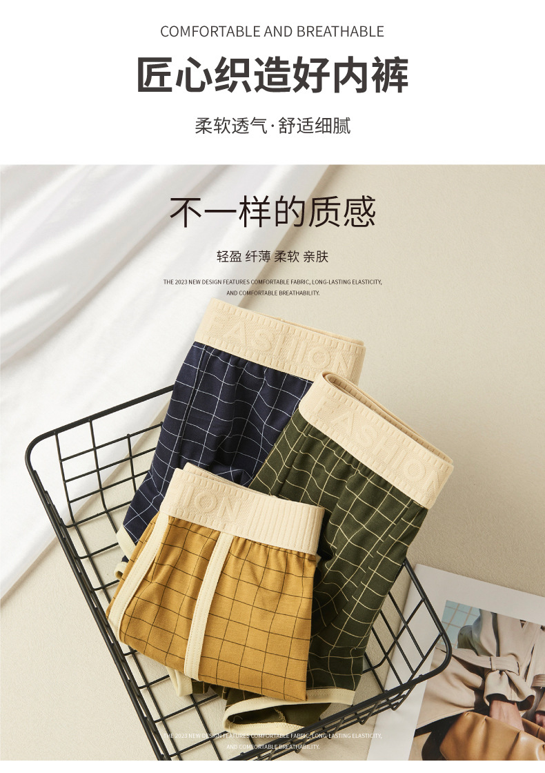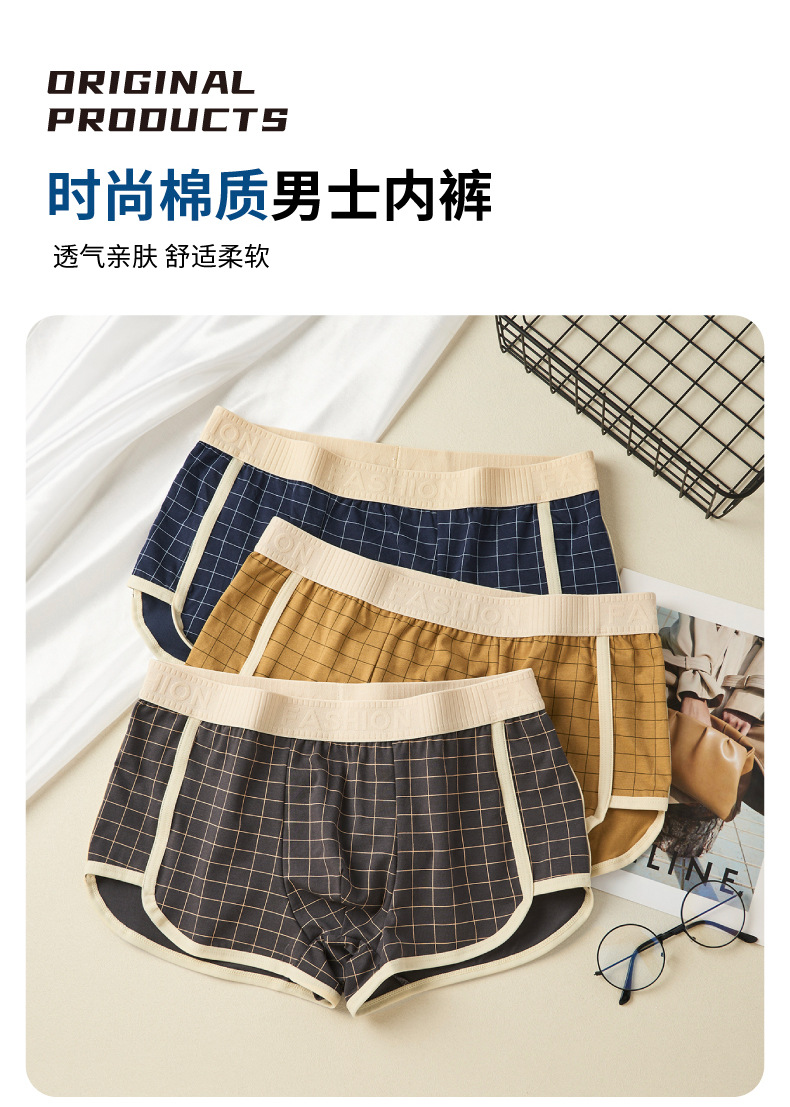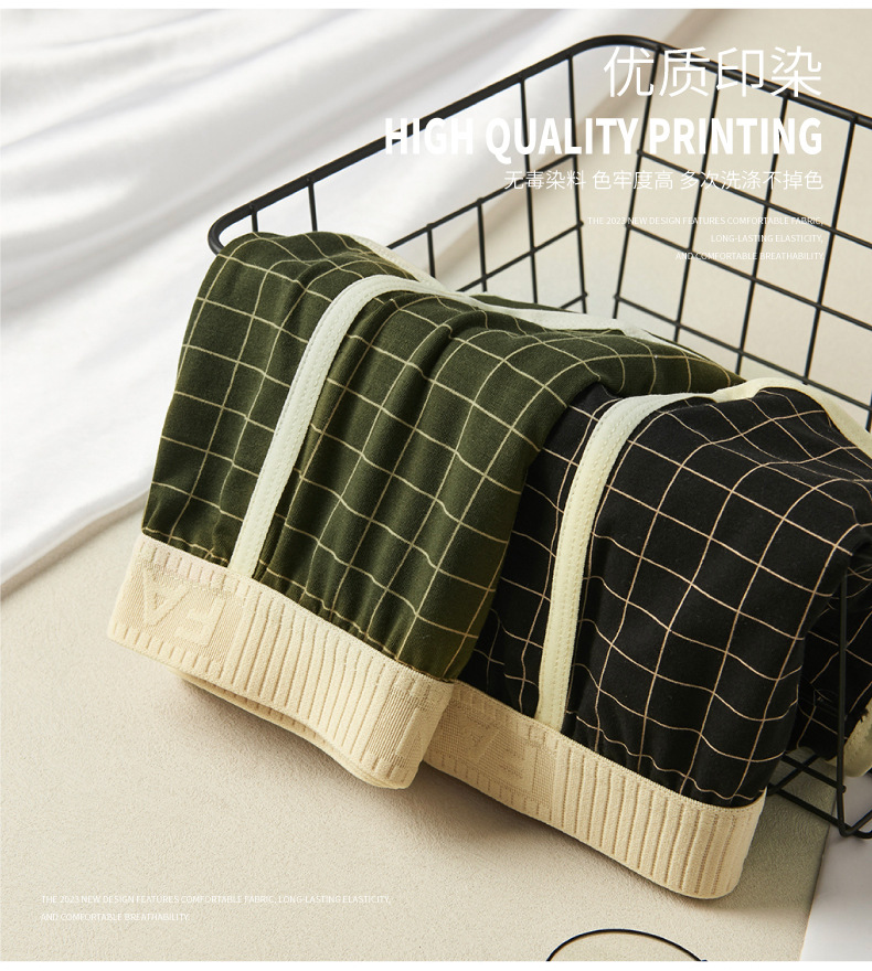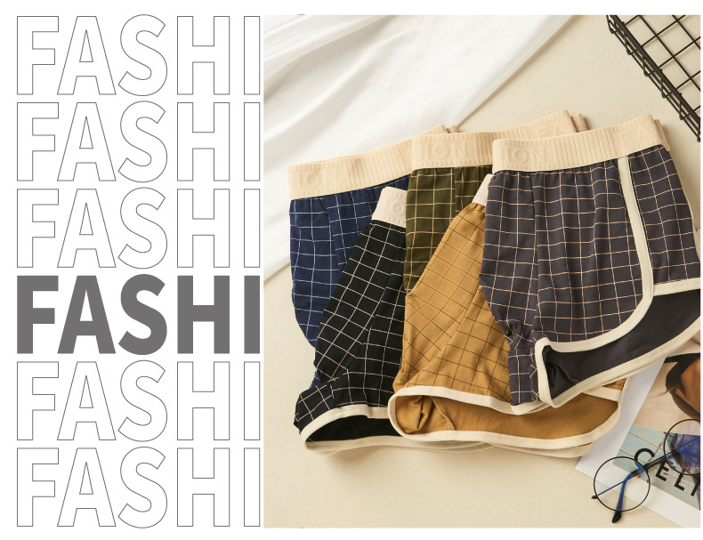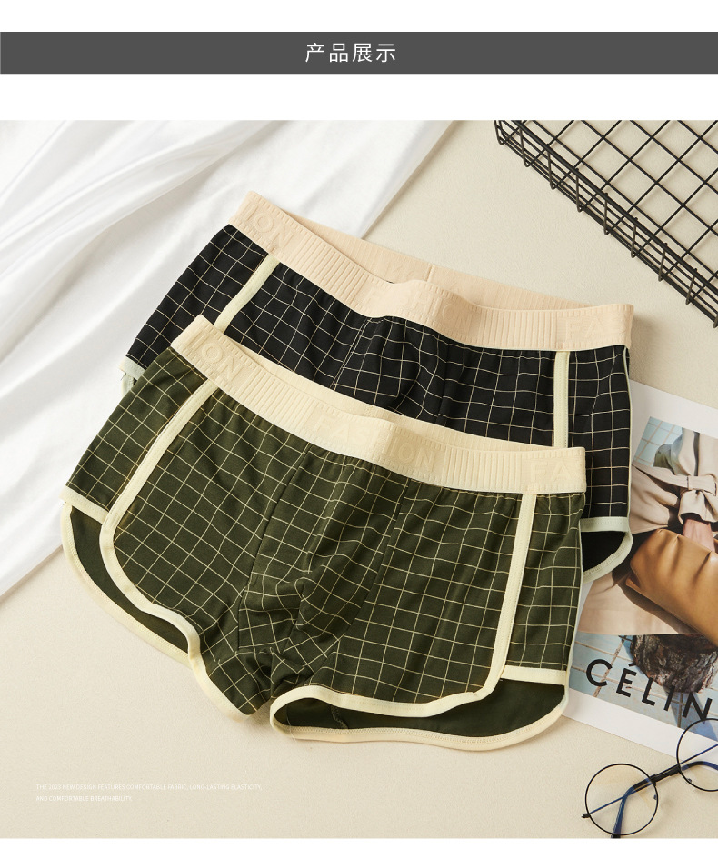 격자 무늬 남자 알로 바지 격자 무늬 남자 속옷 홈 속옷 통기성 복서 청소년을위한 중간 허리 안티 박테리아 반바지스토어 가기