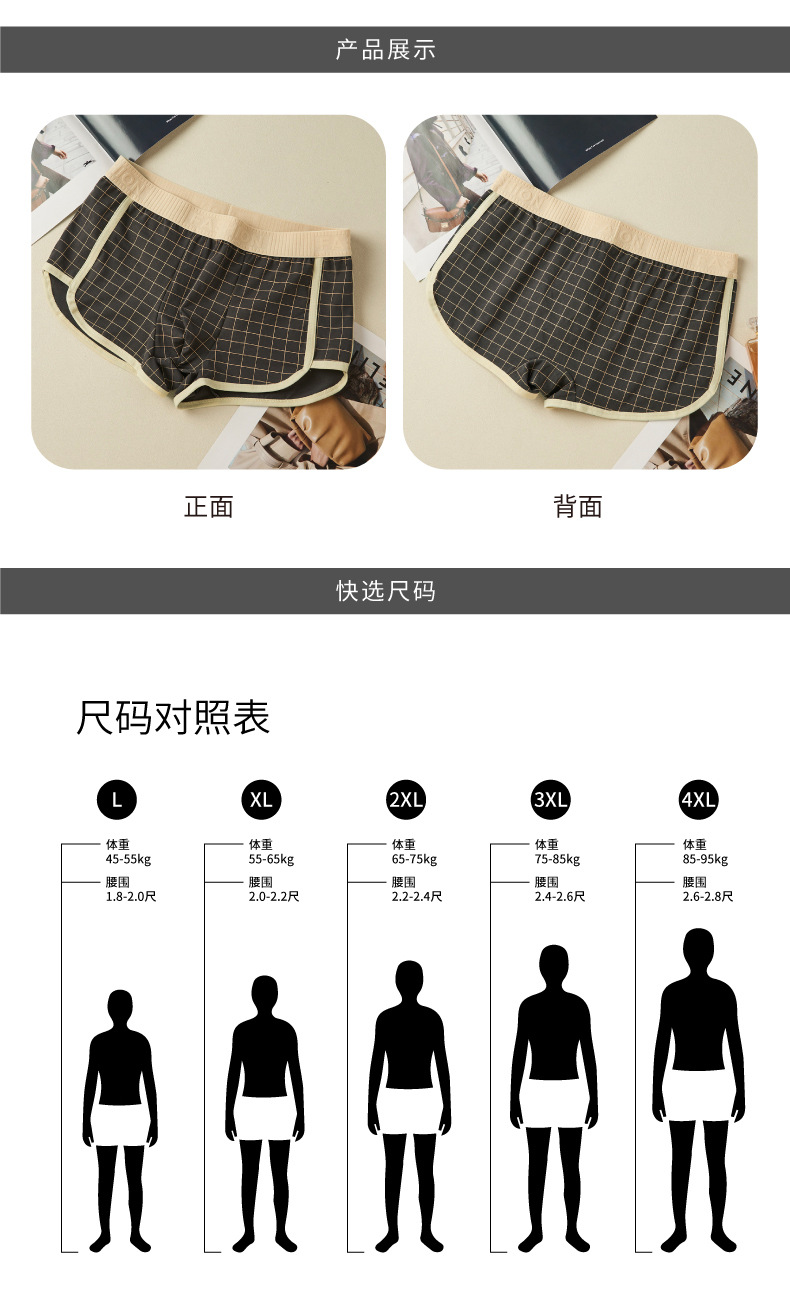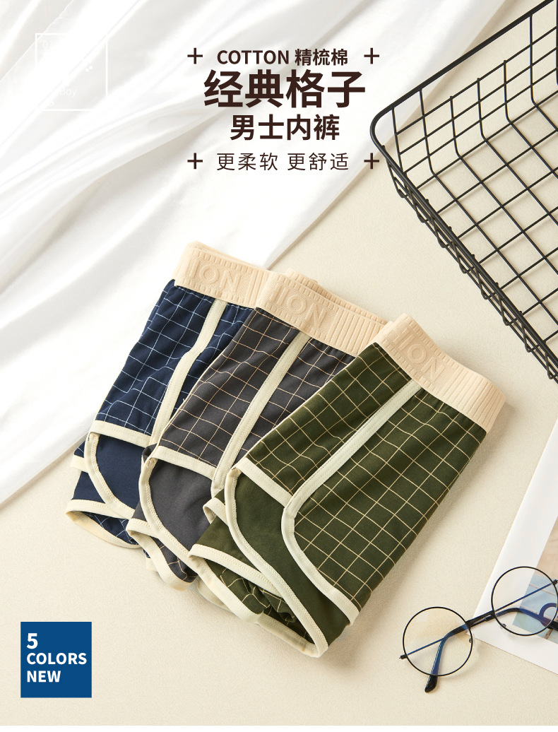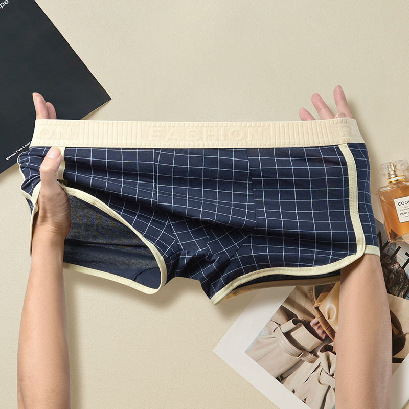 격자 무늬 남자 알로 바지 격자 무늬 남자 속옷 홈 속옷 통기성 복서 청소년을위한 중간 허리 안티 박테리아 반바지