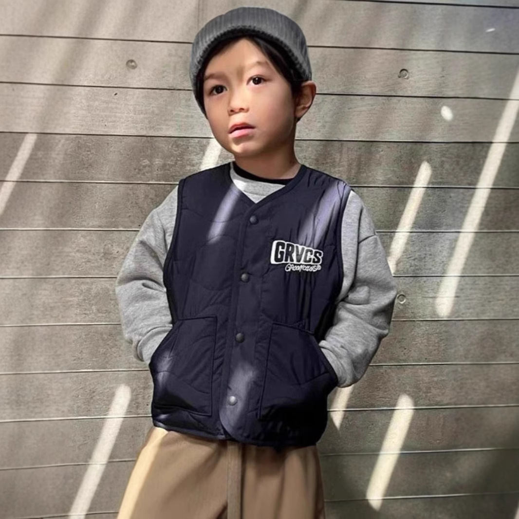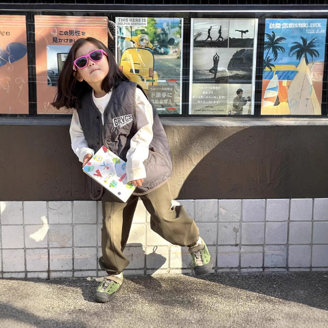 GC 어린이 착용 산 숲 캠핑 스타일 일본식 퀼트 조끼 소년 소녀를위한 가을 및 겨울 내부 라이너 툴링 따뜻하지 않은 따뜻한 올 매치스토어 가기
