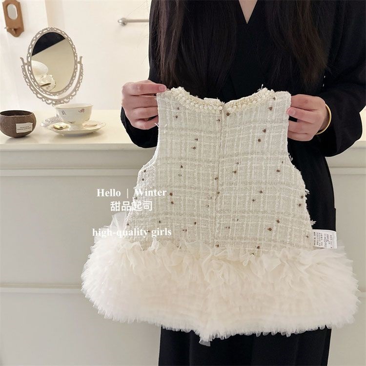 작은 향기로운 스타일 아기 소녀의 중공업 진주 판초 벤투 스커트 케이크 조끼 숙녀 서양식 스커트 한푸 조끼 공주 치마