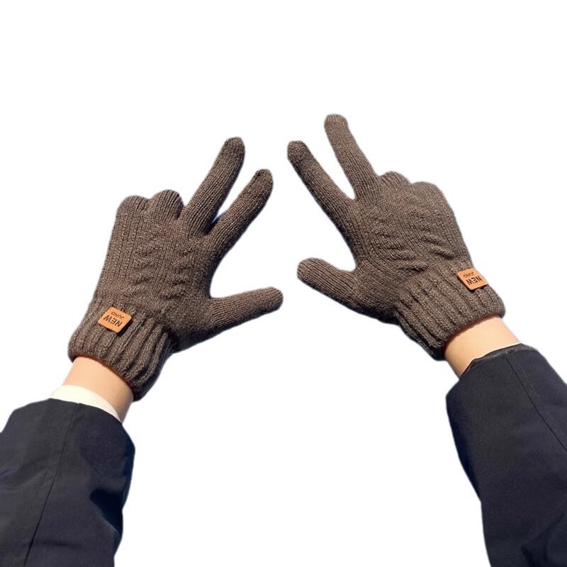가을 겨울 남녀 커플용 한국 스타일 두꺼운 단색 니트 모직 따뜻한 플리스 터치스크린 운전 및 자전거 타기용스토어 가기