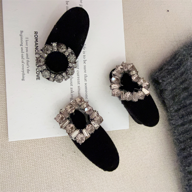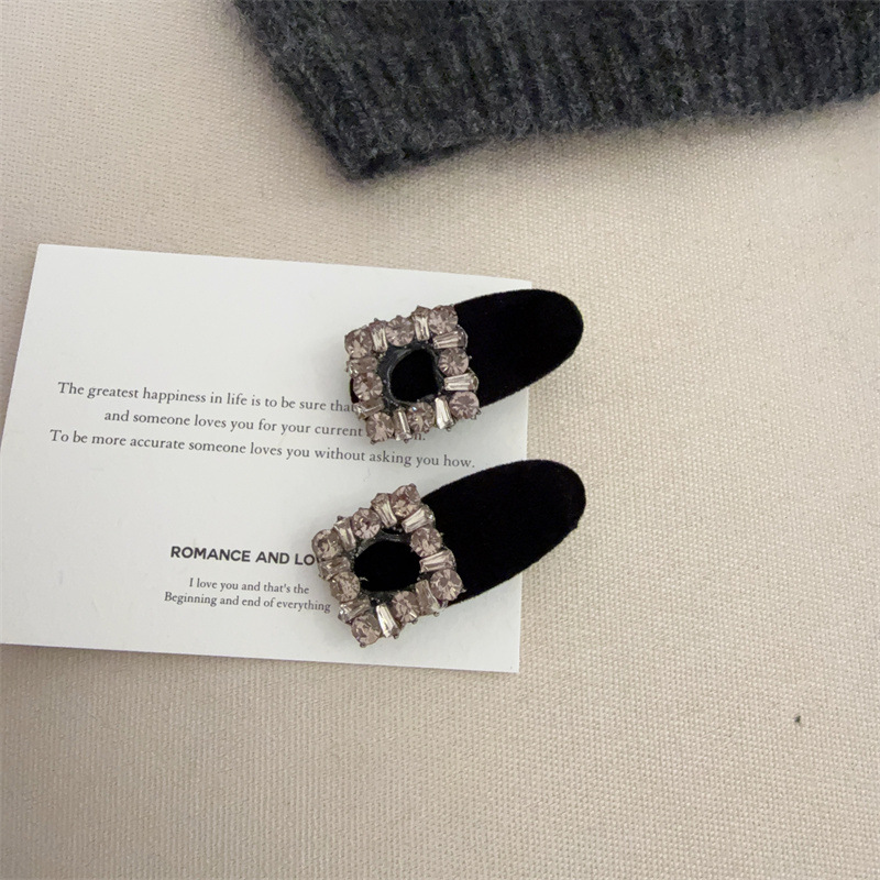 벨벳 덕빌 클립 절묘한 프론트 헤드 뱅 작은 사이드 클립 여성 사이드 클립 라인스톤 고급 한국어 헤어핀 헤드웨어