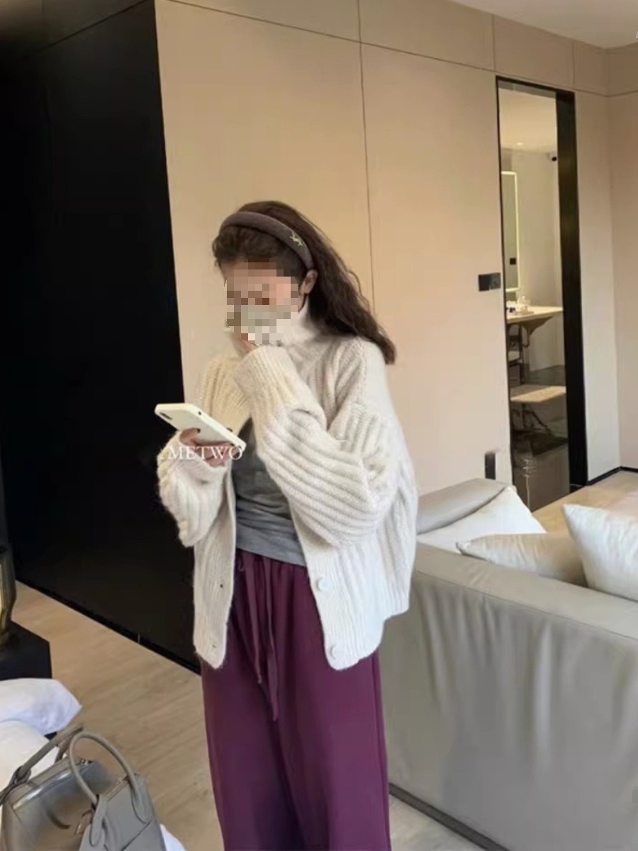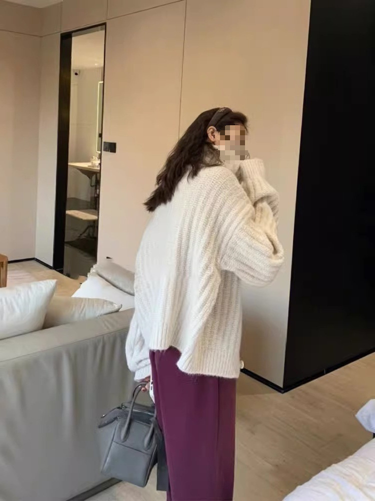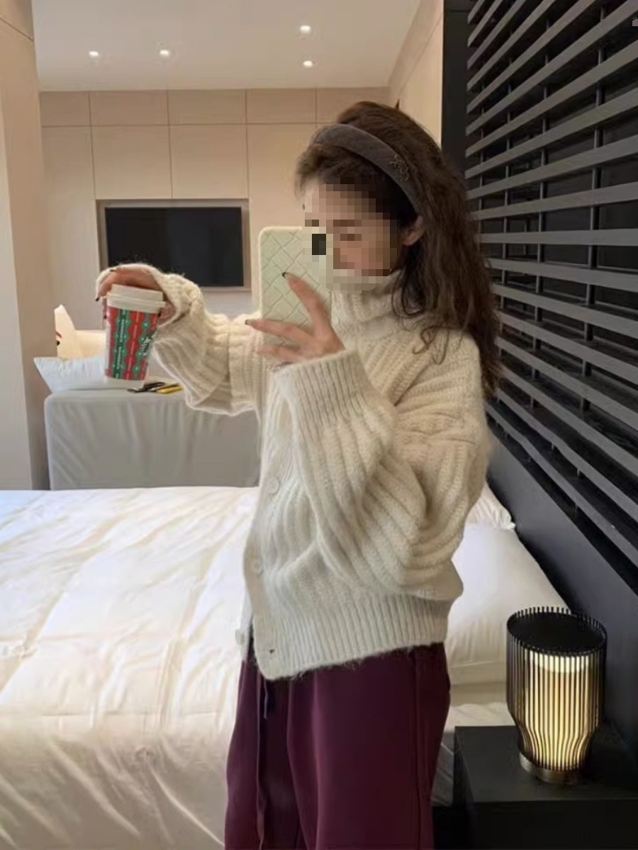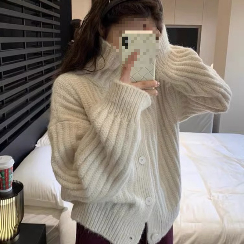 부드럽고 여유로운 스타일의 두꺼운 하이넥 가디건 여성용 가을 겨울 신상 루즈핏 골지 니트 상의