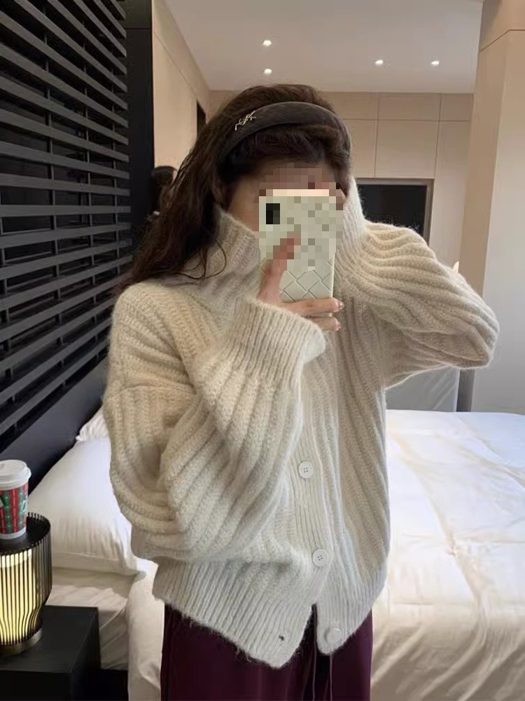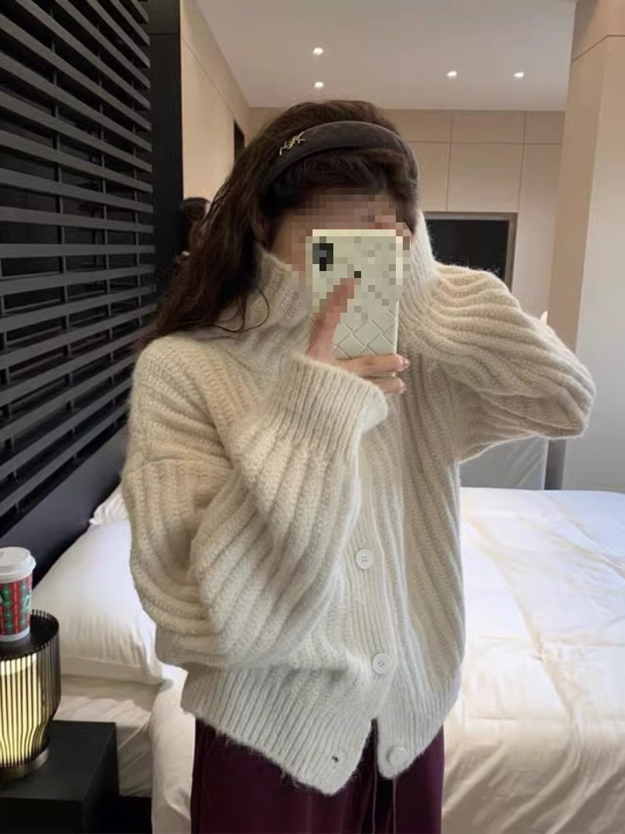 부드럽고 여유로운 스타일의 두꺼운 하이넥 가디건 여성용 가을 겨울 신상 루즈핏 골지 니트 상의스토어 가기