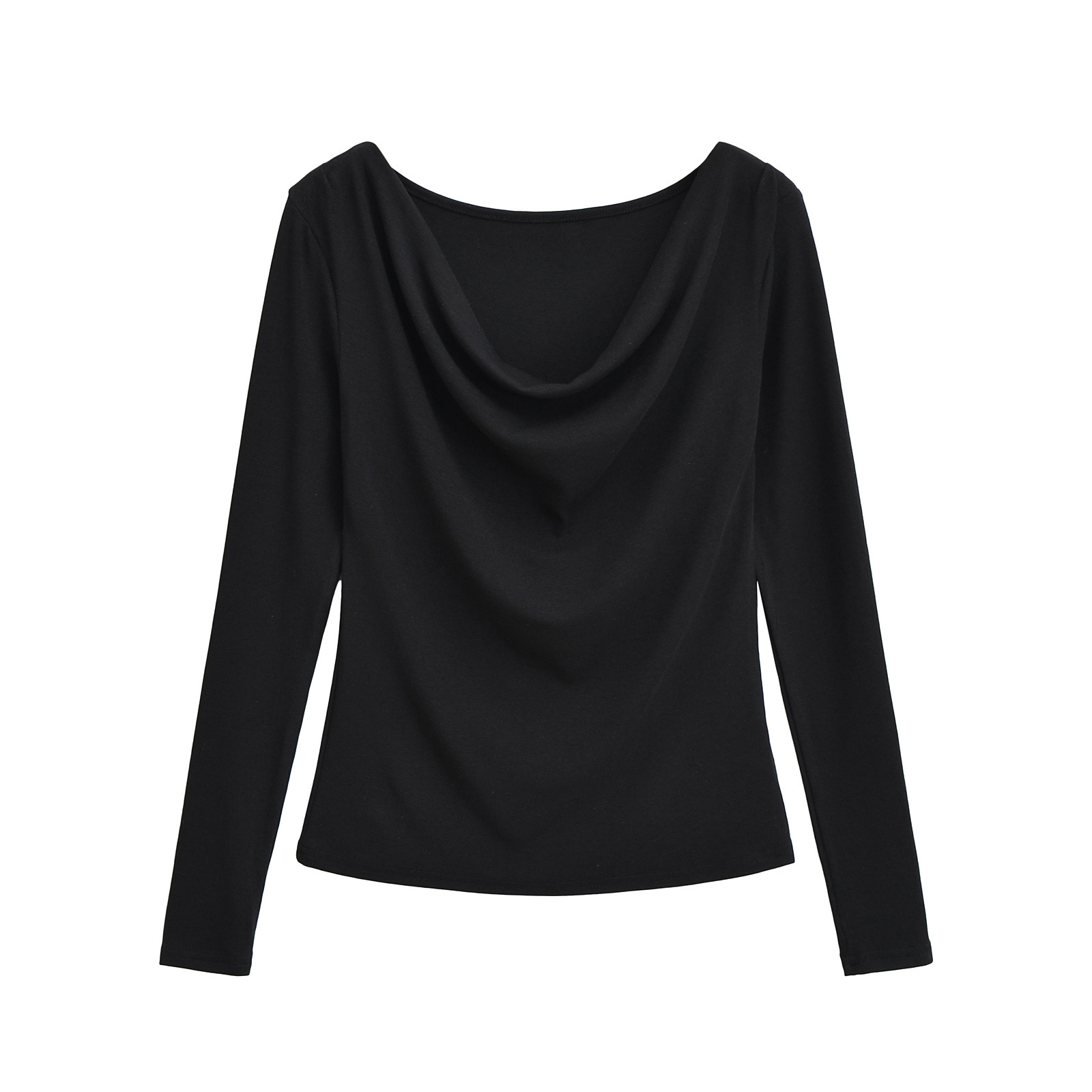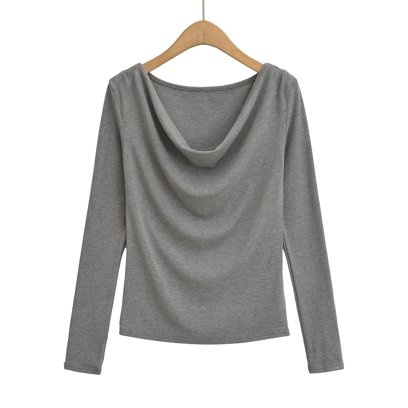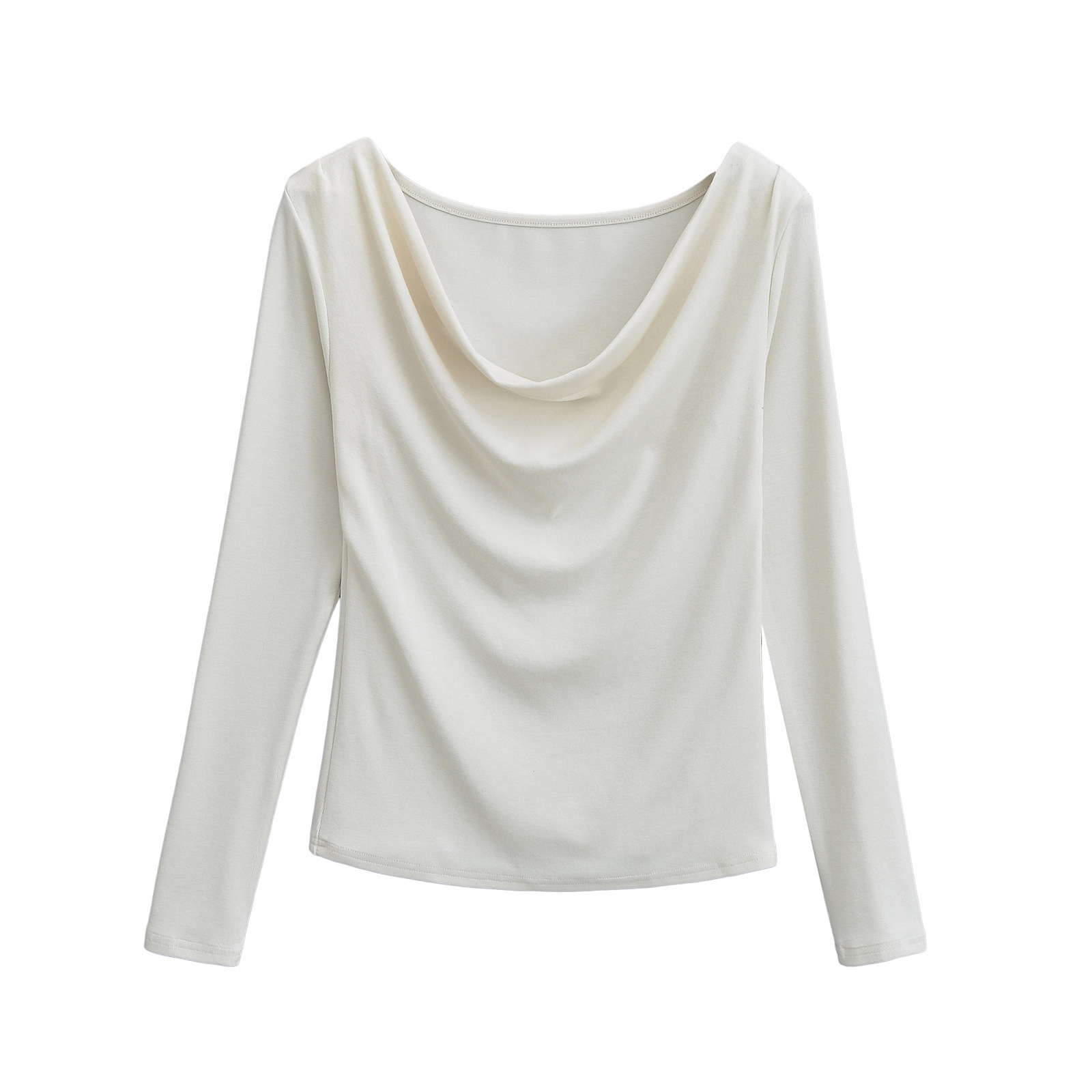 유럽과 미국의 스파이스 소녀 스타일 가을과 겨울 새로운 스타일 슬림 적합 슬리밍 주름 기본 티셔츠