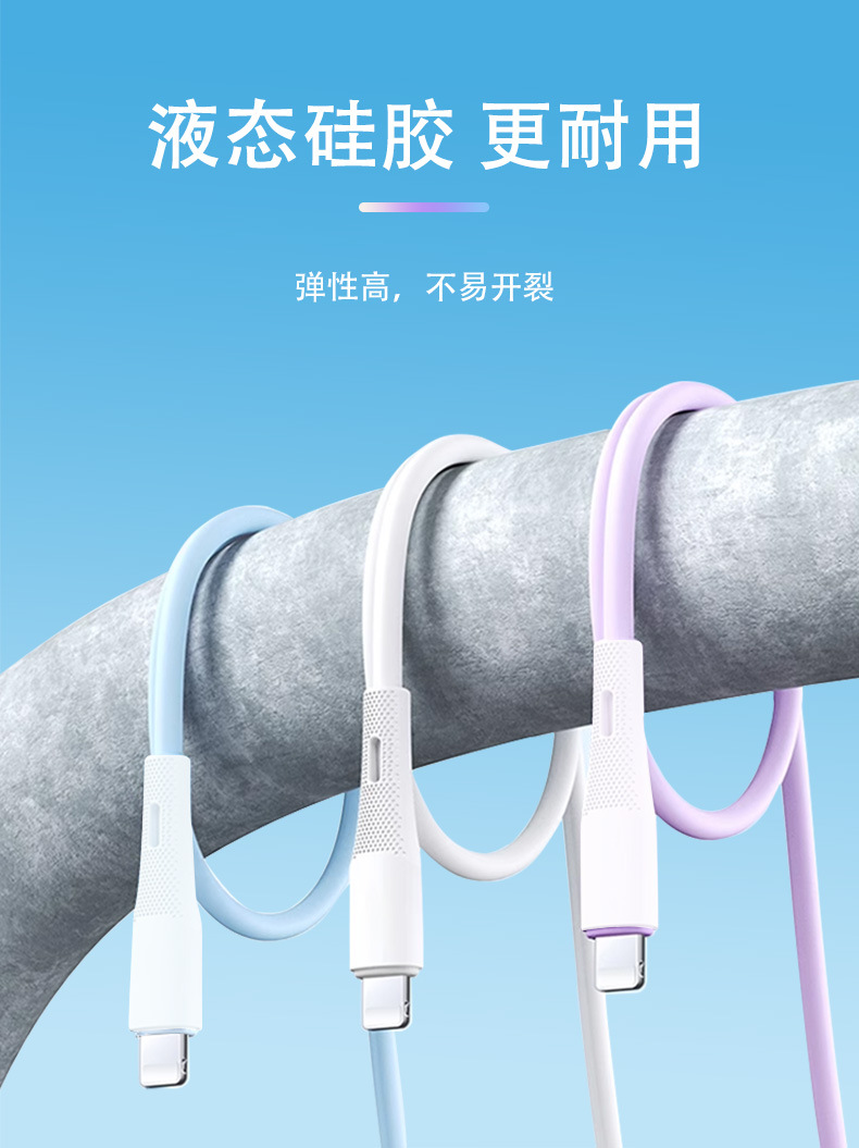 K388 액체 실리콘 빠른 충전 데이터 라인 안드로이드 타입 C 휴대 전화 충전 라인 애플 데이터 라인 재고
