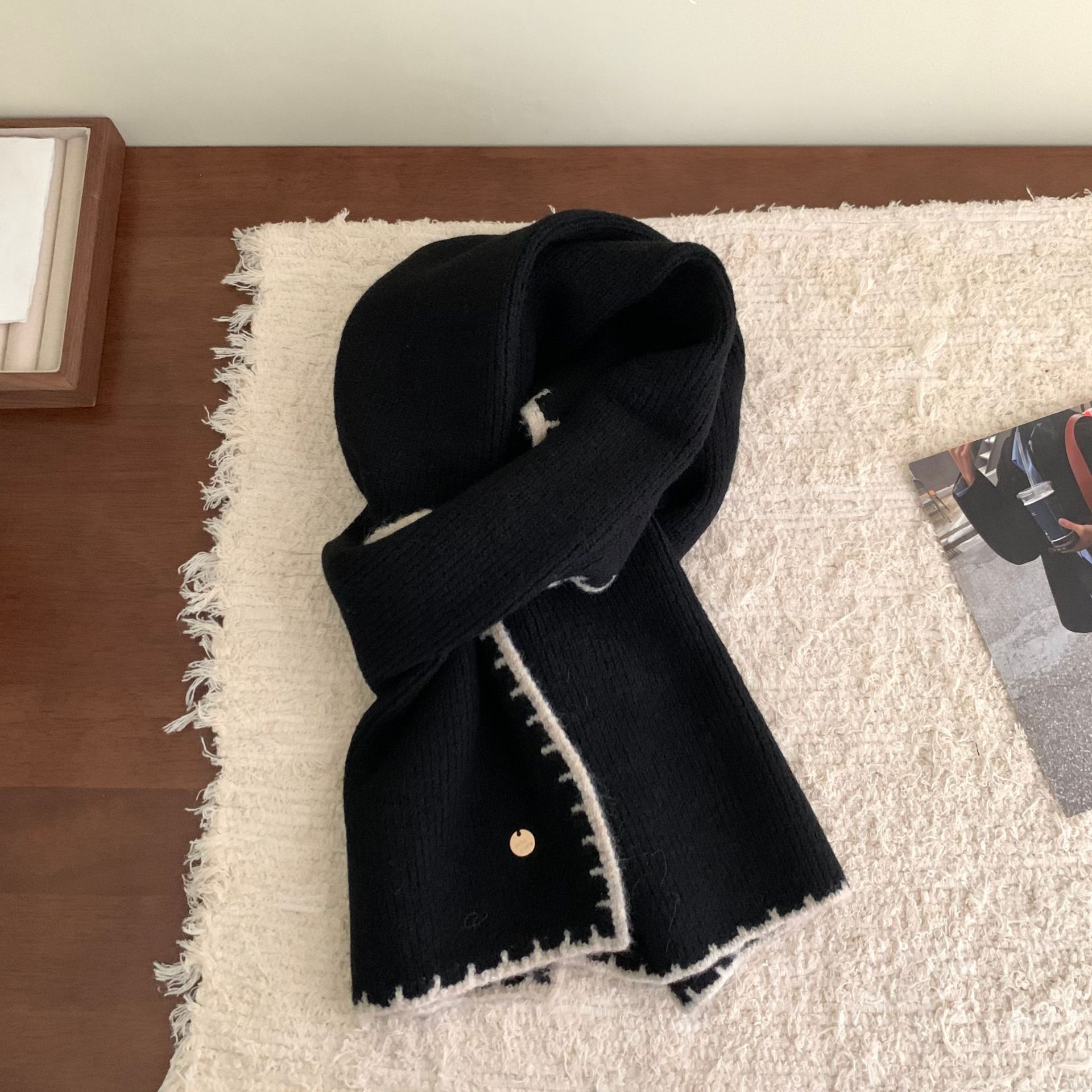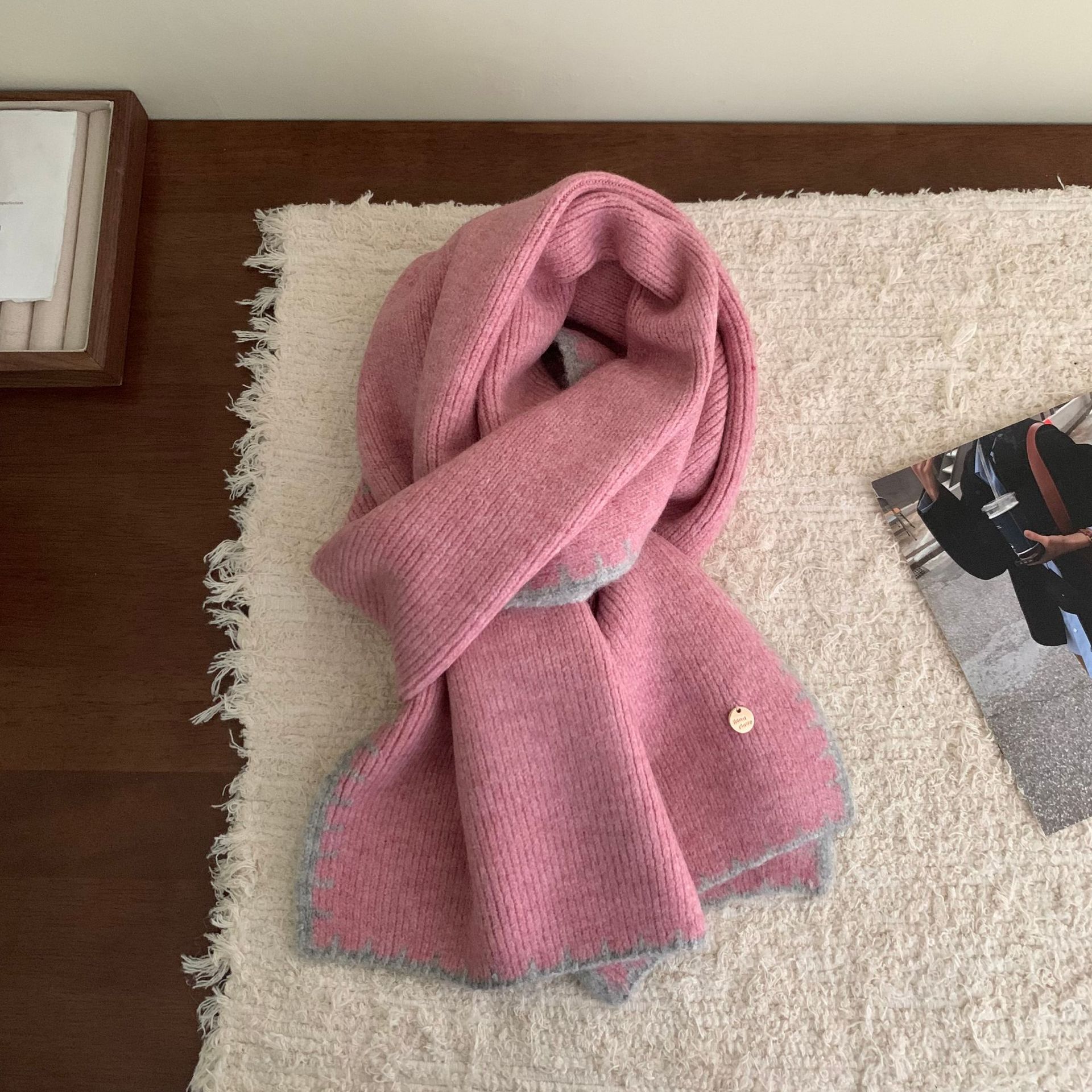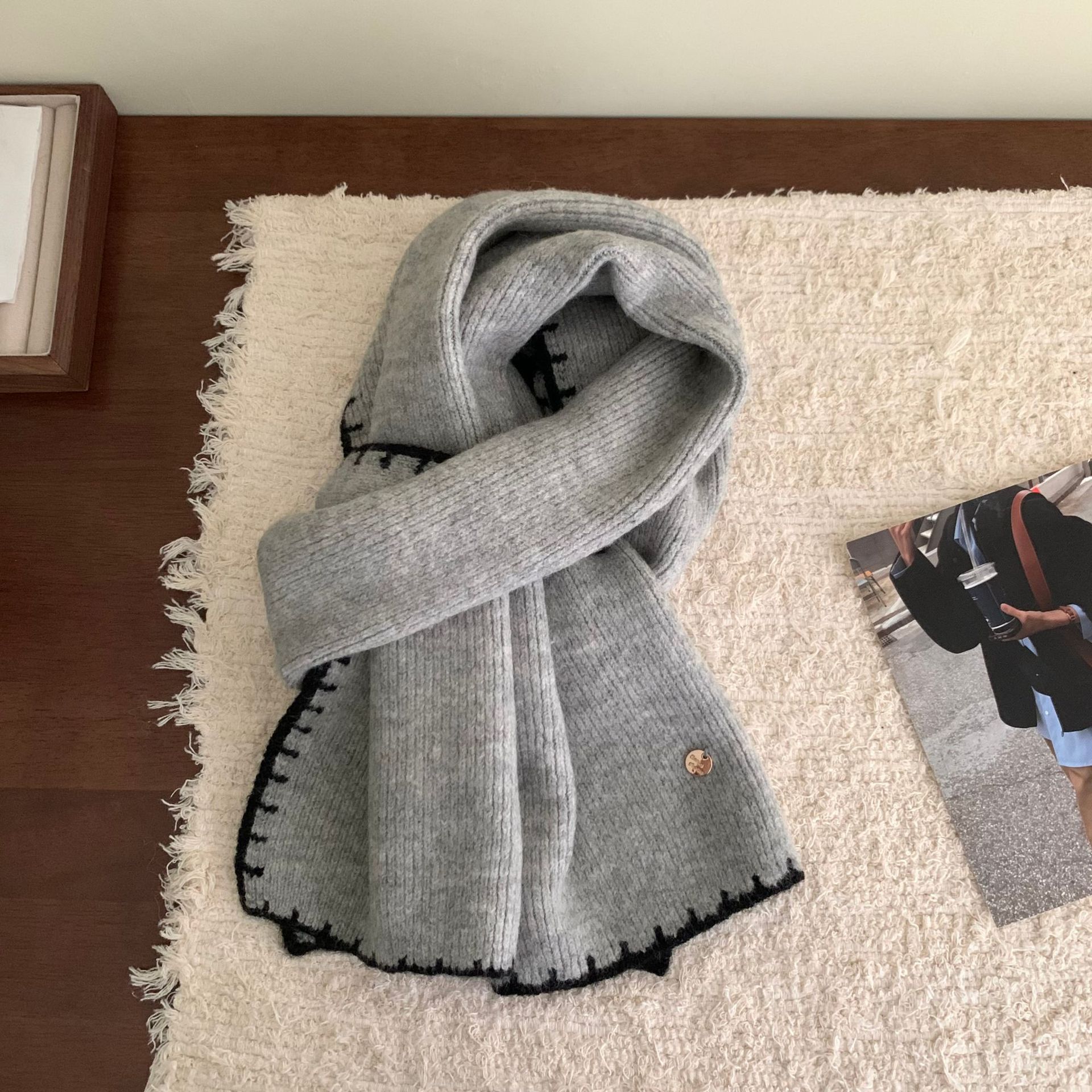 거대한 소프트 고급 감각 스카프 | 가을 겨울 여성을위한 엣지 잠금 공예 작은 금속 표준 따뜻한 스카프 학생 스카프