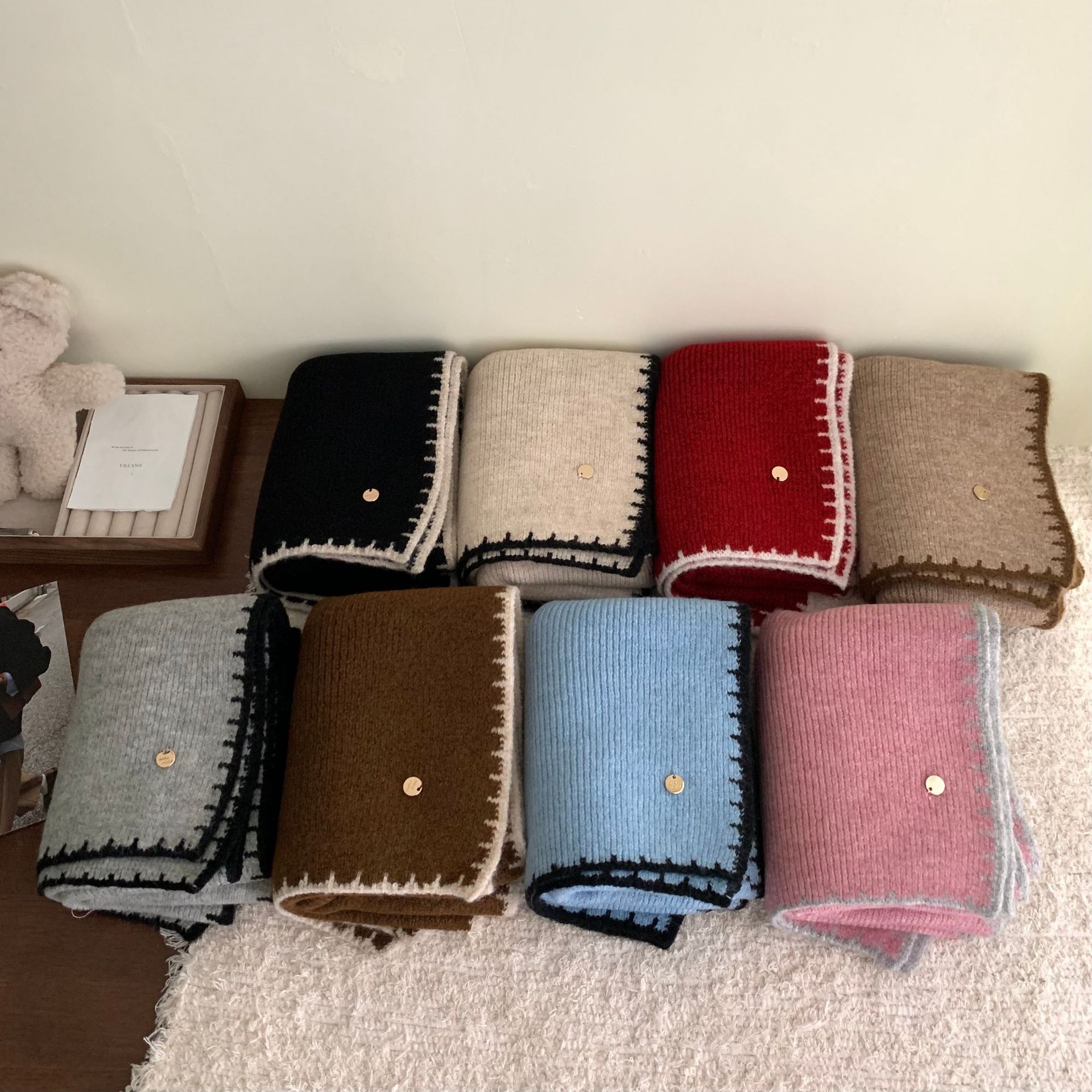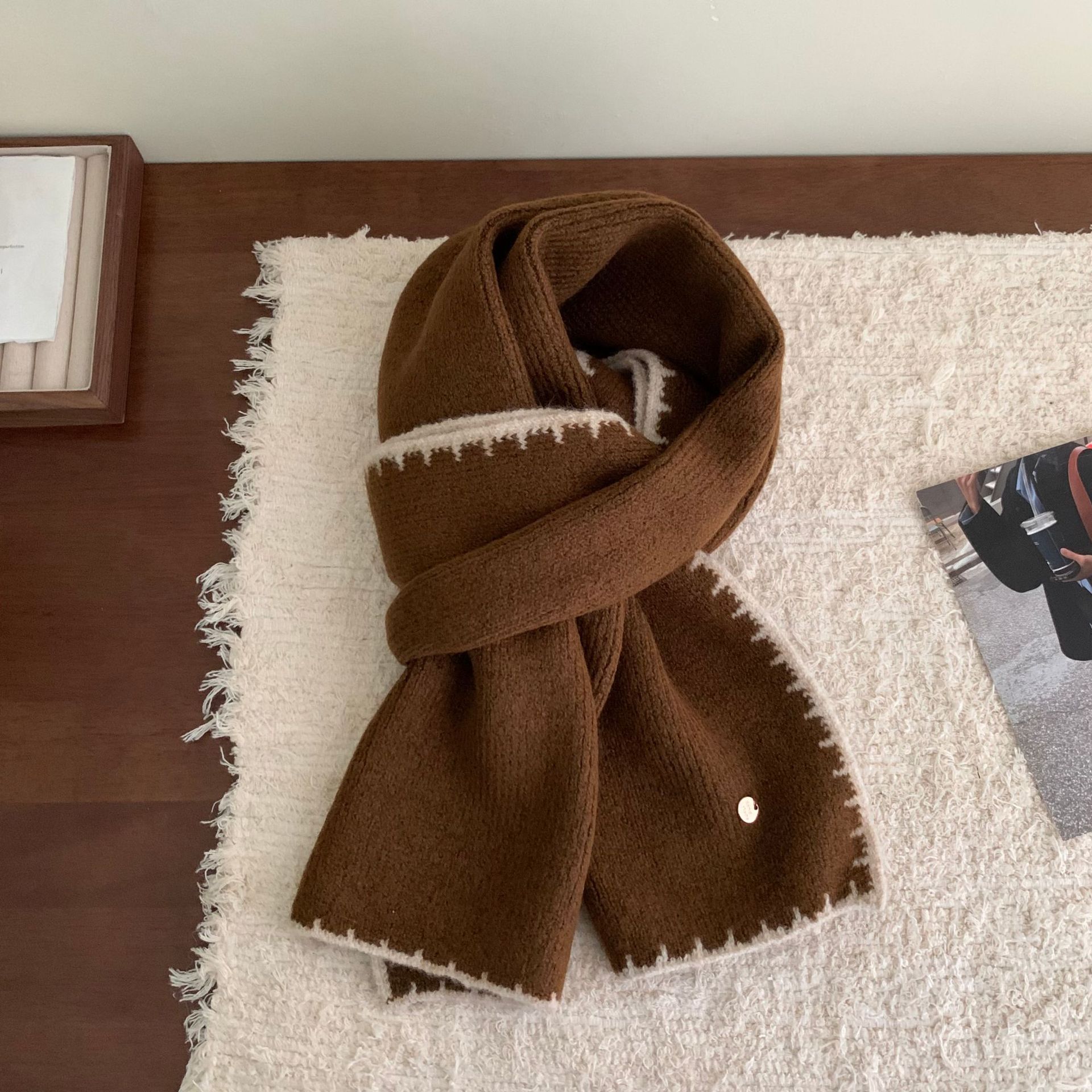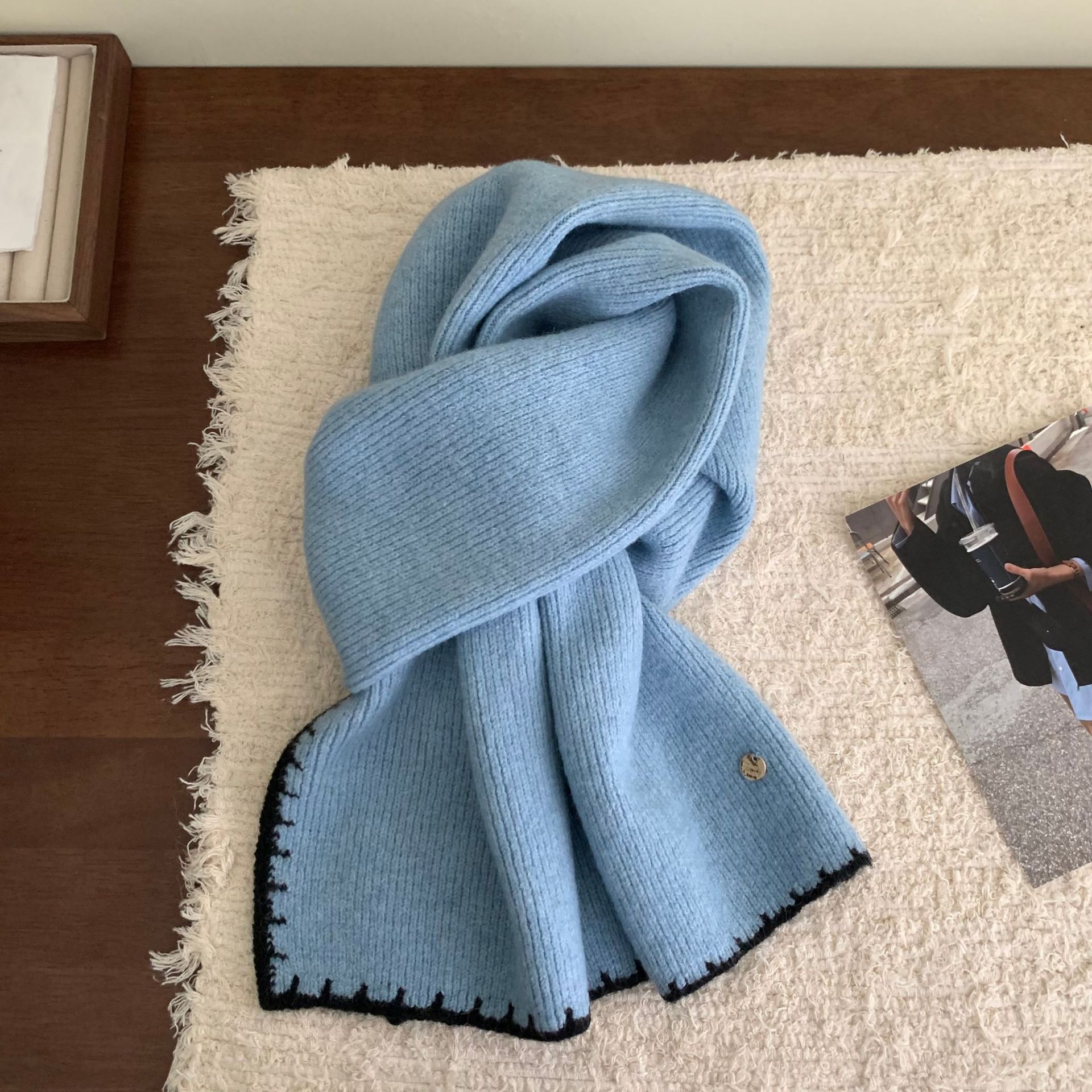 거대한 소프트 고급 감각 스카프 | 가을 겨울 여성을위한 엣지 잠금 공예 작은 금속 표준 따뜻한 스카프 학생 스카프