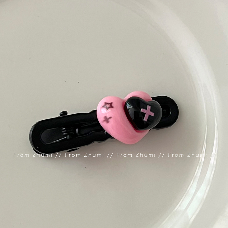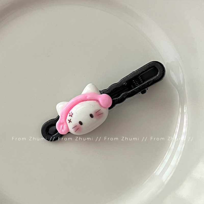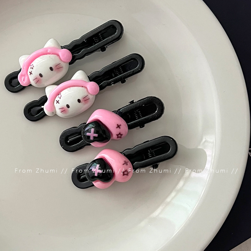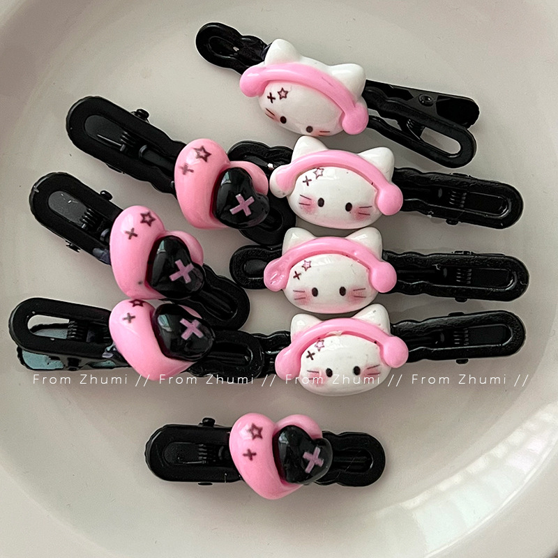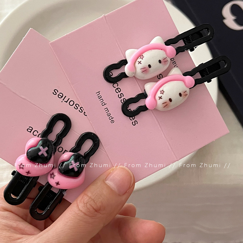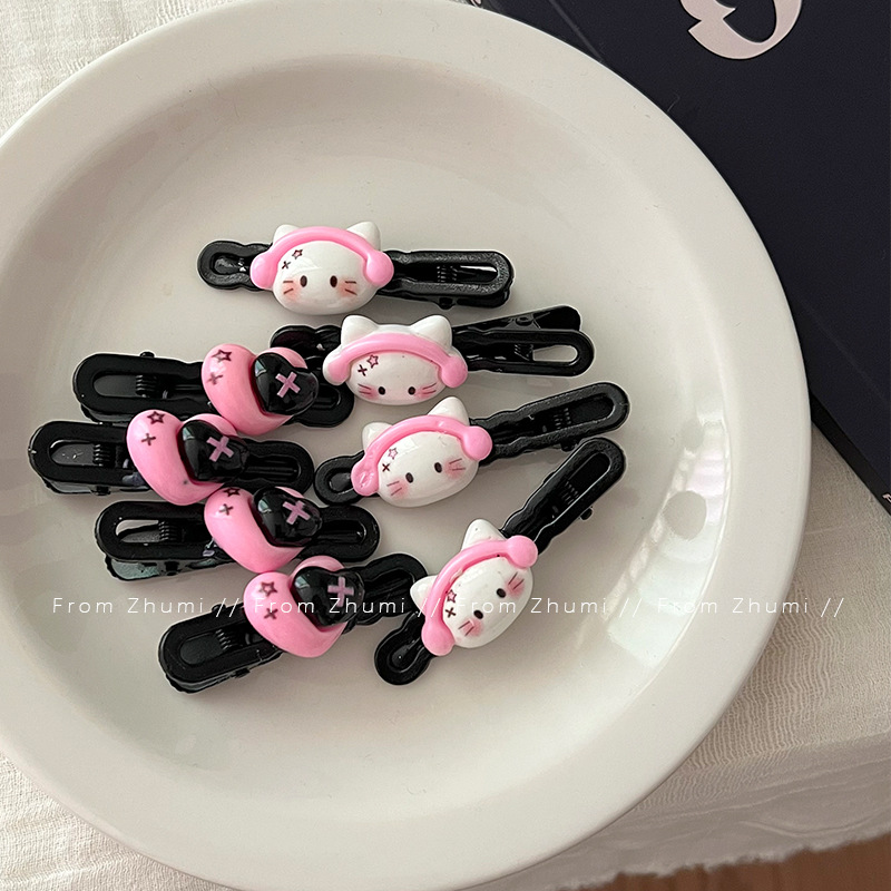 헤드셋 키튼 달콤한 쿨 스타일 헤어핀 블랙 파우더 사랑 소녀 성격 헤어핀 귀여운 뜨거운 소녀 사이드 클립 깨진 헤어핀