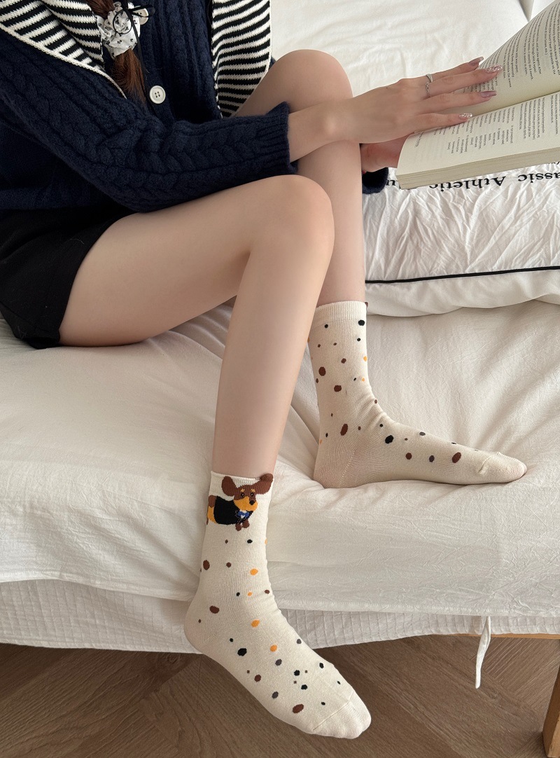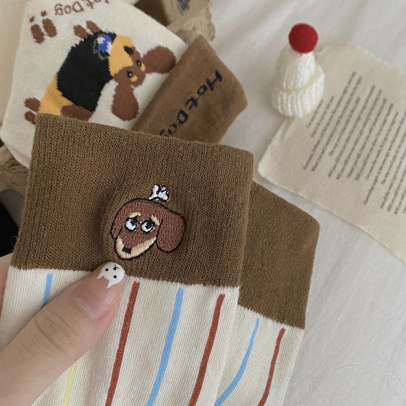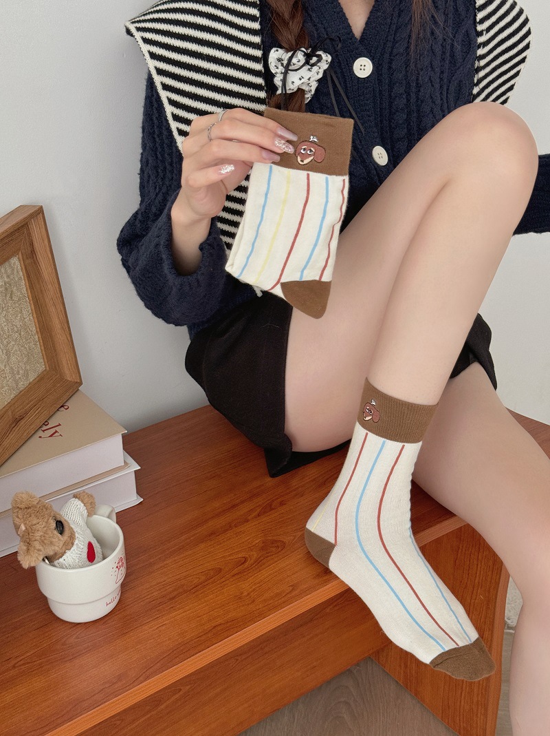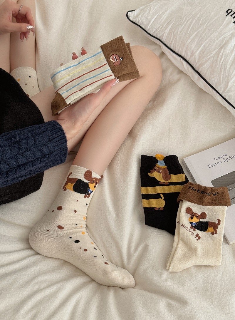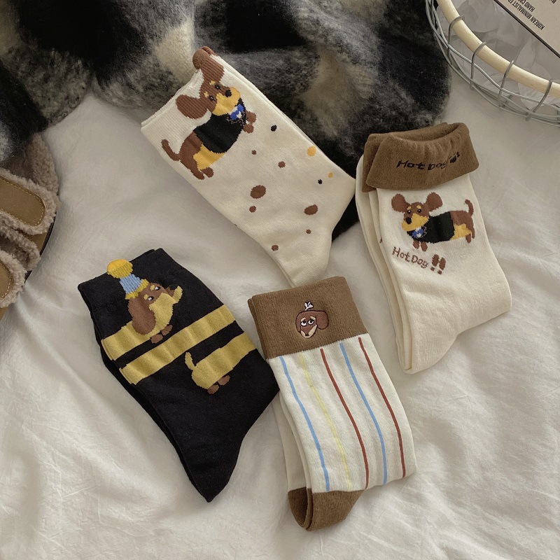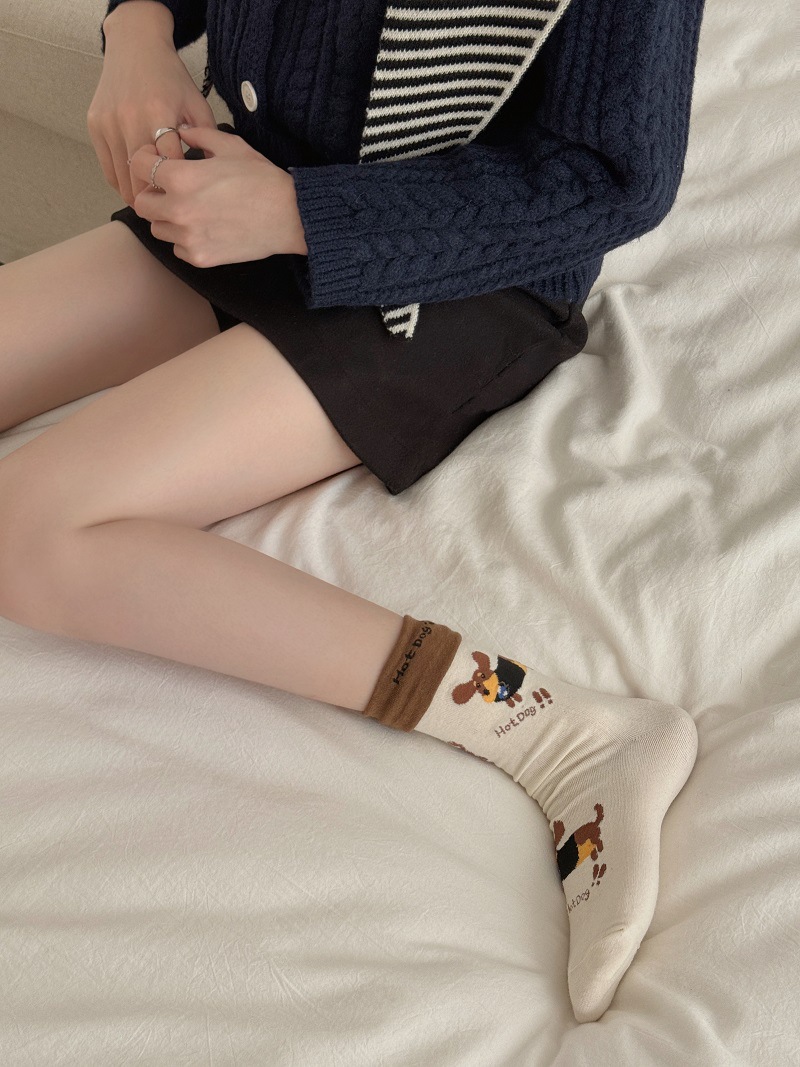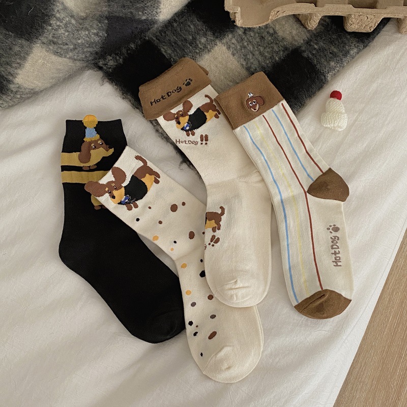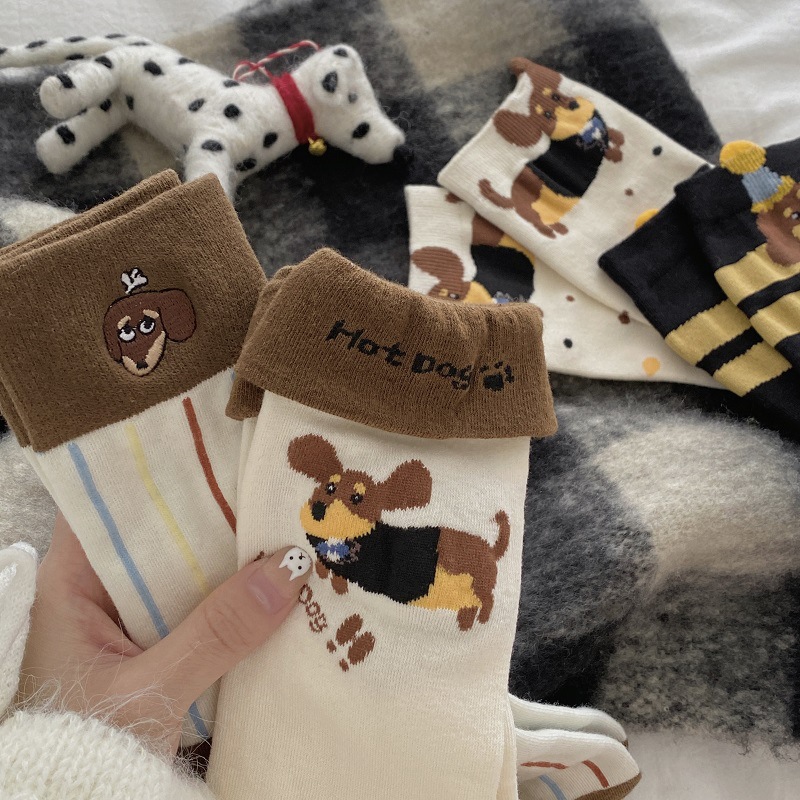 가을과 겨울 한국식 귀여운 강아지 중간 길이의 스타킹 어린이 커프 만화 닥스 훈트 수직 줄무늬 귀여운 틈새 스타킹스토어 가기