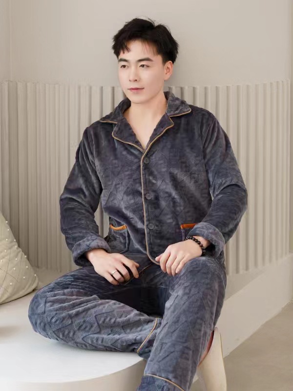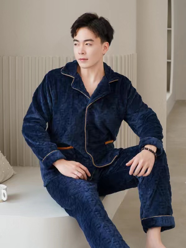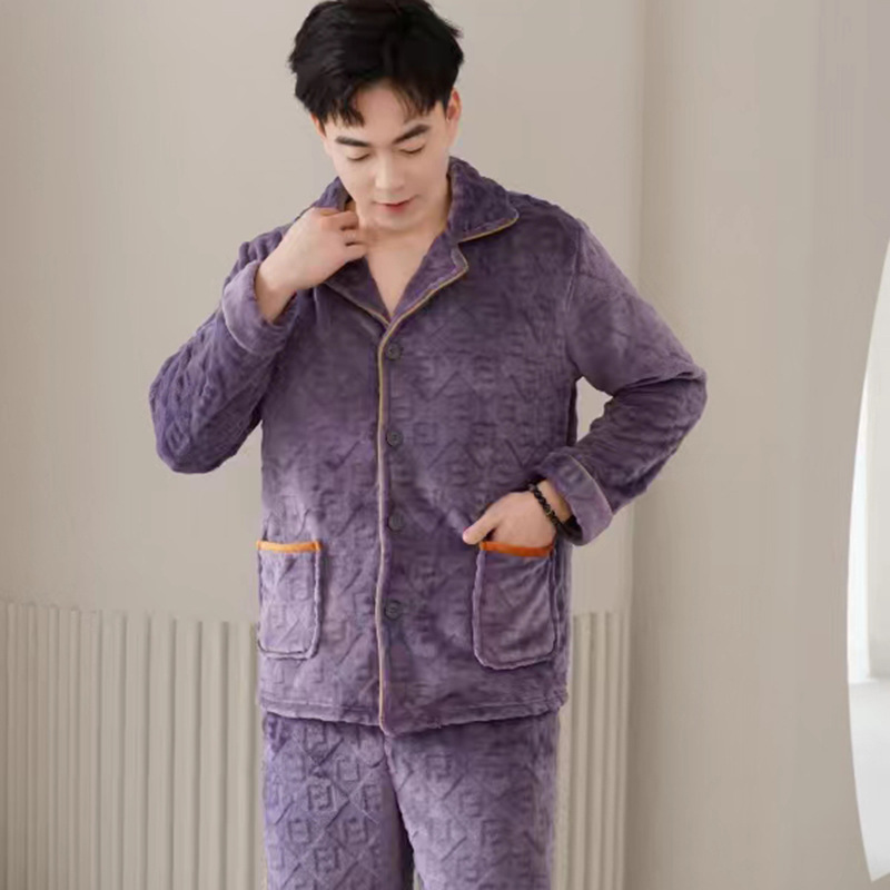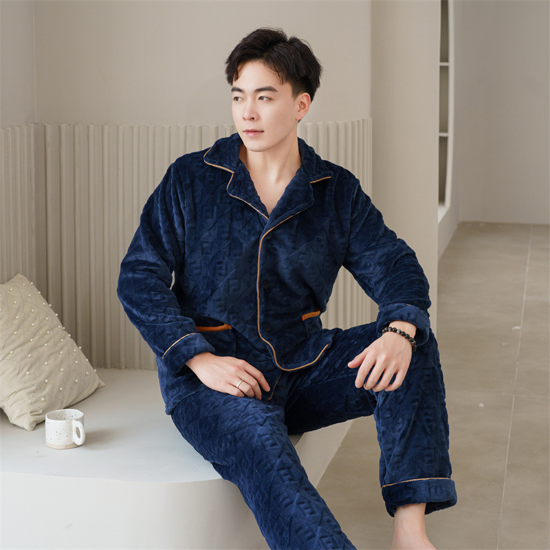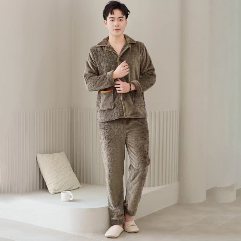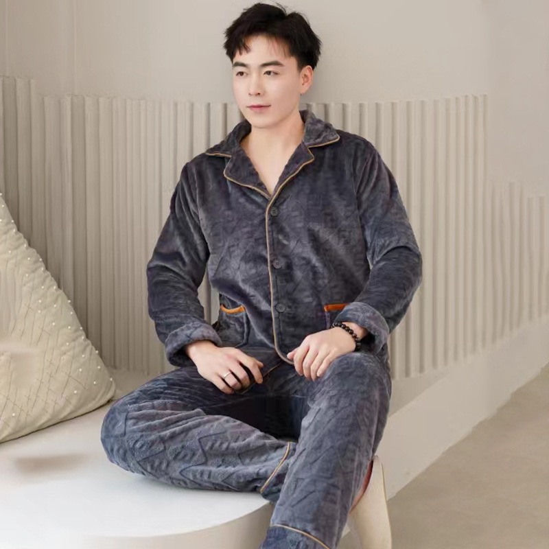 2024 새로운 남성 플란넬 파자마 기모 겉옷을 입기위한 두꺼운 투피스 세트 고급 따뜻한 가정 옷스토어 가기