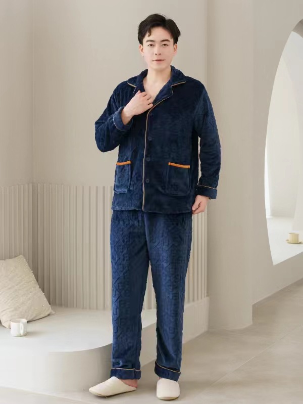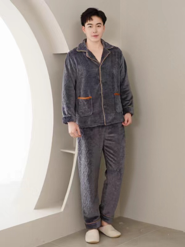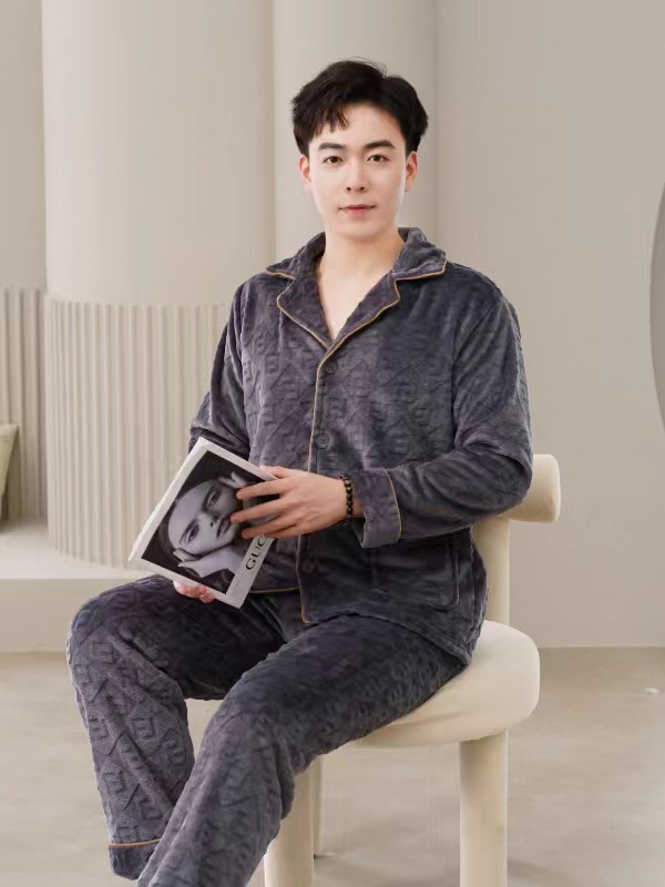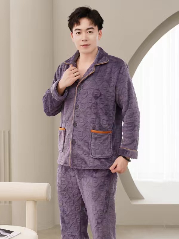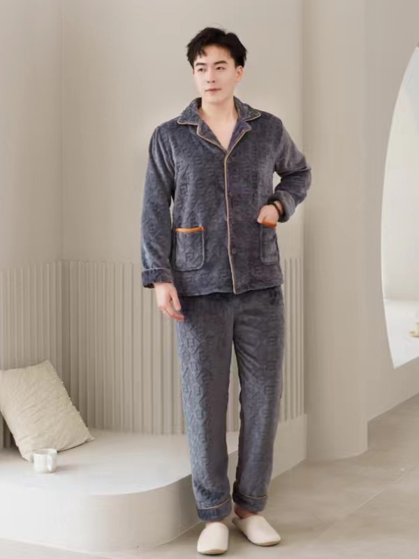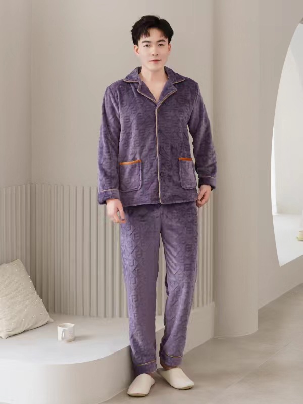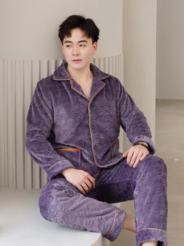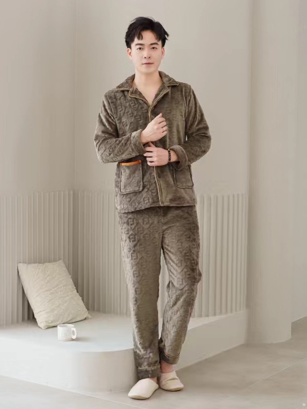 2024 새로운 남성 플란넬 파자마 기모 겉옷을 입기위한 두꺼운 투피스 세트 고급 따뜻한 가정 옷스토어 가기