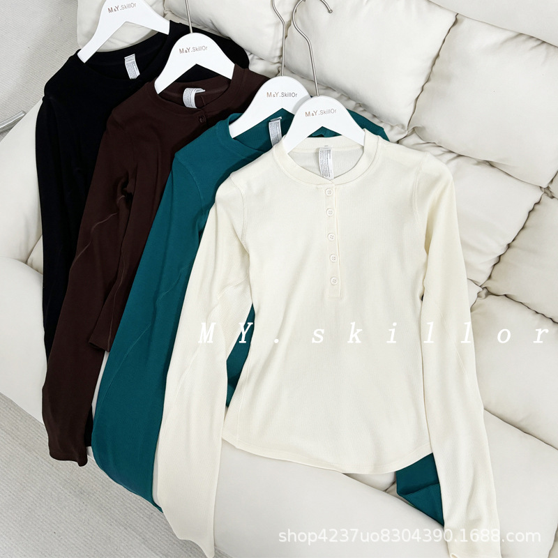 룰루 여자 헨리 셔츠 크루 넥 요가 긴팔 티셔츠 매일 올 매치 허리 슬리밍 내베이스 셔츠