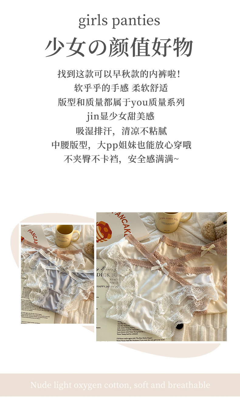 프랑스 스타일 레이스 속옷 여성용 코튼 크로트 고급 새틴 섹시 레이스 여성 소녀 브리프