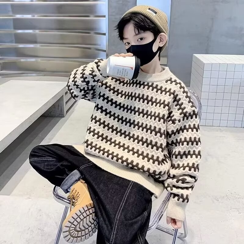 소년의 두꺼운 스웨터 가을과 겨울 새로운 어린이 겨울 의류 유행 보토밍 니트웨어 트렌디 미드 빅 어린이 서양식 스웨터